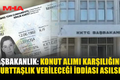 Başbakanlık, 150 bin ABD doları tutarında konut alımı karşılığında KKTC vatandaşlığı verileceği iddialarına yanıt verdi. Başbakanlık tarafından yapılan yazılı açıklamada, söz konusu haberlerin, Kıbrıs...
