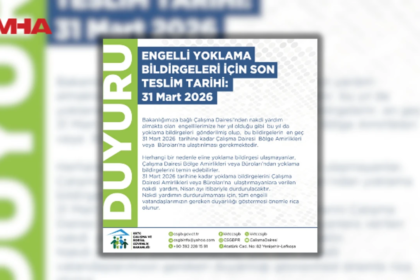 KKTC Çalışma ve Sosyal Güvenlik Bakanlığı, engelli vatandaşlara yönelik yoklama bildirgelerinin teslimi için son tarihin 31 Mart 2026 olduğunu duyurdu. Bakanlığa bağlı Çalışma Daires...