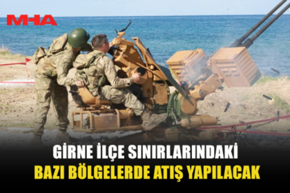 Girne ilçe sınırlarındaki Bahçeli, Karaağaç, Esentepe, Beşparmak, Arapköy, Çatalköy, Ozanköy, Karakum bölgesindeki askeri birlikler tarafından Notam Esas (MANŞ) atışı yapılacağı bildirildi. Girne Kaym...