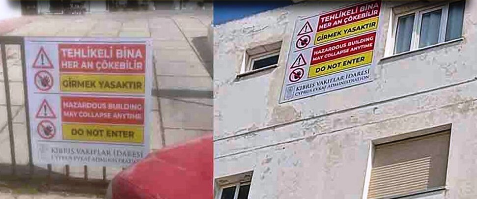 Kıbrıs Vakıflar İdaresi (Evkaf), Deniz Yıldızı (Laguna) Apartmanlarına, binanın her an çökebileceği tehlikesini anlatan uyarı levhaları yerleştirildiğini duyurdu. Kıbrıs Vakıflar İdaresi (Evkaf) taraf...