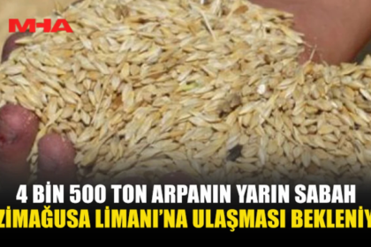 Tarım ve Doğal Kaynaklar Bakanlığı Müsteşarı Ercan Akerzurumlu, Mersin Limanı’ndan 4 bin 500 ton arpayla yola çıkan geminin yarın sabah itibarıyla Gazimağusa Limanı’na ulaşmasını beklediklerini açıkla...