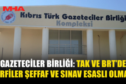 Kıbrıs Türk Gazeteciler Birliği, Türk Ajansı Kıbrıs (TAK) ve Bayrak Radyo Televizyon Kurumu’nda (BRT) yaşanan terfi ve emeklilik sürecine ilişkin yaptığı açıklamada, kadro ve yükselme süreçlerin...