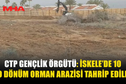 Cumhuriyetçi Türk Partisi (CTP) Gençlik Örgütü, İskele’de kiralanan bir ormanlık arazide ağaç kesildiğini ve yaklaşık 10 dönüm alanın tahrip edildiğini ileri sürerek yazılı açıklama yaptı. Açıklamada,...