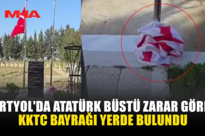 Dörtyol köyünde bulunan Atatürk büstü zarar görmüş halde bulundu. Olay yerinde KKTC bayrağının buruşturulmuş şekilde yerde olduğu, Türkiye Cumhuriyeti bayrağının ise indirilmeye çalışıldığı tespit edi...