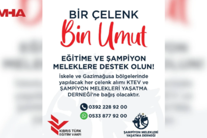 Şampiyon Melekleri Yaşatma Derneği ile Kıbrıs Türk Eğitim Vakfı “Bir Çelenk, Bir Umut – Çiçekleriniz Başka Çocuklara Umut Olsun” sloganıyla bağış çağrısında bulundu. Şampiyon Meleklerin yaşamını yitir...