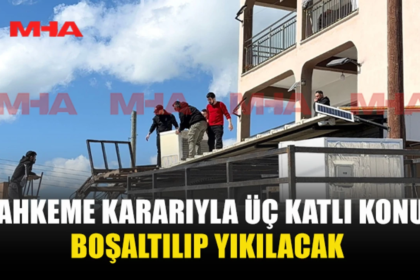 Gazimağusa’ya bağlı Güvercinlik Köyü’nde, Hakkı Yılmaz ve Herdem Yılmaz’a ait üç katlı apartman tipi konut, ikinci mahkeme kararına istinaden yıkım öncesi boşaltılıyor. İlk mahkeme yalnızca üçüncü kat...