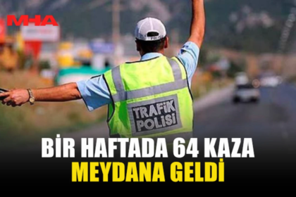 KKTC’de geçen hafta 64 trafik kazası meydana geldi, kazalarda 22 kişi yaralandı. Polis Genel Müdürlüğü’nün 9-15 Mart tarihlerini kapsayan haftalık trafik raporuna göre, kazaların 16’sı yaralanmayla, 4...