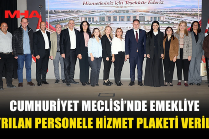 Cumhuriyet Meclisi’nden emekli olan personele hizmet plaketleri düzenlenen törenle verildi. Meclis Zalihe Çavuşoğlu Konferans Salonunda gerçekleşen etkinliğe, Cumhuriyet Meclisi Başkanı Ziya Özt...