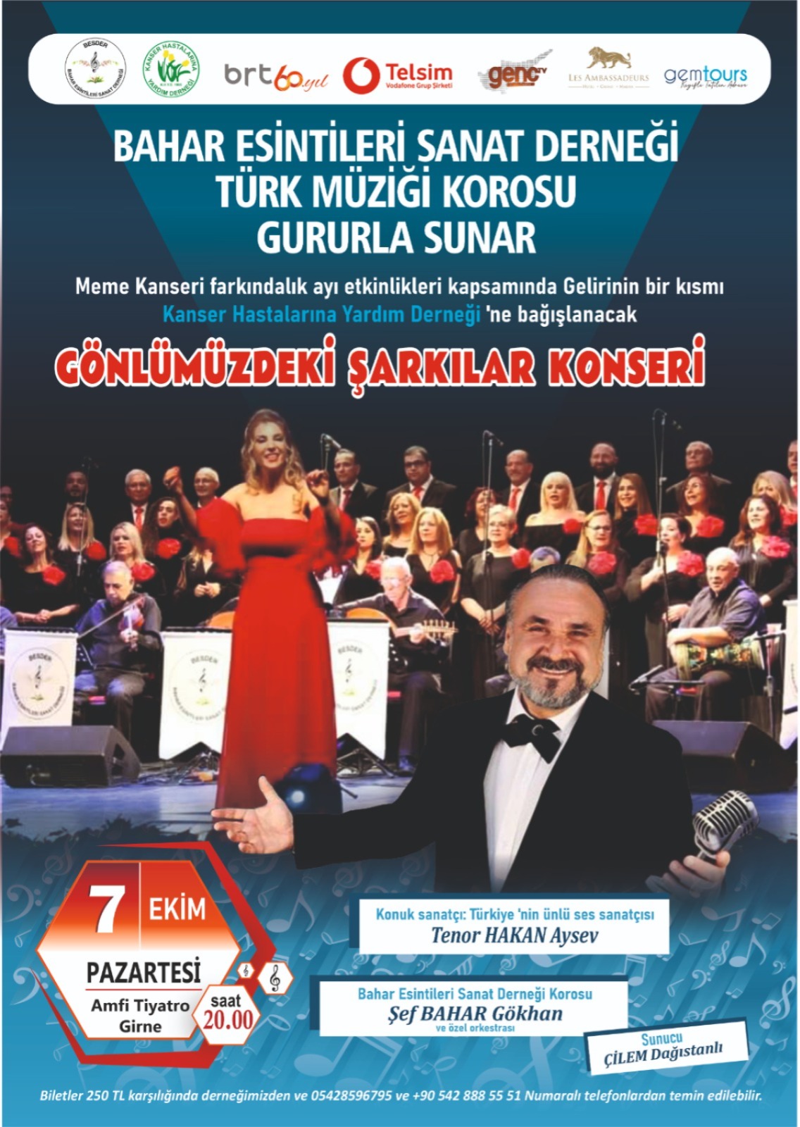 Bahar Esintileri Sanat Derneği Türk Müziği Korosu, meme kanseri farkındalık ayı etkinlikleri kapsamında 7 Ekim’de konser düzenleyecek. “Gönlümüzdeki Şarkılar” isimli konserin gelirinin bir kısmı Kanse...