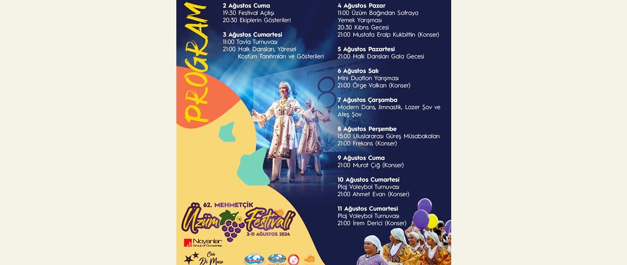 Mehmetçik Üzüm Festivali 2-11 Ağustos tarihlerinde yapılıyor. Festivalde, yerel sanatçıların yanı sıra Türkiye’nin ünlü sanatçısı İrem Derici de konser verecek. Mehmetçik Festival alanında yer alacak ...