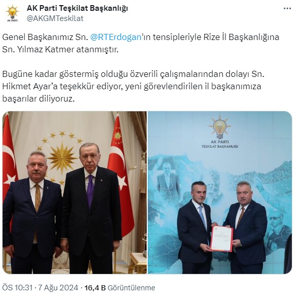 Ak Parti‘de Rize, Şanlıurfa, Mardin ve Kahramanmaraş il başkanları değişti. AK PARTİ’DE 4 İLE YENİ BAŞKAN Ak Parti‘de yerel seçimlerde alınan sonuçların ardından teşkilatlardaki yeni...
