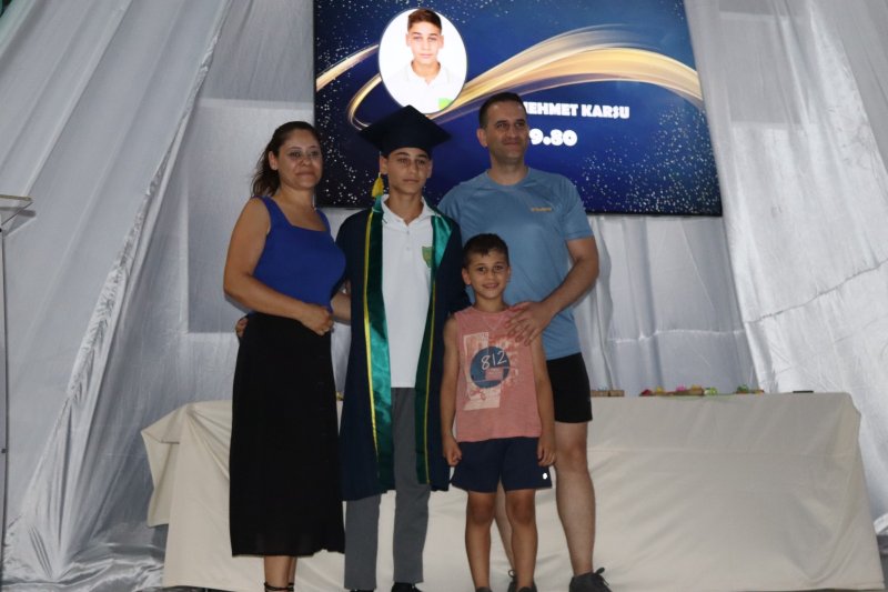 Şehit Hüseyin Ruso Ortaokulu müdürü Ergin Mazharoğlu gecede, yaptığı konuşmada “Bu yıl okulu başarıyla temsil eden tüm öğrencileri tebrik ederim dedi Ardından ise diploma törenin ard...