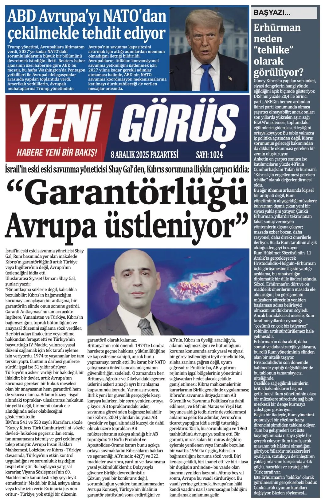 KıbrısGAZETE MANŞETLERİ (8 ARALIK 2025)Aralık 8, 2025 9:05 am GAZETE MANŞETLERİ (8 ARALIK 2025) yazısı ilk önce Ya Haber üzerinde ortaya çıktı. Paylaş İlgili haberler KTOEÖS EYLEMİNDE MUHACERET POLİTİKALARI PROTESTO EDİLDİ Şubat 27, 2026 HAYVANCILIKTA ZORUNLU SİGORTA TAZMİNATLARI YATIRILDI Şubat 27, 2026 FİRUZ YEŞİLKUŞAK İÇİN ACİL KAN ARANIYOR Şubat 27, 2026 Cevap bırakın Yanıtı iptal etE-posta adresiniz yayınlanmayacak. Gerekli alanlar * ile işaretlenmişlerdirYorumAd * E-posta * İnternet sitesi Daha sonraki yorumlarımda kullanılması için adım, e-posta adresim ve site adresim bu tarayıcıya kaydedilsin.