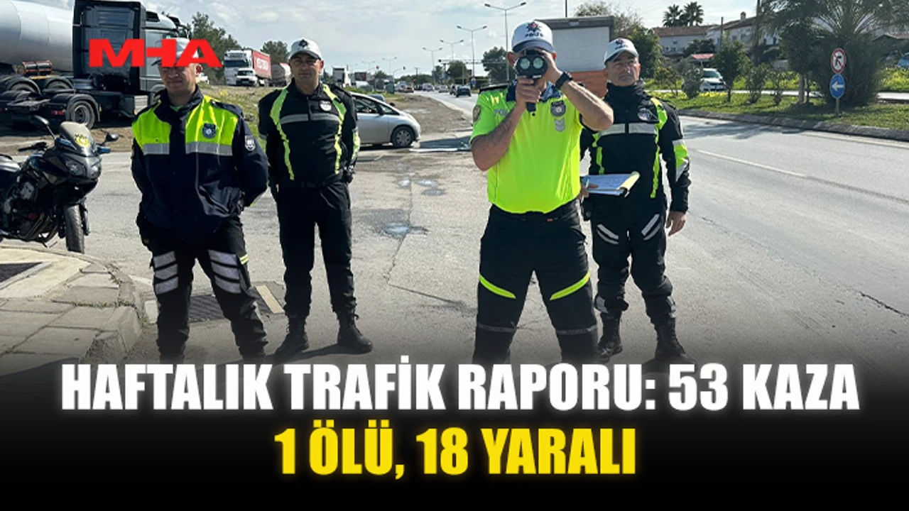 KKTC’de geçen hafta 53 trafik kazası meydana geldi. Bu kazalarda bir kişi hayatını kaybetti, 18 kişi yaralandı.