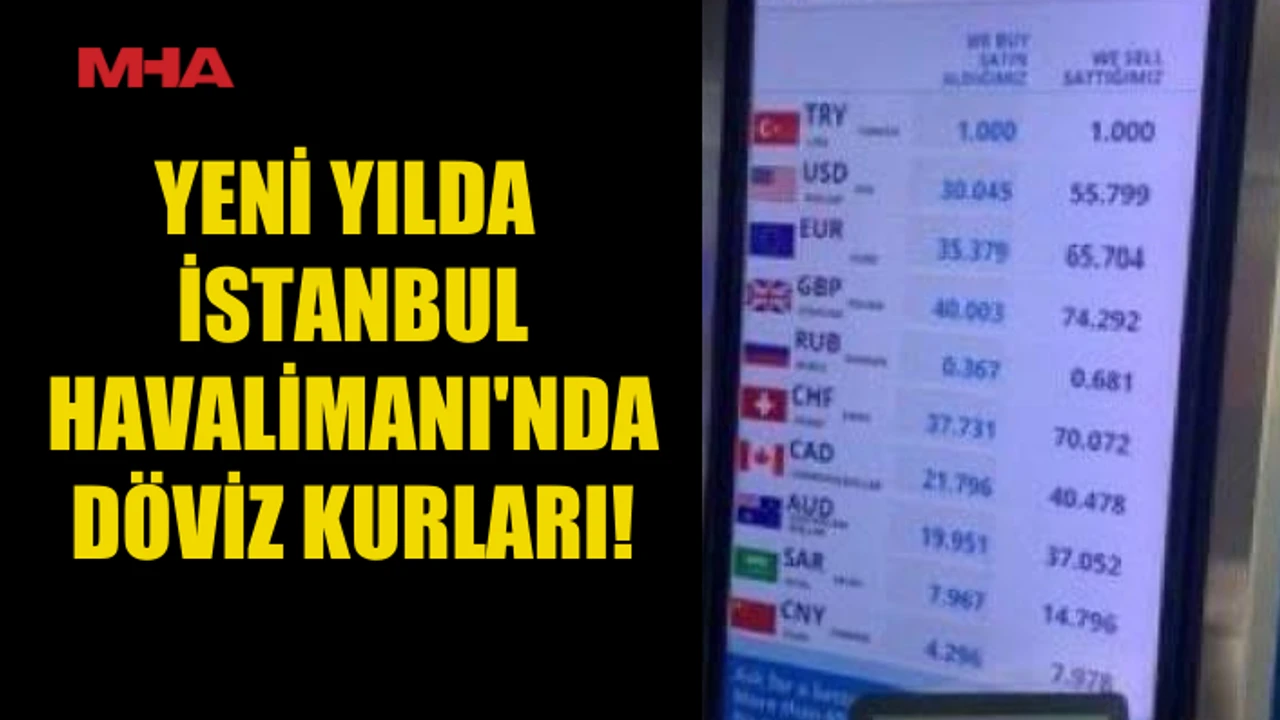 Yeni yılın ilk günlerinde İstanbul Havalimanı’ndaki döviz bürolarında uygulanan kurlar dikkat çekti. Döviz bürolarının alış–satış göstergelerine yansıyan rakamlara göre, Amerikan Doları 30,045 TL’den alınırken 55,799 TL’den satılıyor.