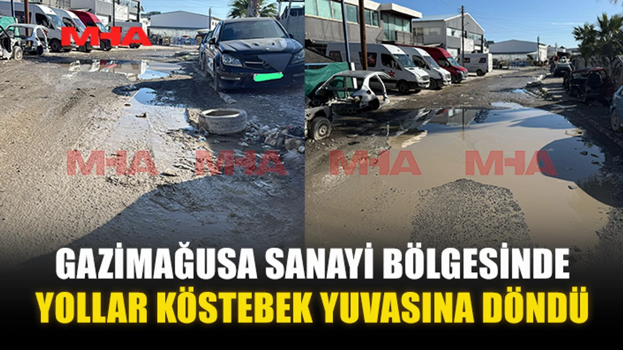 Gazimağusa Sanayi Bölgesi’nde yolların bakımsızlığı esnafı isyan noktasına getirdi. Su birikintileri, çamur ve aşınmış asfalt nedeniyle bölgedeki ulaşım her geçen gün daha da zorlaşıyor.