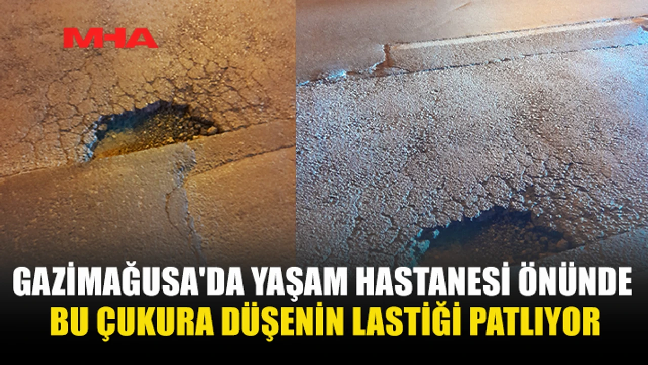 Gazimağusa’da Yaşam Hastanesi önünde bulunan yol üzerindeki derin çukur, sürücüler için ciddi tehlike oluşturuyor. Çukura düşen araçların lastiklerinin patlamakla kalmayıp parçalandığı belirtilirken, bölgede daha büyük kazaların yaşanmasından endişe ediliyor.