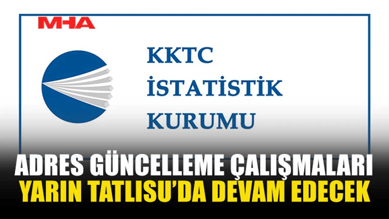KKTC İstatistik Kurumu’nun Hanehalkı Bütçe Anketi Projesi kapsamında başlattığı adres güncelleme çalışmaları yarın Tatlısu Belediyesi sınırları içerisinde devam edecek.
