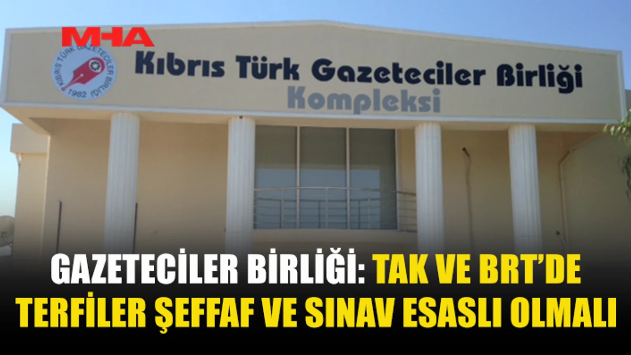 Kıbrıs Türk Gazeteciler Birliği, Türk Ajansı Kıbrıs (TAK) ve Bayrak Radyo Televizyon Kurumu’nda (BRT) yaşanan terfi ve emeklilik sürecine ilişkin yaptığı açıklamada, kadro ve yükselme süreçlerinin demokratik, şeffaf ve sınav esaslı yürütülmesi gerektiğini vurguladı.