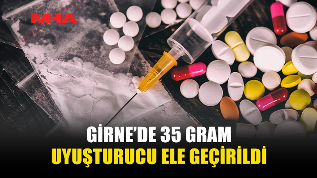 Polis Basın Subaylığı’ndan alınan bilgiye göre 02.02.2026 tarihinde, saat 19.00 sıralarında, Girne’de Namık Kemal Caddesi’nde, Girne Polis Müdürlüğüne bağlı Cürümleri Önleme Şube Amirliği Ekipleri tarafından şüpheli olarak görülen F.C.A.(E-28)’nın üzerinde ve kalmakta olduğu ikametgahta yapılan aramalarda, tasarrufunda toplam 35 gram ağırlığında hintkeneviri türü uyuşturucu olduğuna inanılan madde bulunarak emare olarak alınmıştır. Bahse konu şahıs tutuklanmış olup, soruşturma devam etmektedir.
