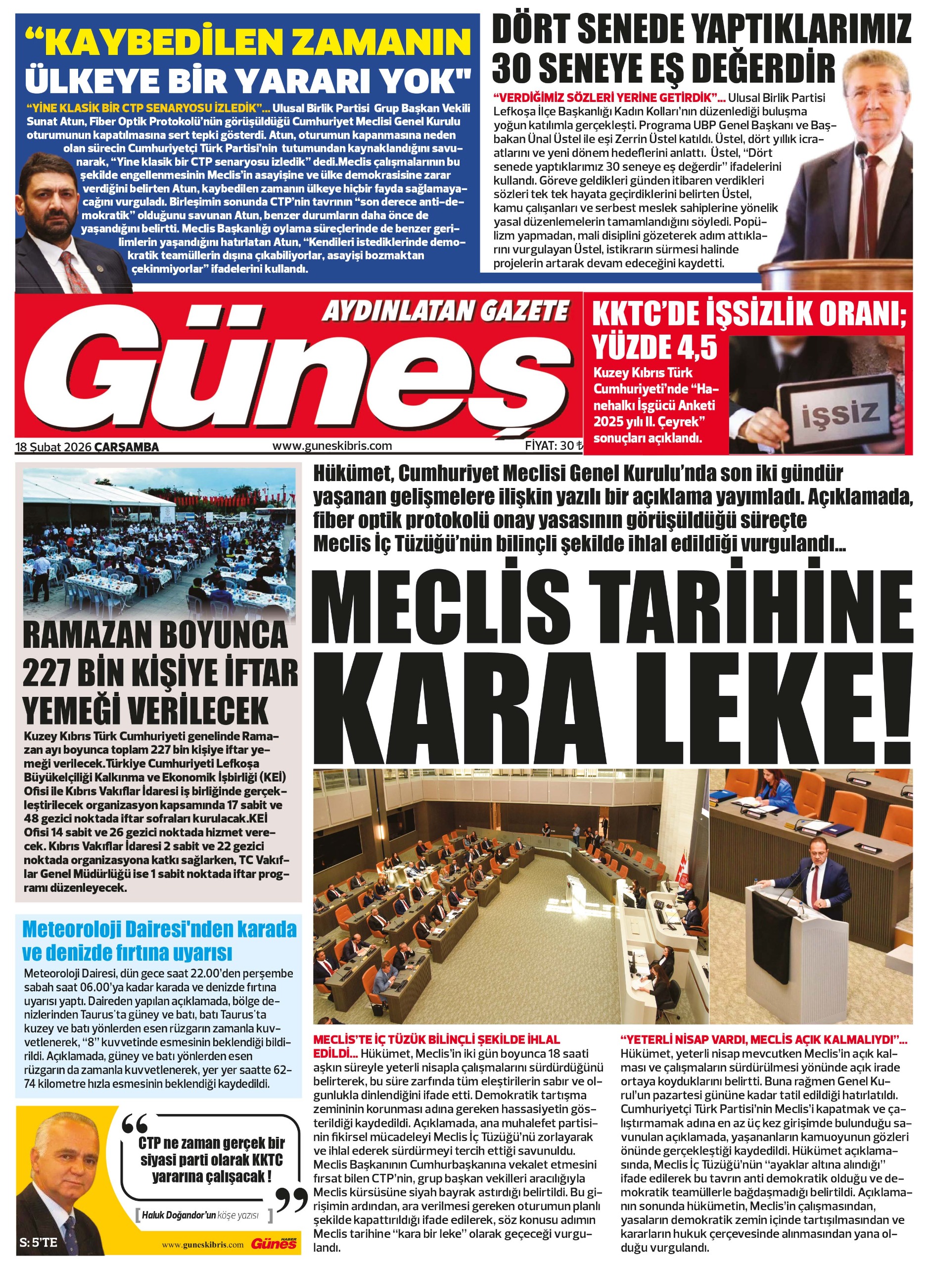 GAZETE MANŞETLERİ (18 ŞUBAT 2026)