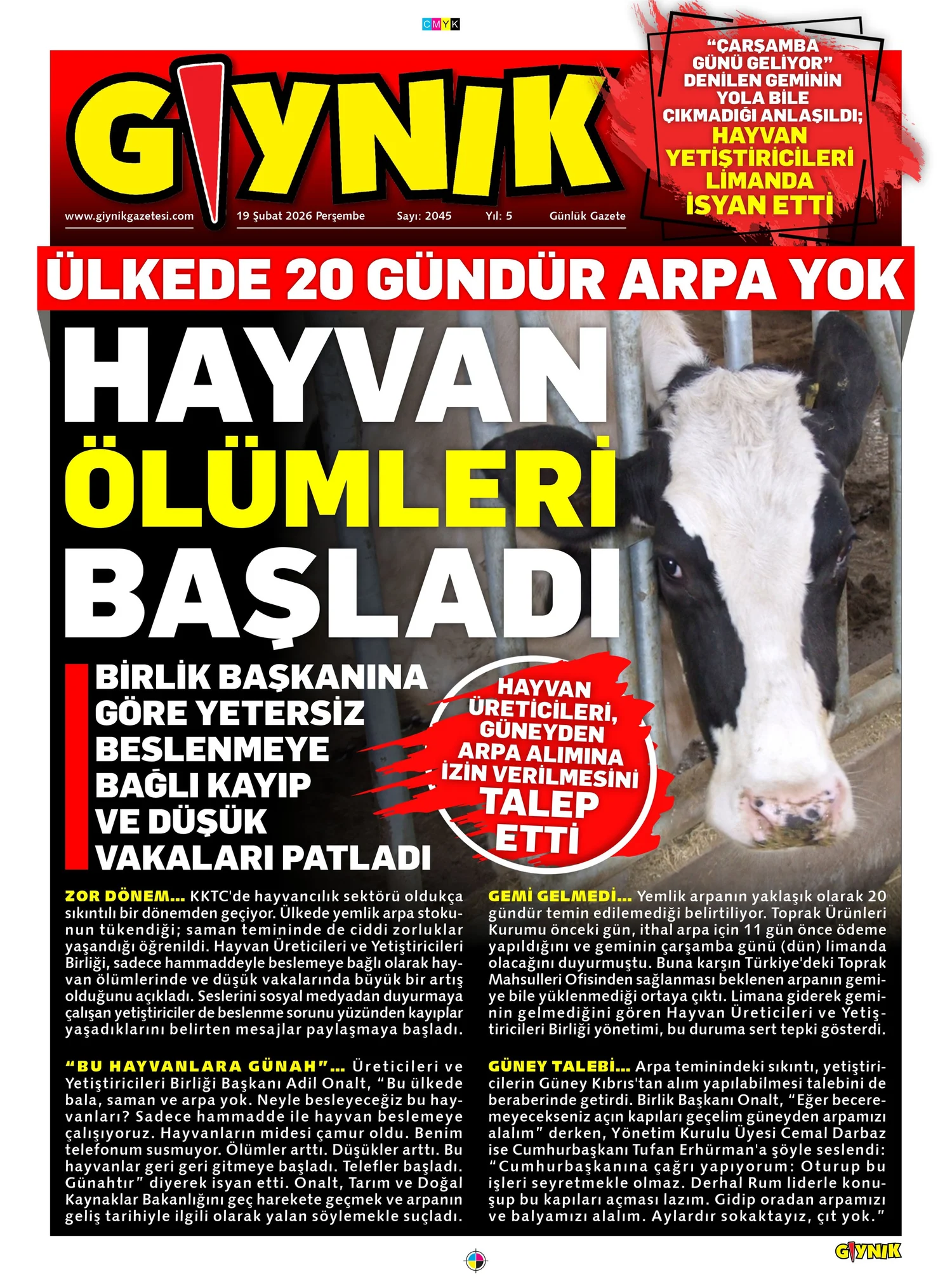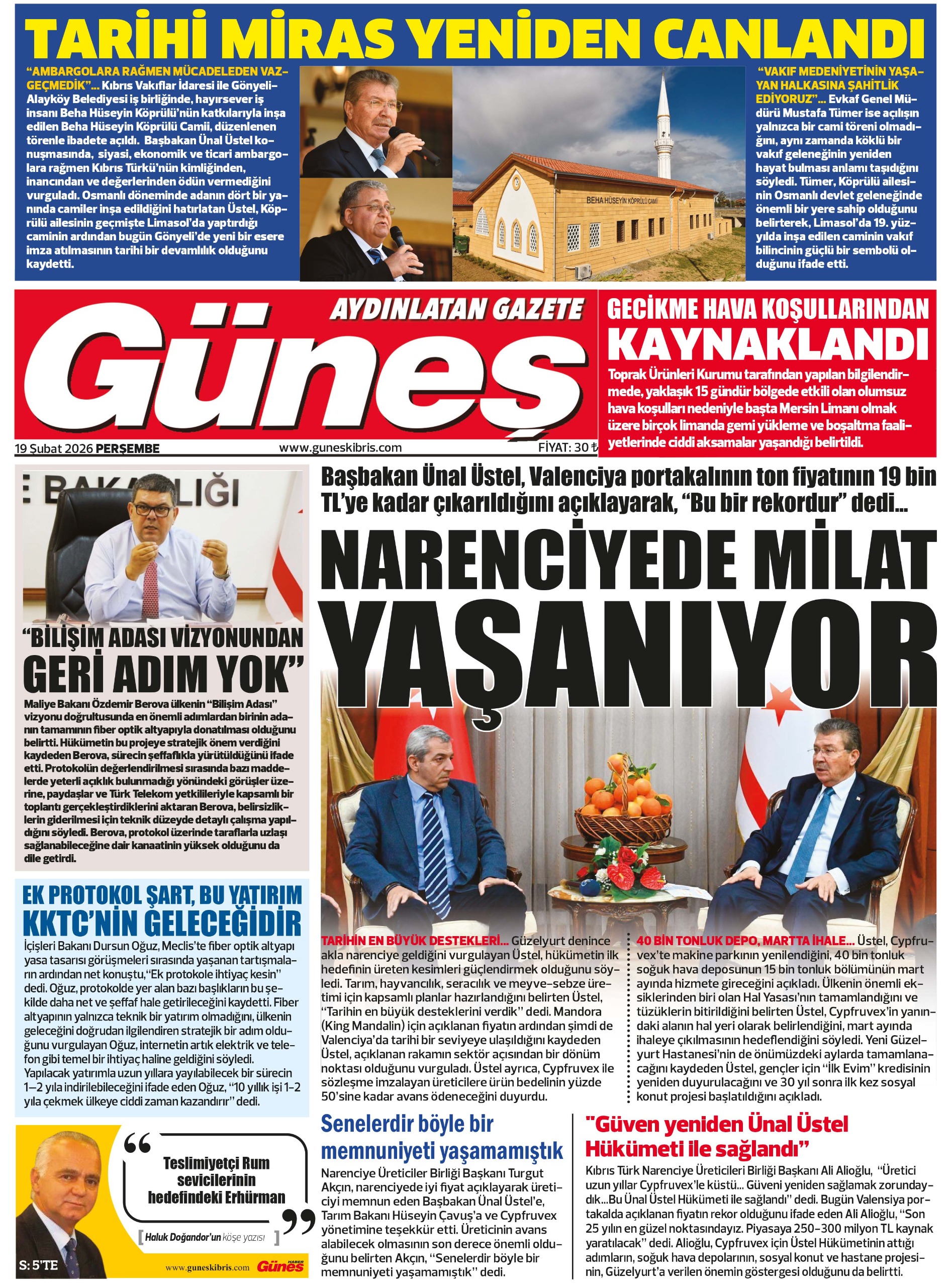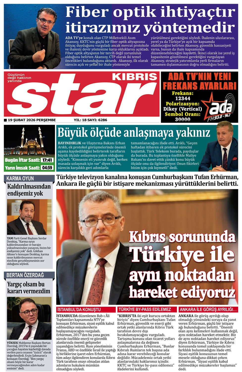 GündemKıbrısManşet19 ŞUBAT KKTC GAZETE MANŞETLERİŞubat 19, 2026 9:36 am PaylaşEtiketlendi:19 ŞUBAT KKTC GAZETE MANŞETLERİ İlgili haberler GAZETE MANŞETLERİ (17 ŞUBAT 2026) Şubat 17, 2026 GAZETE MANŞETLERİ (14 ŞUBAT 2026) GÖRSELLERİ YAKINLAŞTIRMA YAPAB ... Şubat 14, 2026 GAZETE MANŞETLERİ (12 ŞUBAT 2026) Şubat 12, 2026 Cevap bırakın Yanıtı iptal etE-posta adresiniz yayınlanmayacak. Gerekli alanlar * ile işaretlenmişlerdirYorumAd * E-posta * İnternet sitesi Daha sonraki yorumlarımda kullanılması için adım, e-posta adresim ve site adresim bu tarayıcıya kaydedilsin.