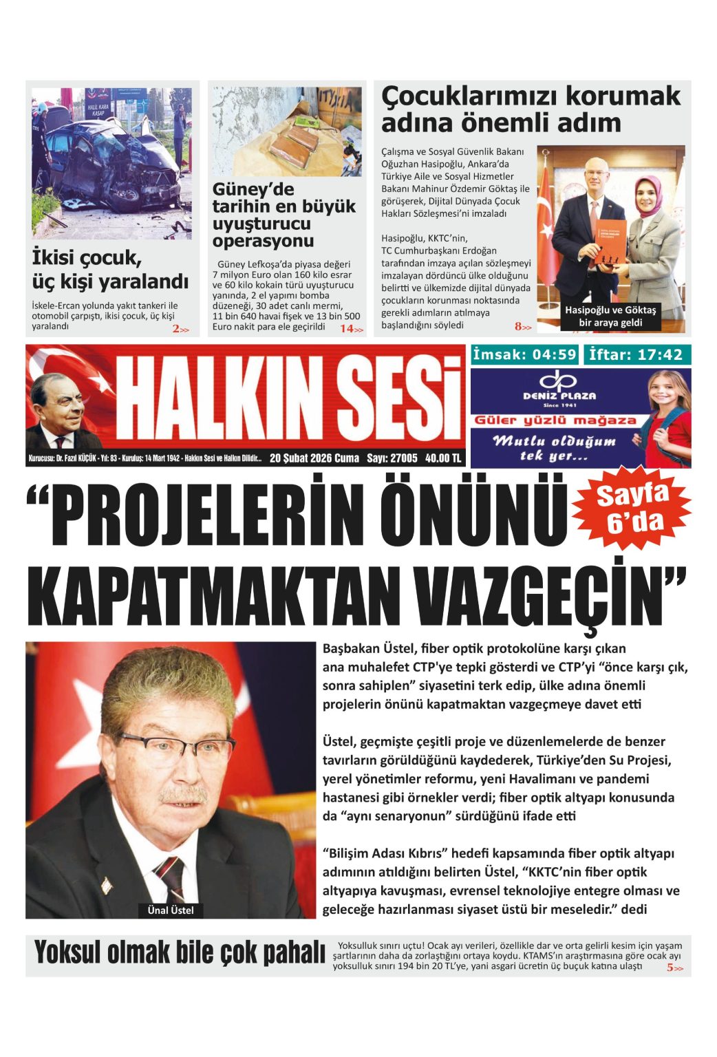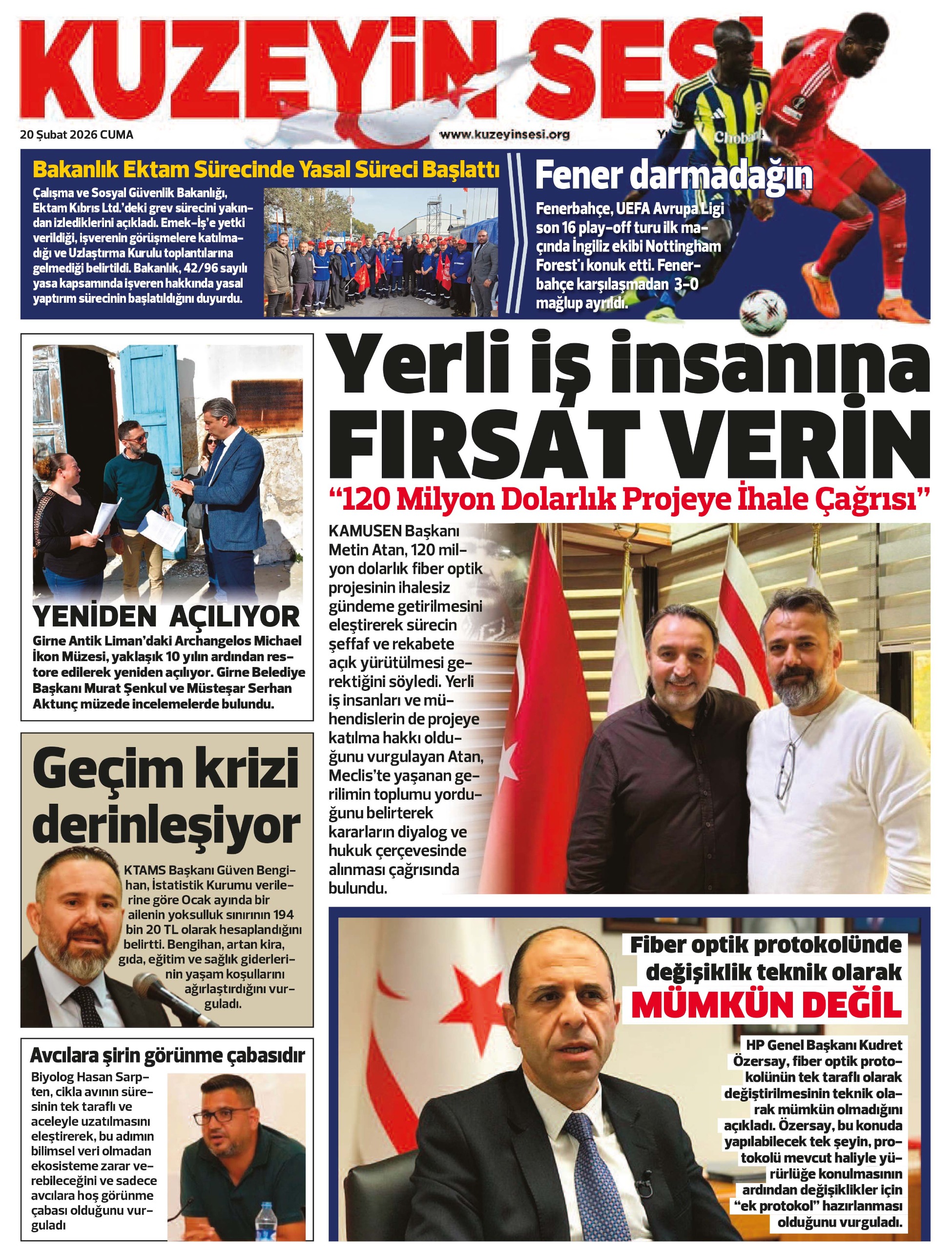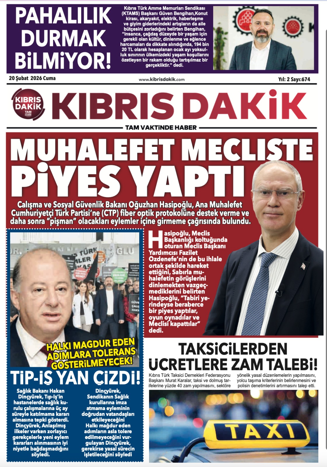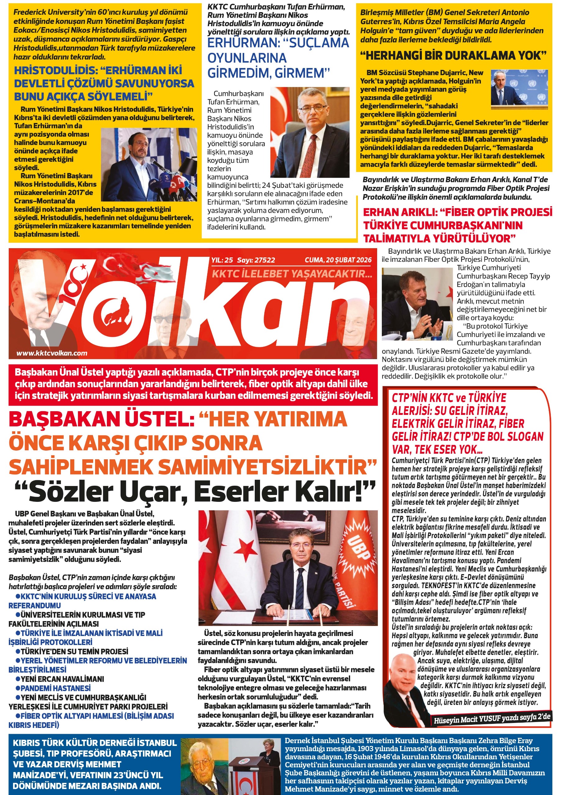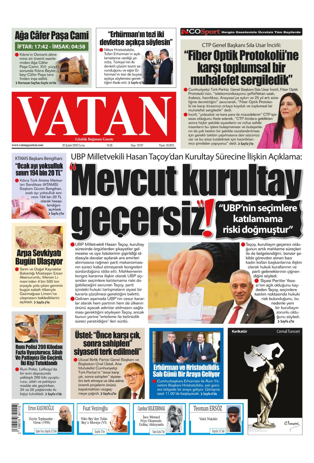 GündemKıbrısManşetGAZETE MANŞETLERİ (20 ŞUBAT 2026)Şubat 20, 2026 8:21 am PaylaşEtiketlendi:Kibris dakik KKTC gazeteleri manşetleri İlgili haberler 19 ŞUBAT KKTC GAZETE MANŞETLERİ Şubat 19, 2026 GAZETE MANŞETLERİ (17 ŞUBAT 2026) Şubat 17, 2026 GAZETE MANŞETLERİ (14 ŞUBAT 2026) GÖRSELLERİ YAKINLAŞTIRMA YAPAB ... Şubat 14, 2026 Cevap bırakın Yanıtı iptal etE-posta adresiniz yayınlanmayacak. Gerekli alanlar * ile işaretlenmişlerdirYorumAd * E-posta * İnternet sitesi Daha sonraki yorumlarımda kullanılması için adım, e-posta adresim ve site adresim bu tarayıcıya kaydedilsin.