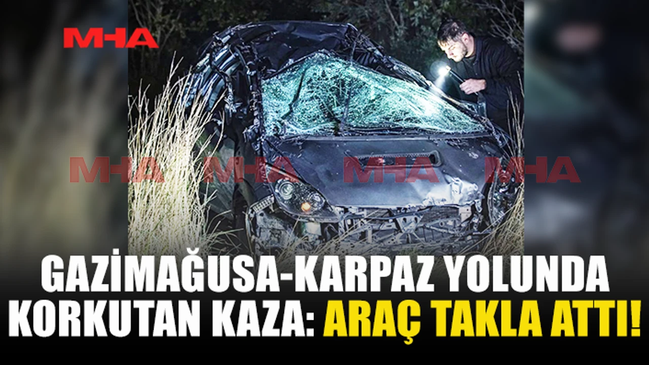 GAZİMAĞUSA-KARPAZ YOLUNDA KORKUTAN KAZA: ARAÇ TAKLA ATTI!