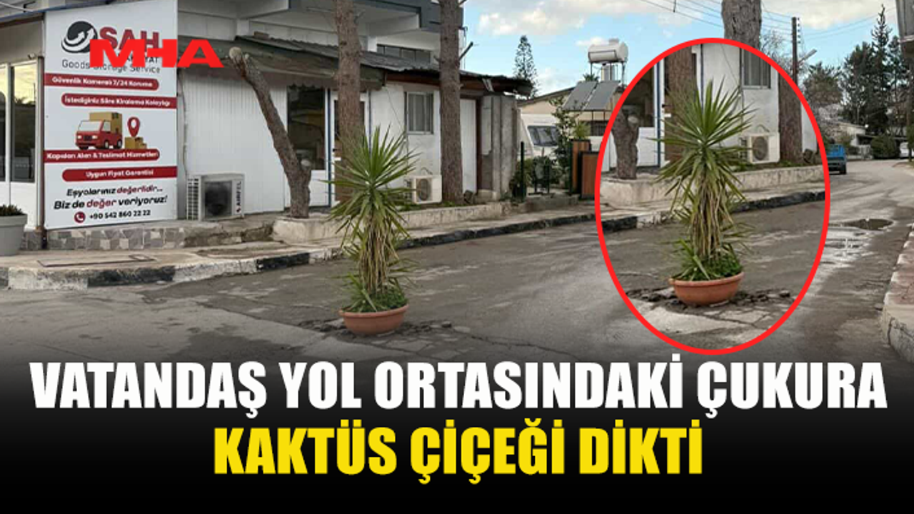 Gazimağusa’ya bağlı Tuzla köyünde yol ortasında açılan çukur aylardır tamir edilmeyince, vatandaşlar çareyi yolun ortasına saksı ile bir tür kaktüs çiçeği ekmekte buldu.