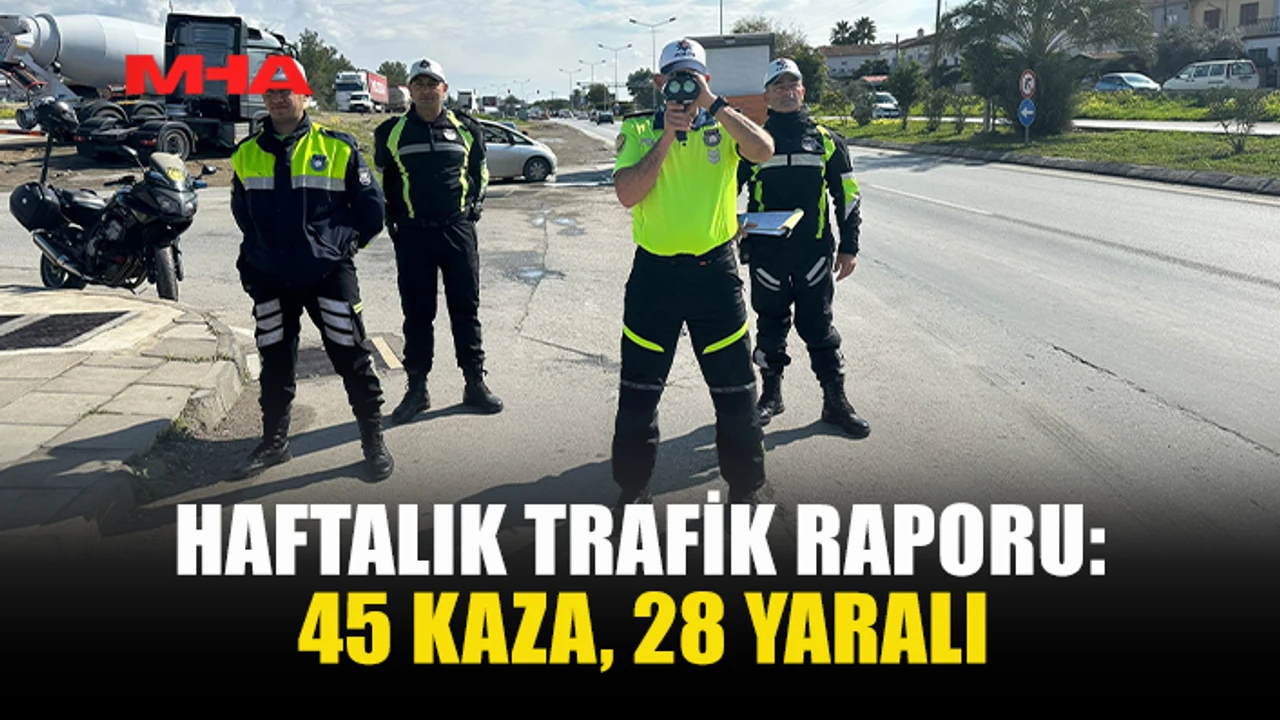 Polis Genel Müdürlüğü’nün 16-22 Şubat tarihlerini kapsayan haftalık trafik raporuna göre, 45 trafik kazası meydana geldi. Bu kazaların 21’i yaralanmayla ve 24’ü ise hasarla sonuçlandı.