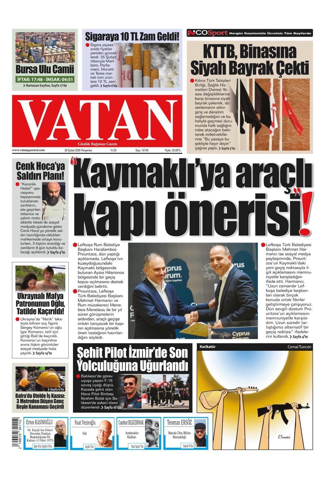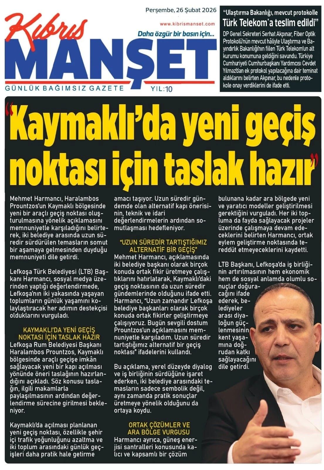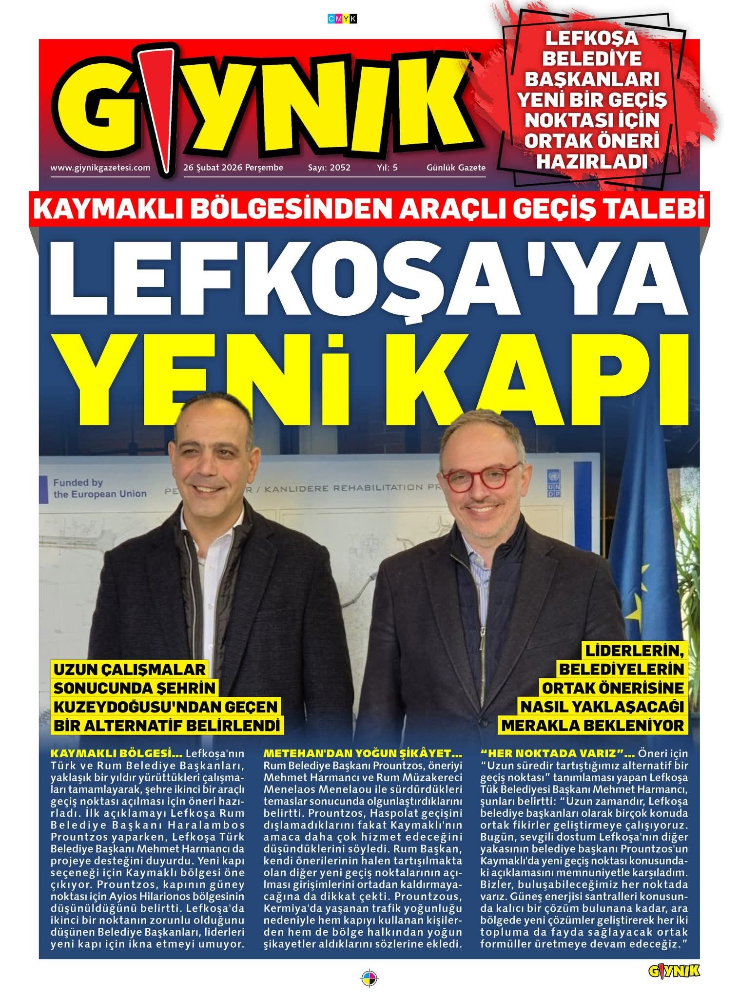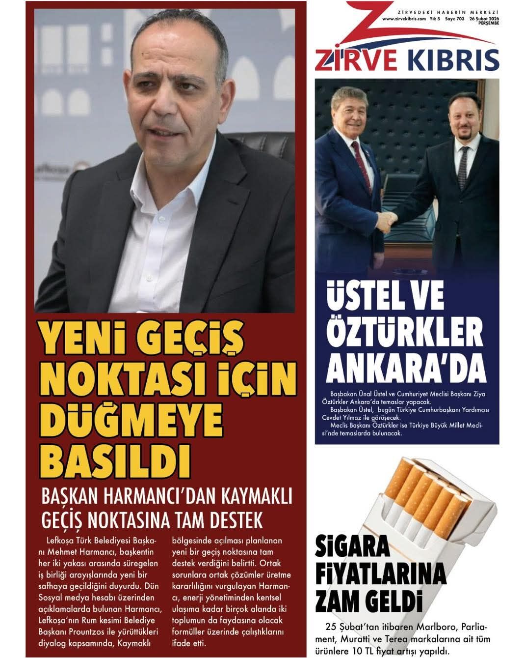 GündemKıbrısManşetGAZETE MANŞETLERİ (26 ŞUBAT 2026)Şubat 26, 2026 8:25 am PaylaşEtiketlendi:Kibrisdakik.com KKTC Gazete Manşetleri 5 Kasım 2025 İlgili haberler GAZETE MANŞETLERİ (24 ŞUBAT 2026) Şubat 24, 2026 19 ŞUBAT KKTC GAZETE MANŞETLERİ Şubat 19, 2026 GAZETE MANŞETLERİ (17 ŞUBAT 2026) Şubat 17, 2026 Cevap bırakın Yanıtı iptal etE-posta adresiniz yayınlanmayacak. Gerekli alanlar * ile işaretlenmişlerdirYorumAd * E-posta * İnternet sitesi Daha sonraki yorumlarımda kullanılması için adım, e-posta adresim ve site adresim bu tarayıcıya kaydedilsin.