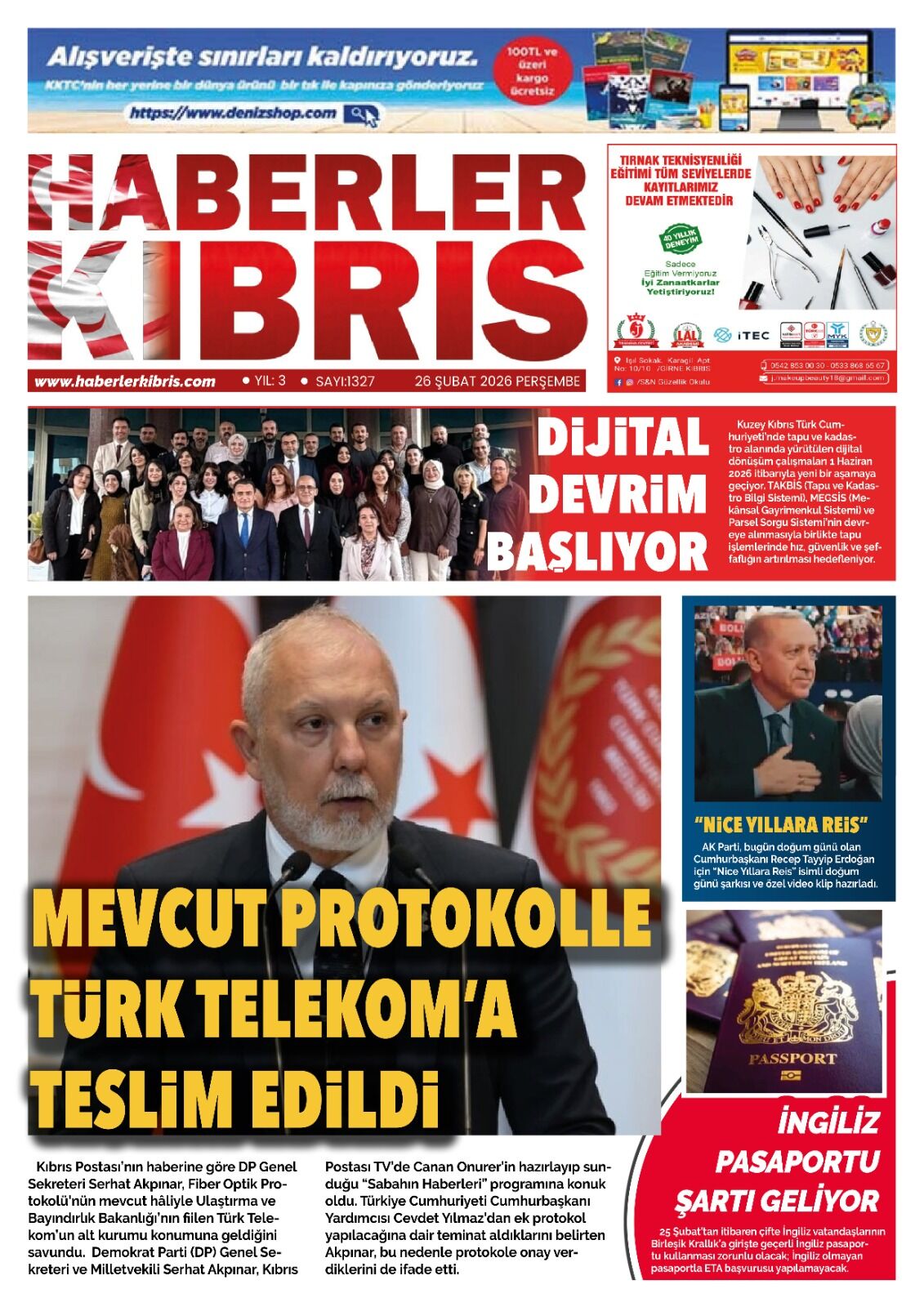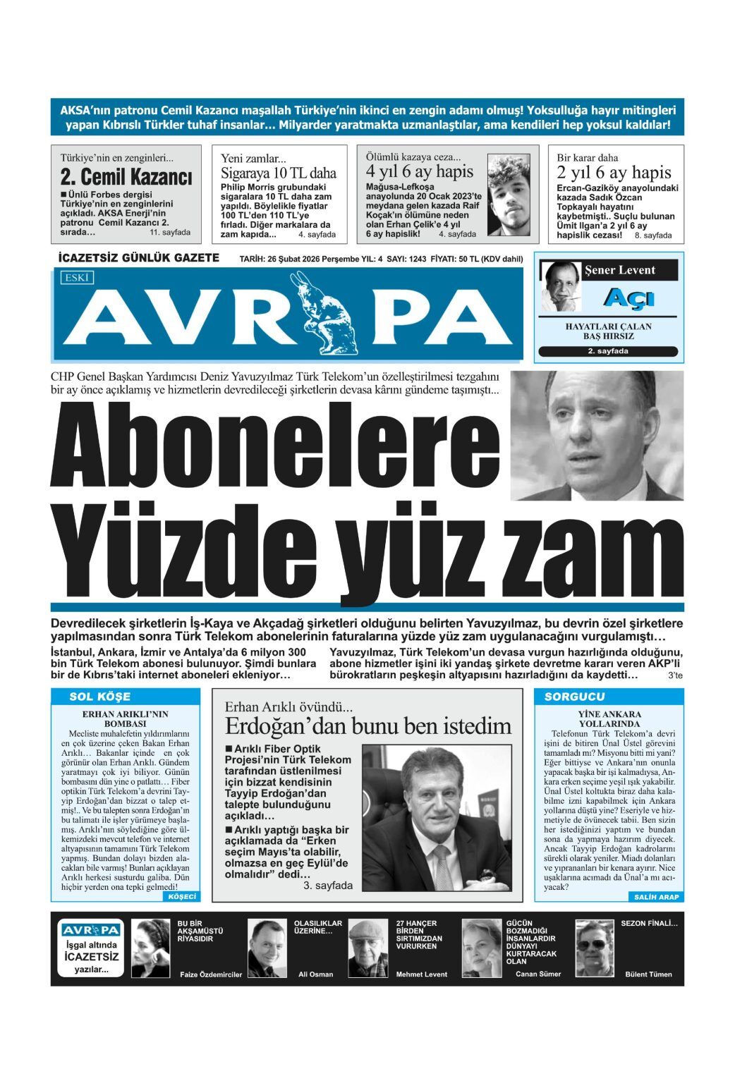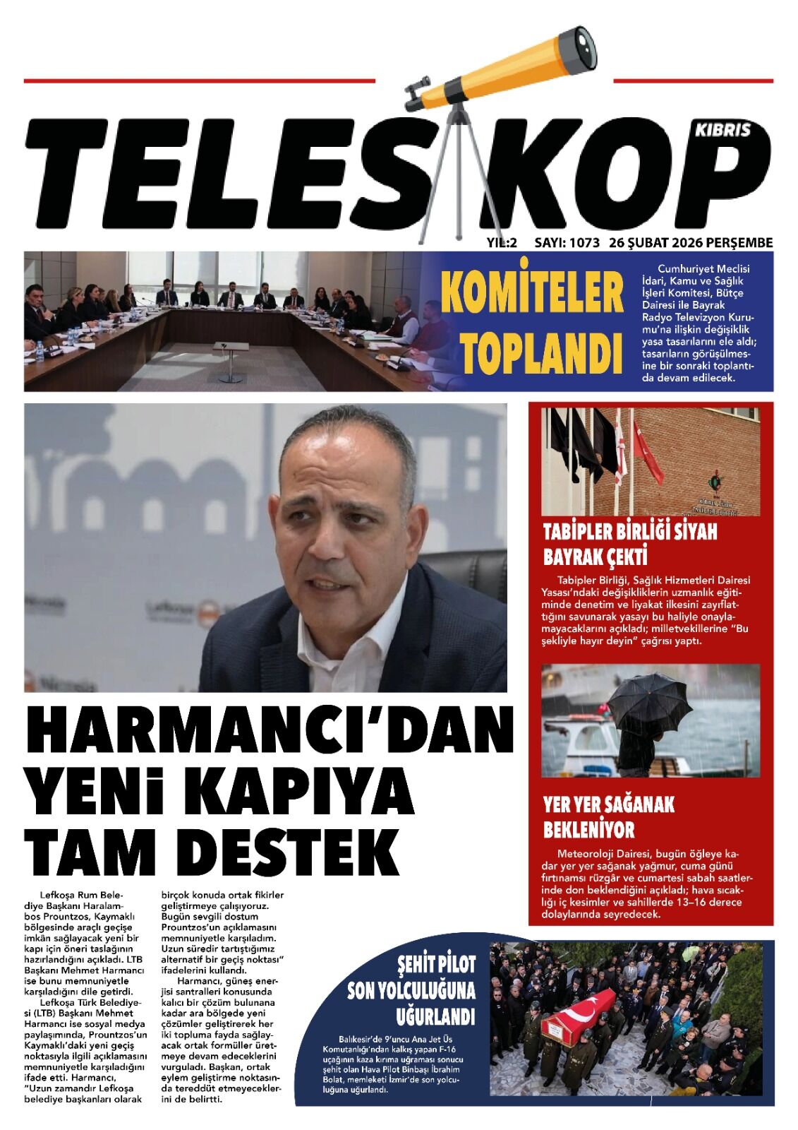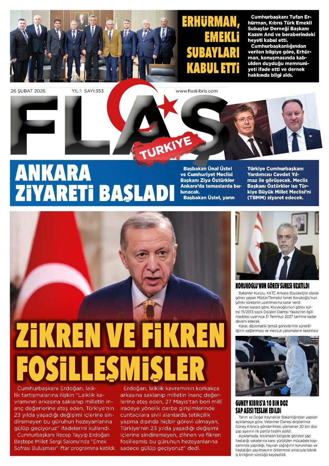 GündemKıbrısManşetGAZETE MANŞETLERİ (26 ŞUBAT 2026)Şubat 26, 2026 8:25 am PaylaşEtiketlendi:Kibrisdakik.com KKTC Gazete Manşetleri 5 Kasım 2025 İlgili haberler GAZETE MANŞETLERİ (24 ŞUBAT 2026) Şubat 24, 2026 19 ŞUBAT KKTC GAZETE MANŞETLERİ Şubat 19, 2026 GAZETE MANŞETLERİ (17 ŞUBAT 2026) Şubat 17, 2026 Cevap bırakın Yanıtı iptal etE-posta adresiniz yayınlanmayacak. Gerekli alanlar * ile işaretlenmişlerdirYorumAd * E-posta * İnternet sitesi Daha sonraki yorumlarımda kullanılması için adım, e-posta adresim ve site adresim bu tarayıcıya kaydedilsin.