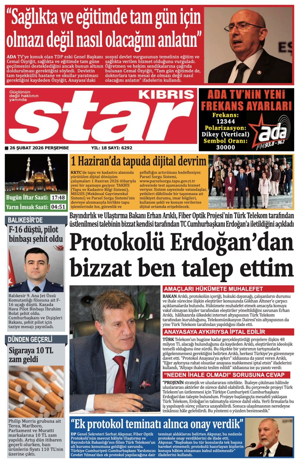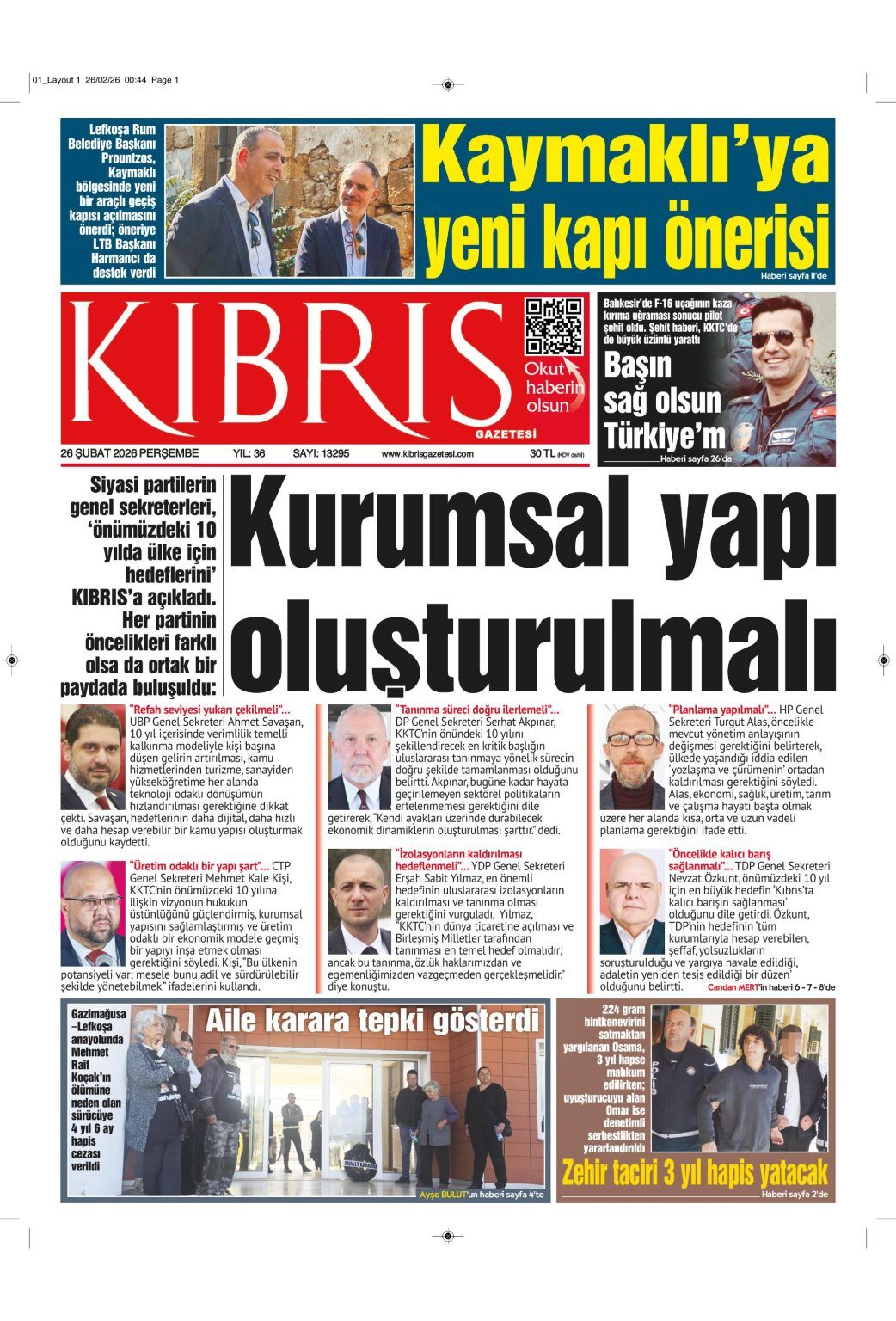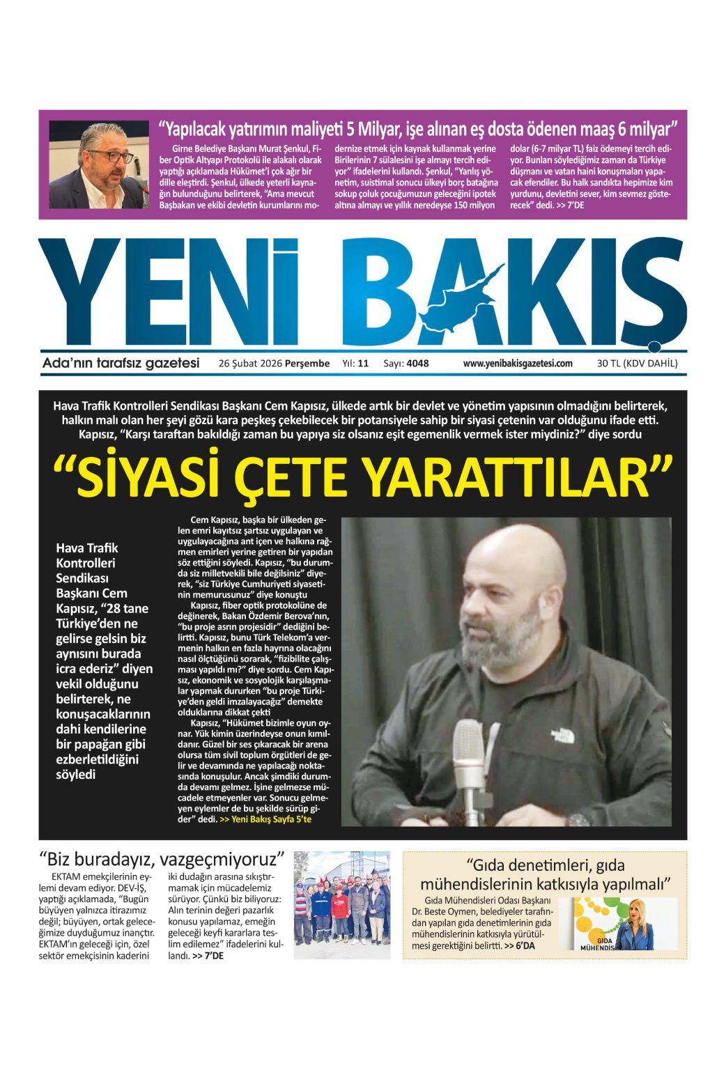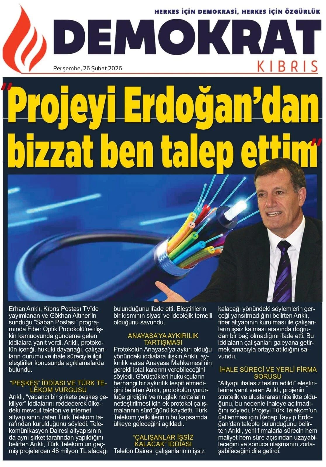 GündemKıbrısManşetGAZETE MANŞETLERİ (26 ŞUBAT 2026)Şubat 26, 2026 8:25 am PaylaşEtiketlendi:Kibrisdakik.com KKTC Gazete Manşetleri 5 Kasım 2025 İlgili haberler GAZETE MANŞETLERİ (24 ŞUBAT 2026) Şubat 24, 2026 19 ŞUBAT KKTC GAZETE MANŞETLERİ Şubat 19, 2026 GAZETE MANŞETLERİ (17 ŞUBAT 2026) Şubat 17, 2026 Cevap bırakın Yanıtı iptal etE-posta adresiniz yayınlanmayacak. Gerekli alanlar * ile işaretlenmişlerdirYorumAd * E-posta * İnternet sitesi Daha sonraki yorumlarımda kullanılması için adım, e-posta adresim ve site adresim bu tarayıcıya kaydedilsin.