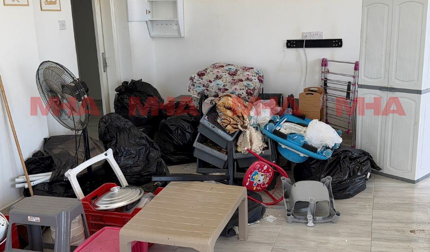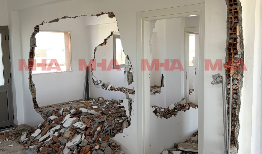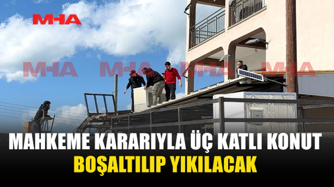 Gazimağusa’ya bağlı Güvercinlik Köyü’nde, Hakkı Yılmaz ve Herdem Yılmaz’a ait üç katlı apartman tipi konut, ikinci mahkeme kararına istinaden yıkım öncesi boşaltılıyor.
