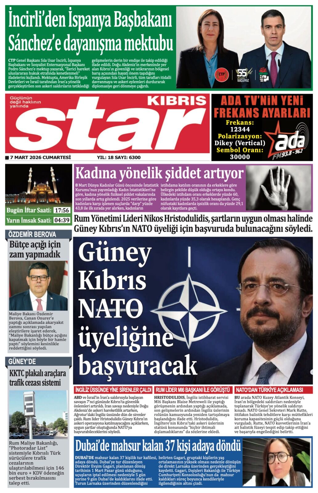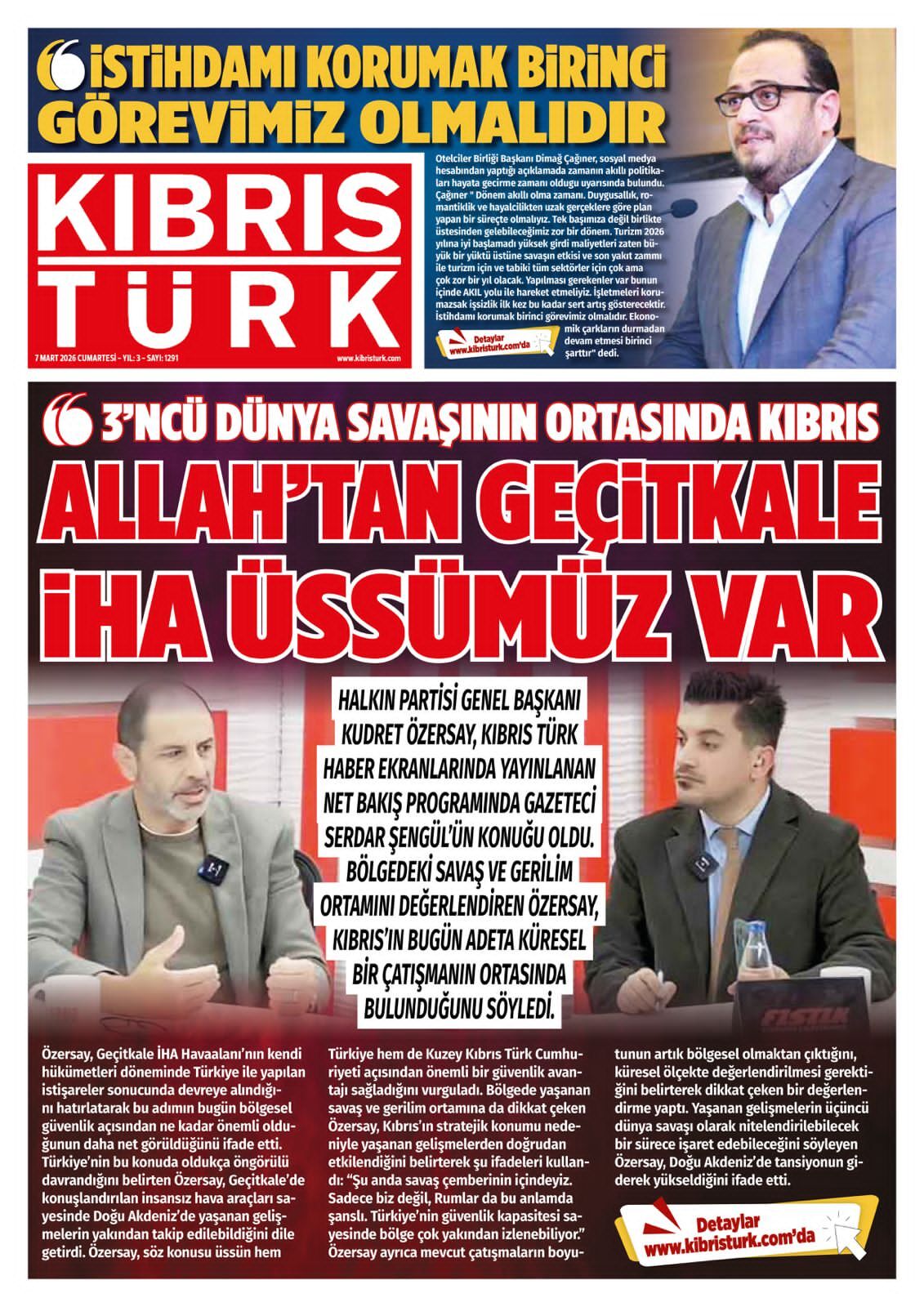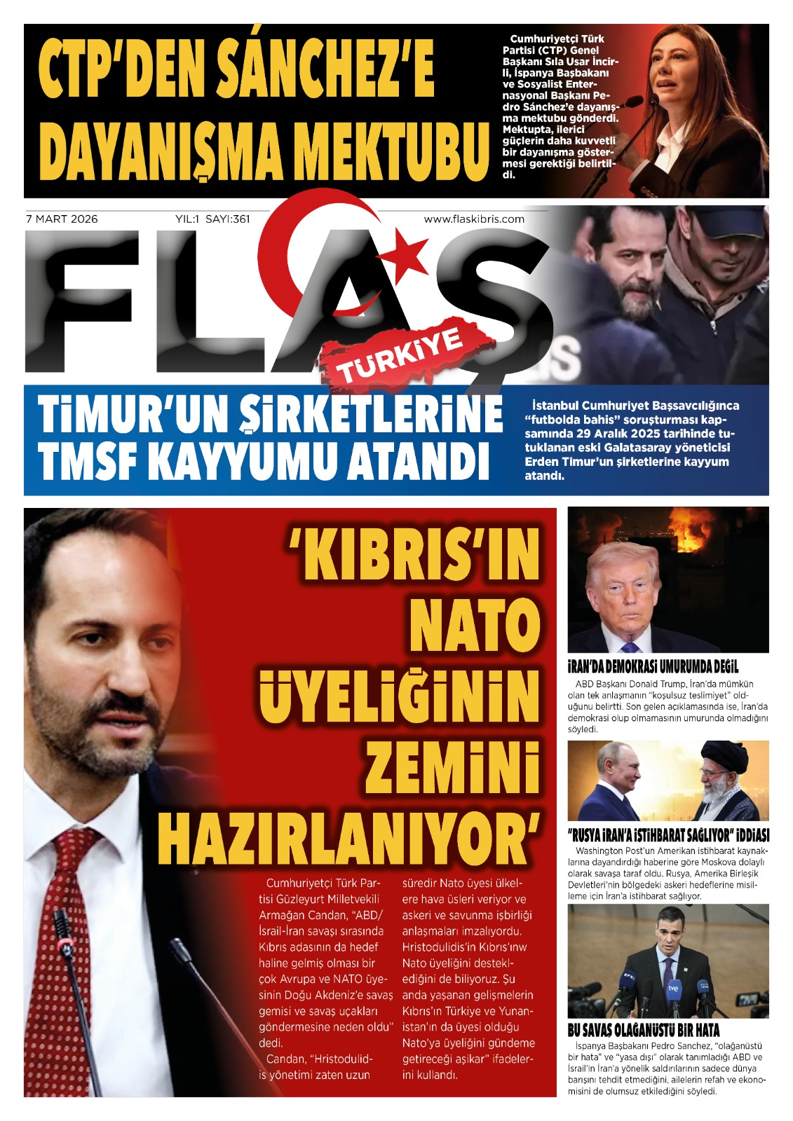 KıbrısGAZETE MANŞETLERİ (7 MART 2026)Mart 7, 2026 8:59 am Paylaş İlgili haberler DOĞU AKDENİZ DOĞA ANAOKULU’NDA “KİDS ATHLETİCS” ETKİNLİĞİ Mart 7, 2026 NÖBETÇİ ECZANELER (7 MART 2026) Mart 7, 2026 İSKELE’DE ZÜLFÜ LİVANELİ SÖYLEŞİSİNE BÜYÜK İLGİ Mart 6, 2026 Cevap bırakın Yanıtı iptal etE-posta adresiniz yayınlanmayacak. Gerekli alanlar * ile işaretlenmişlerdirYorumAd * E-posta * İnternet sitesi Daha sonraki yorumlarımda kullanılması için adım, e-posta adresim ve site adresim bu tarayıcıya kaydedilsin.