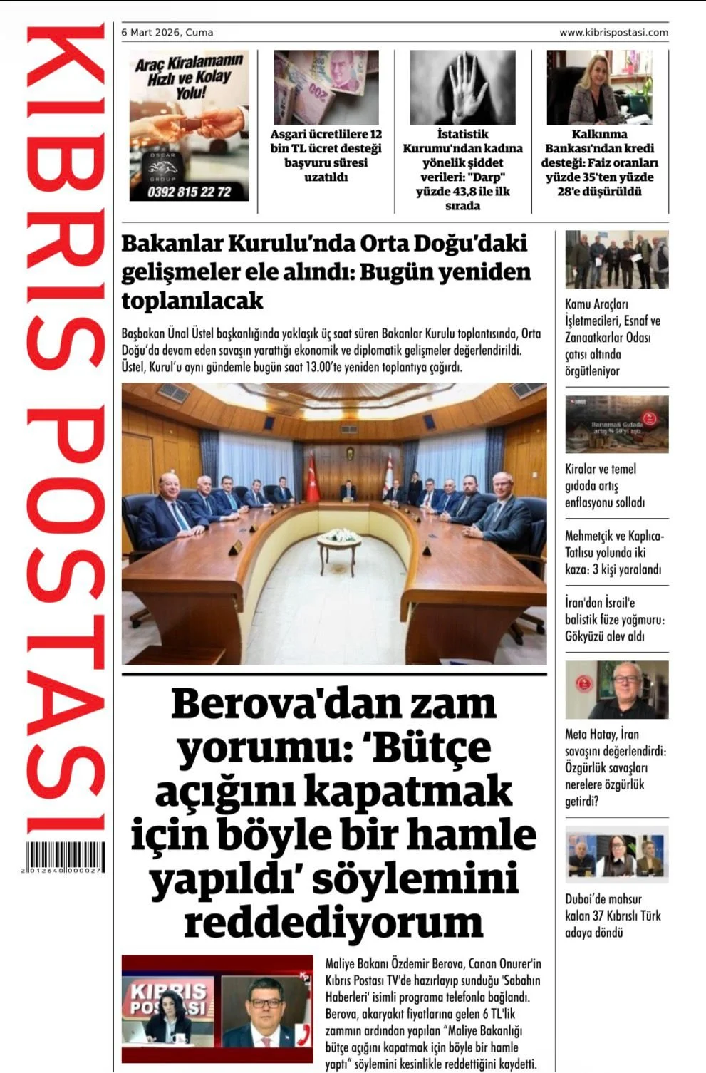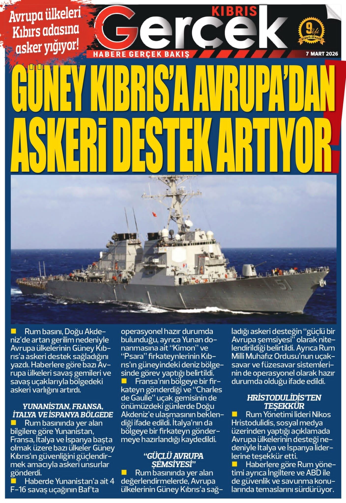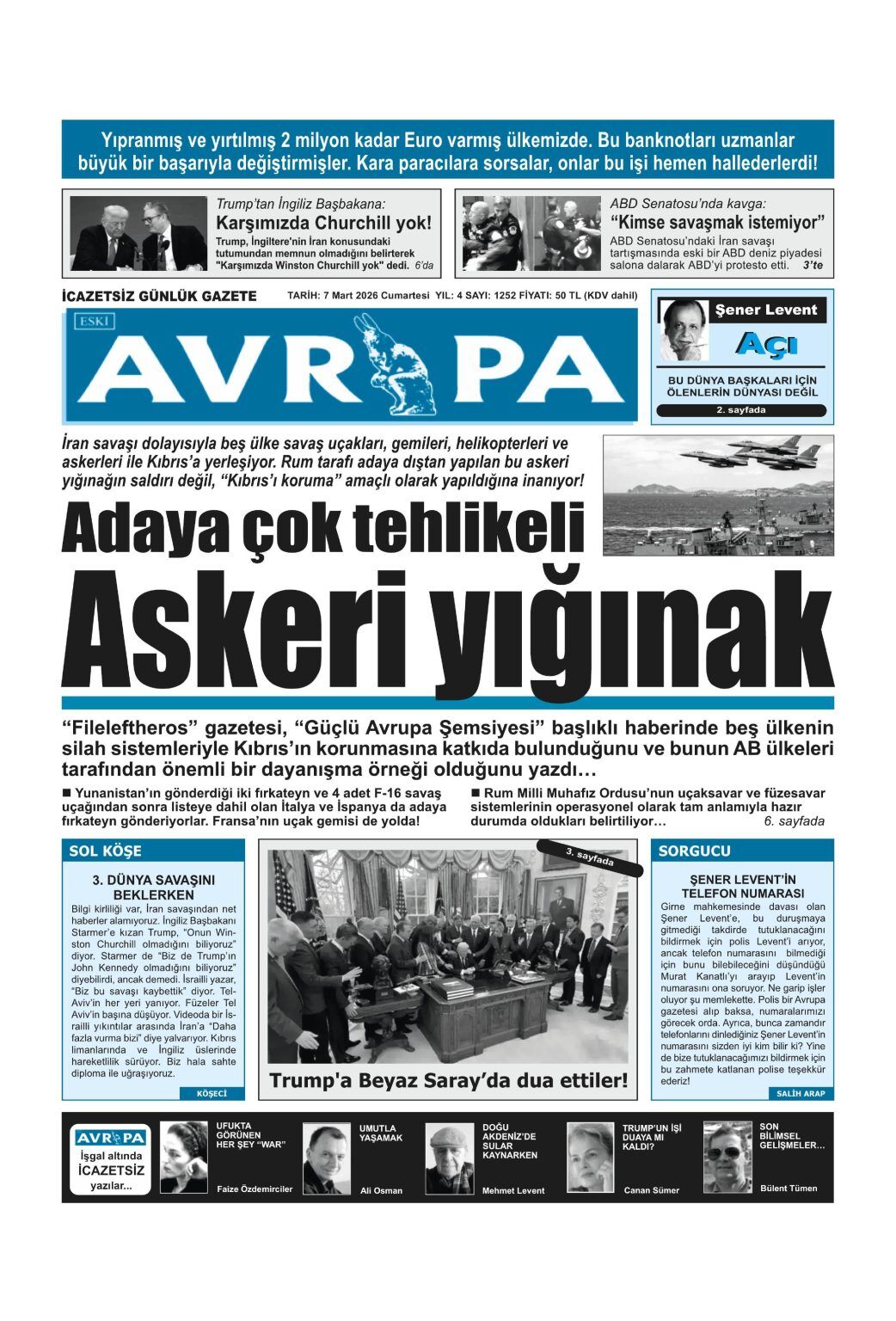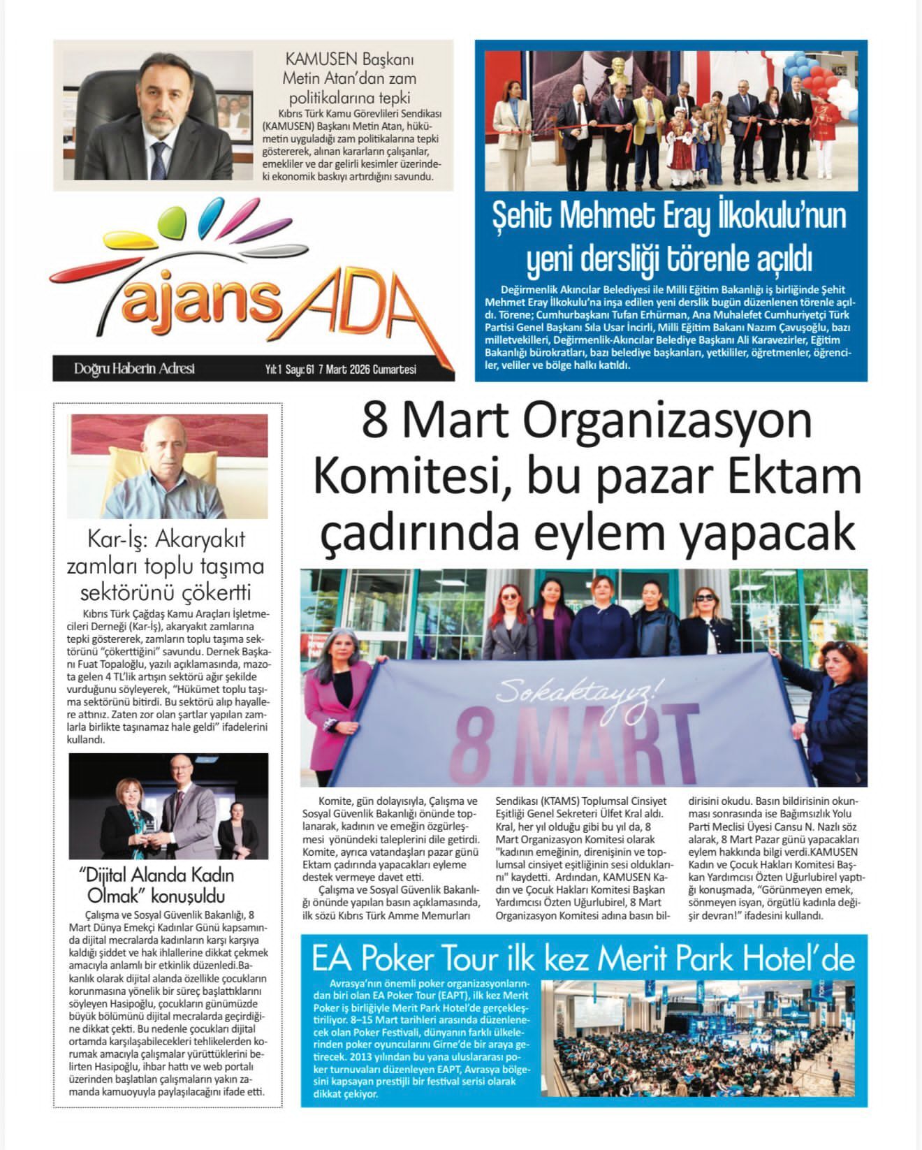 KıbrısGAZETE MANŞETLERİ (7 MART 2026)Mart 7, 2026 8:59 am Paylaş İlgili haberler DOĞU AKDENİZ DOĞA ANAOKULU’NDA “KİDS ATHLETİCS” ETKİNLİĞİ Mart 7, 2026 NÖBETÇİ ECZANELER (7 MART 2026) Mart 7, 2026 İSKELE’DE ZÜLFÜ LİVANELİ SÖYLEŞİSİNE BÜYÜK İLGİ Mart 6, 2026 Cevap bırakın Yanıtı iptal etE-posta adresiniz yayınlanmayacak. Gerekli alanlar * ile işaretlenmişlerdirYorumAd * E-posta * İnternet sitesi Daha sonraki yorumlarımda kullanılması için adım, e-posta adresim ve site adresim bu tarayıcıya kaydedilsin.