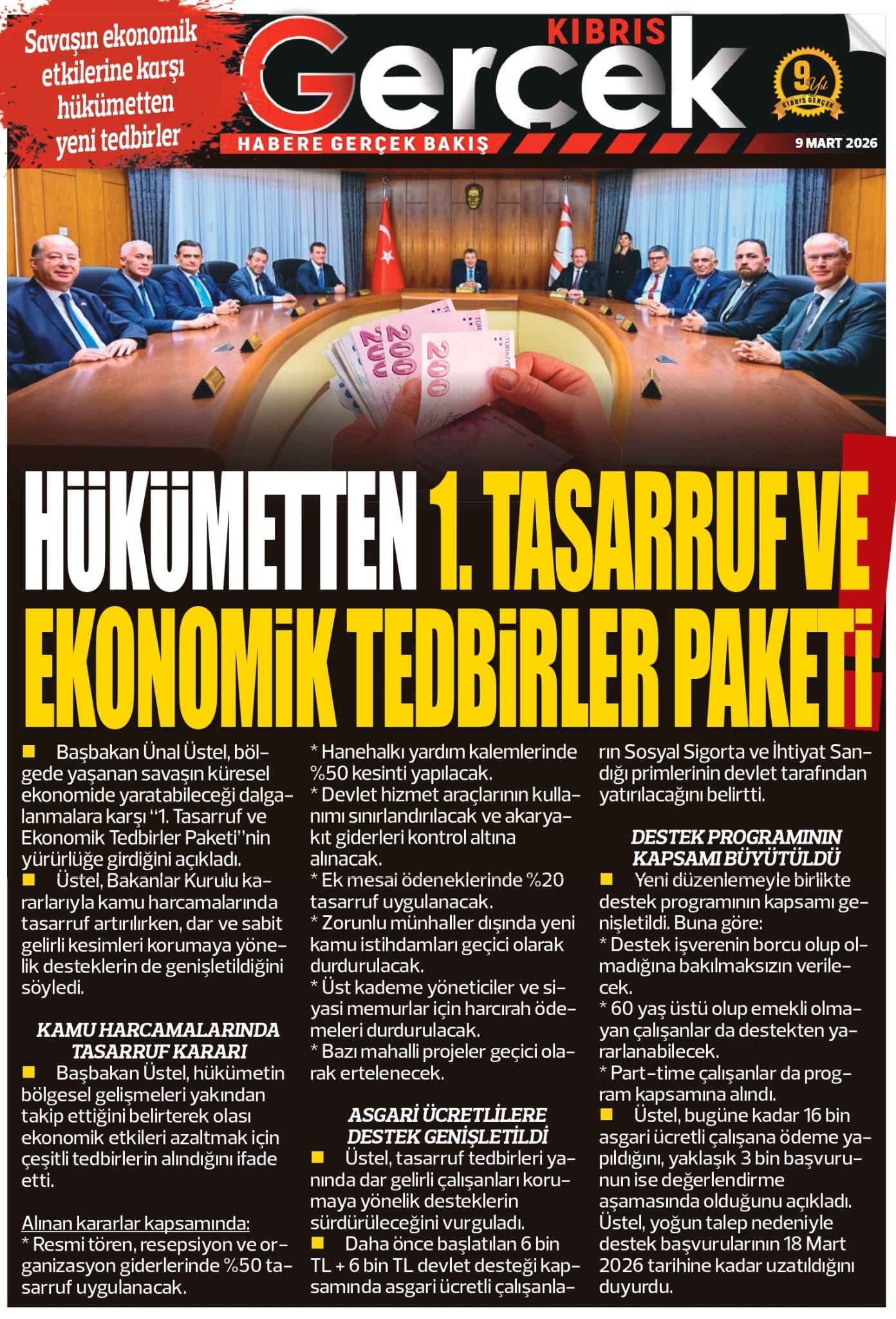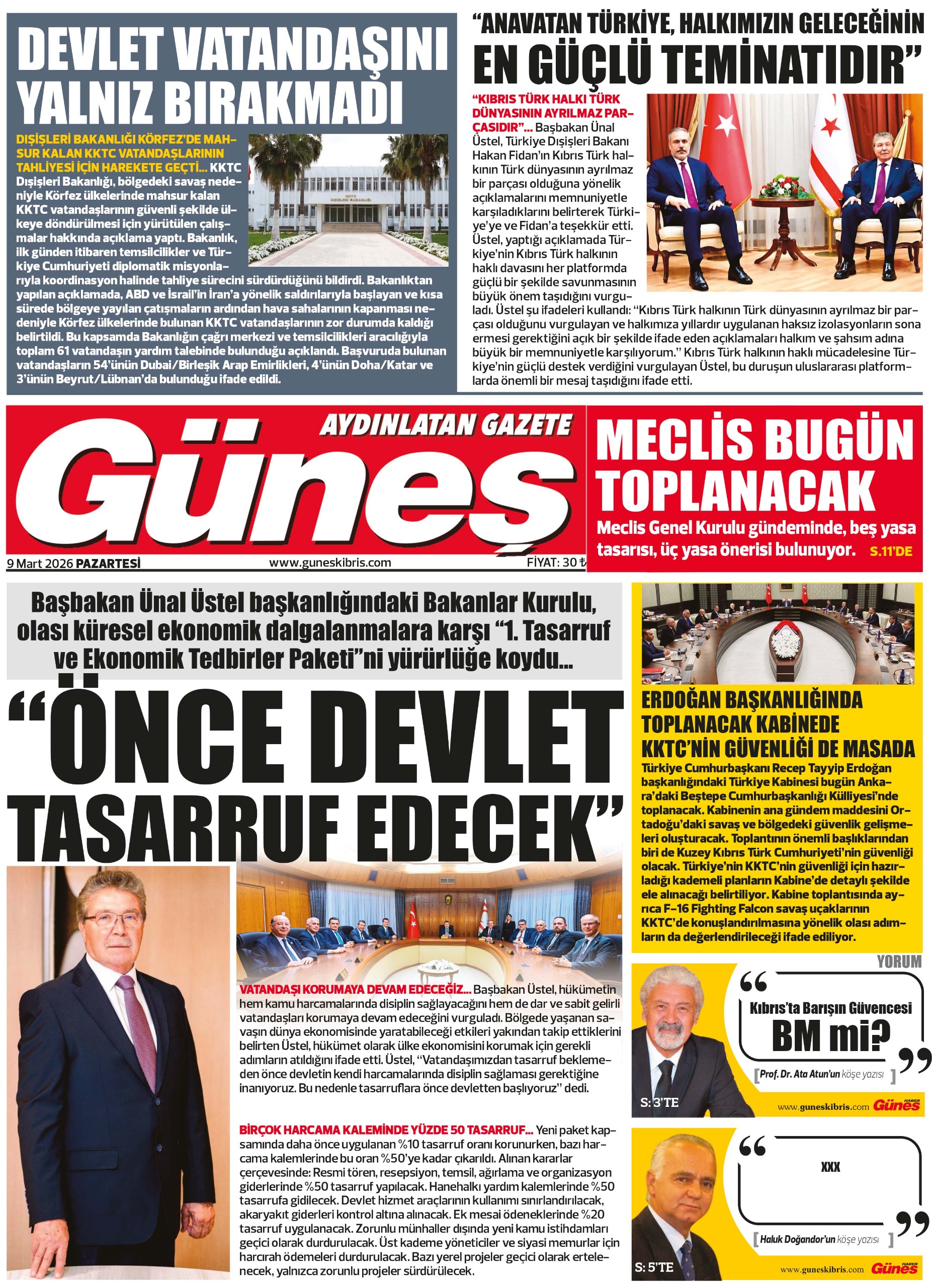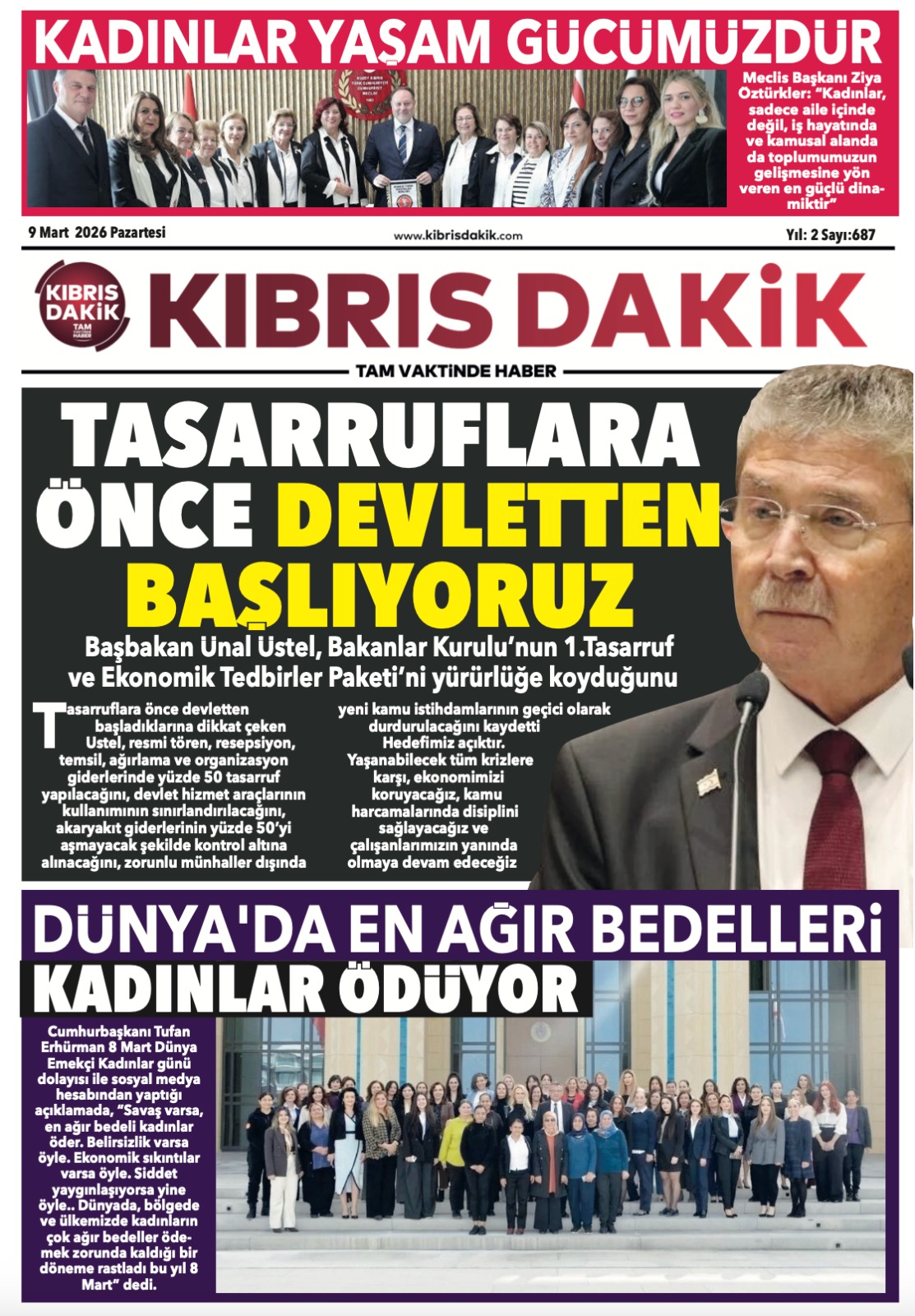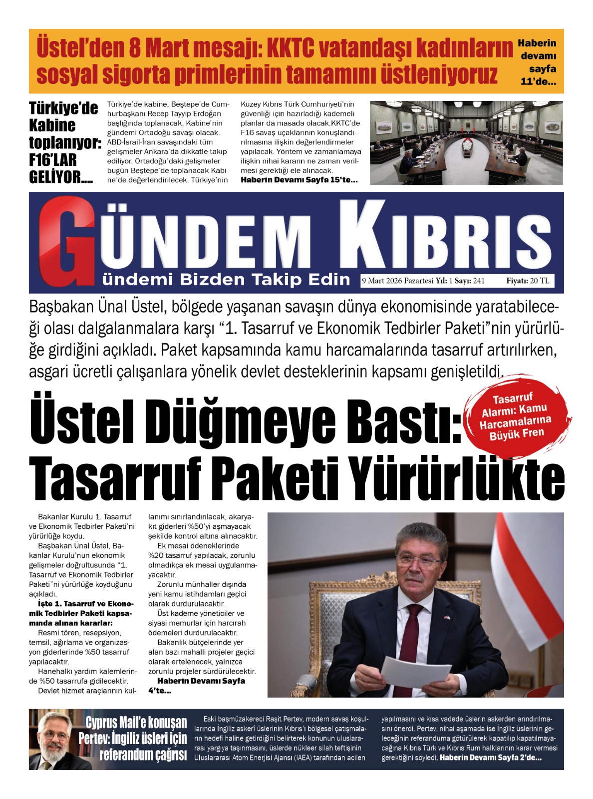 KıbrısSporTürkiyeGAZETE MANŞETLERİ (9 MART 2026)Mart 9, 2026 8:50 am Paylaş İlgili haberler TACİZ İDDİASI İLE TUTUKLANAN B.M. ALEYHİNDEKİ TUTUKLULUK UZATILDI Mart 9, 2026 BAHİS ŞEBEKESİNE POLİS DARBESİ Mart 9, 2026 MECLİS’TE TASARRUF TEDBİRLERİ TARTIŞMASI… Mart 9, 2026 Cevap bırakın Yanıtı iptal etE-posta adresiniz yayınlanmayacak. Gerekli alanlar * ile işaretlenmişlerdirYorumAd * E-posta * İnternet sitesi Daha sonraki yorumlarımda kullanılması için adım, e-posta adresim ve site adresim bu tarayıcıya kaydedilsin.