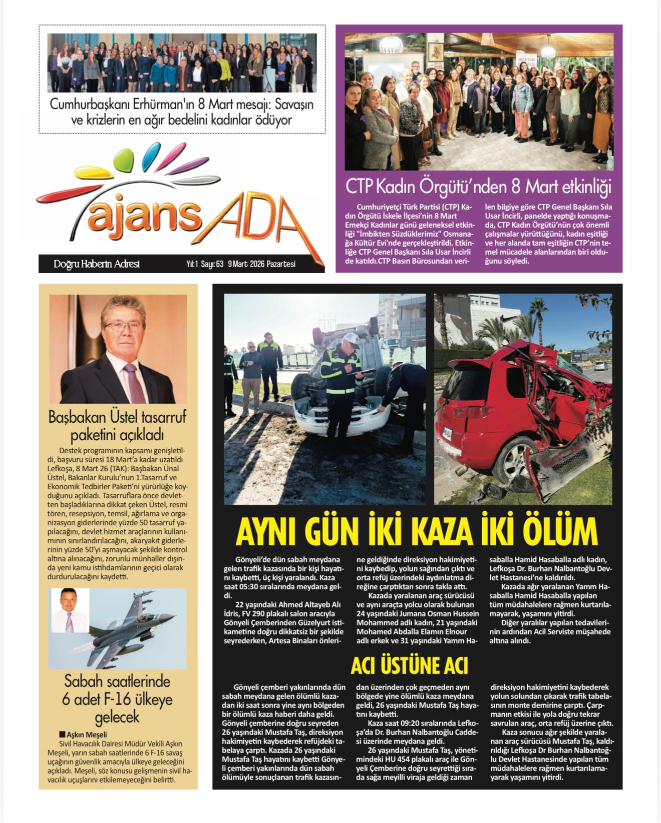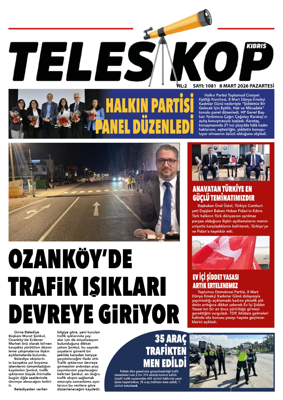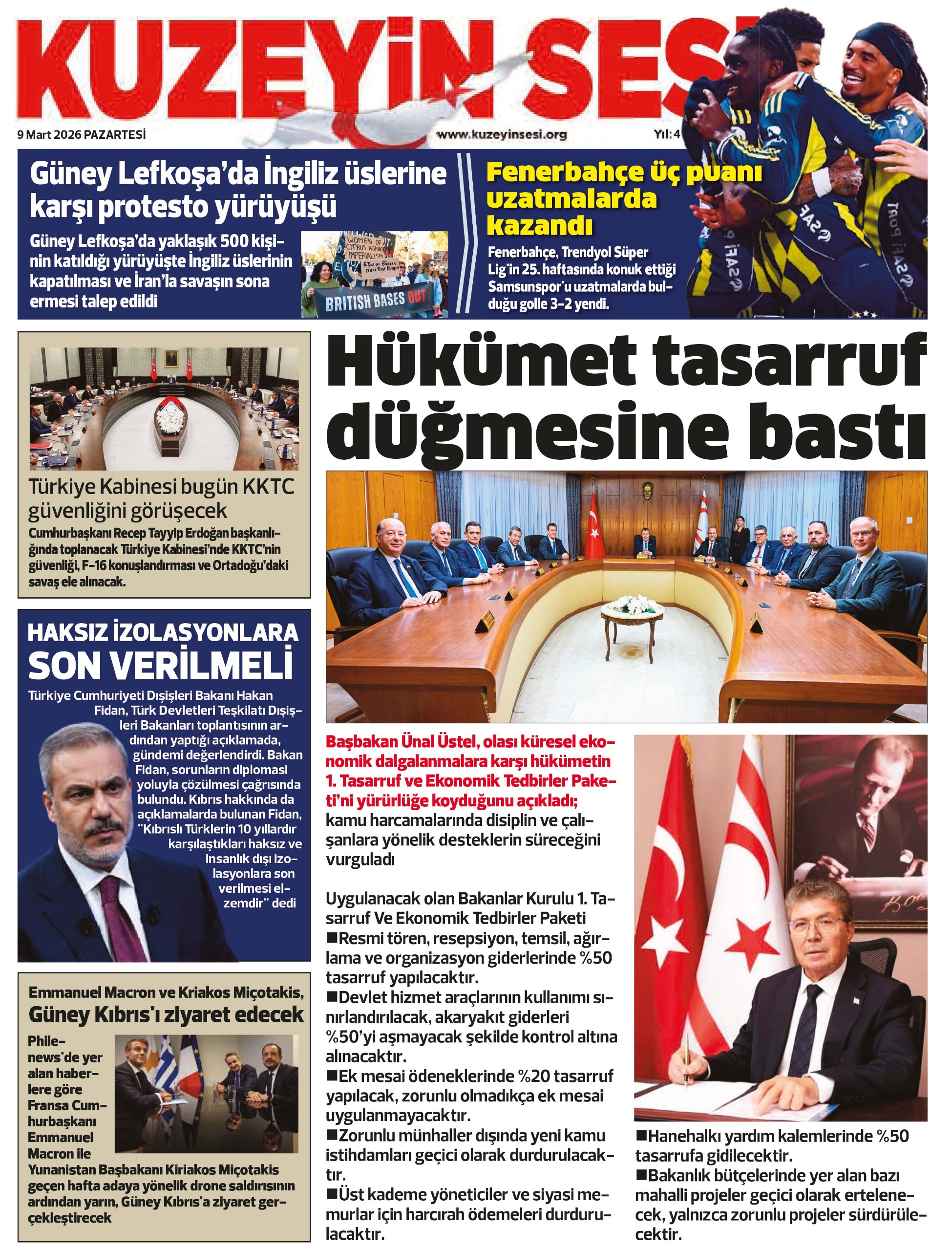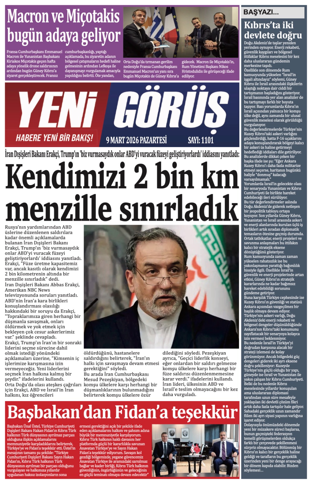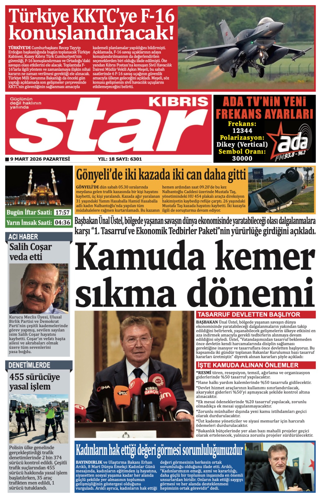 KıbrısSporTürkiyeGAZETE MANŞETLERİ (9 MART 2026)Mart 9, 2026 8:50 am Paylaş İlgili haberler TACİZ İDDİASI İLE TUTUKLANAN B.M. ALEYHİNDEKİ TUTUKLULUK UZATILDI Mart 9, 2026 BAHİS ŞEBEKESİNE POLİS DARBESİ Mart 9, 2026 MECLİS’TE TASARRUF TEDBİRLERİ TARTIŞMASI… Mart 9, 2026 Cevap bırakın Yanıtı iptal etE-posta adresiniz yayınlanmayacak. Gerekli alanlar * ile işaretlenmişlerdirYorumAd * E-posta * İnternet sitesi Daha sonraki yorumlarımda kullanılması için adım, e-posta adresim ve site adresim bu tarayıcıya kaydedilsin.