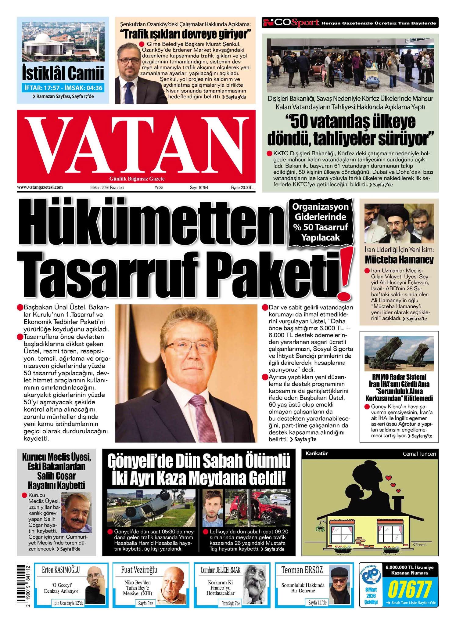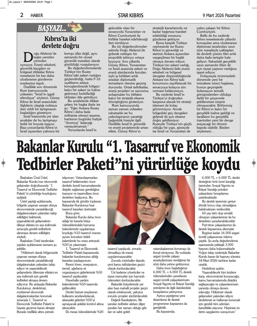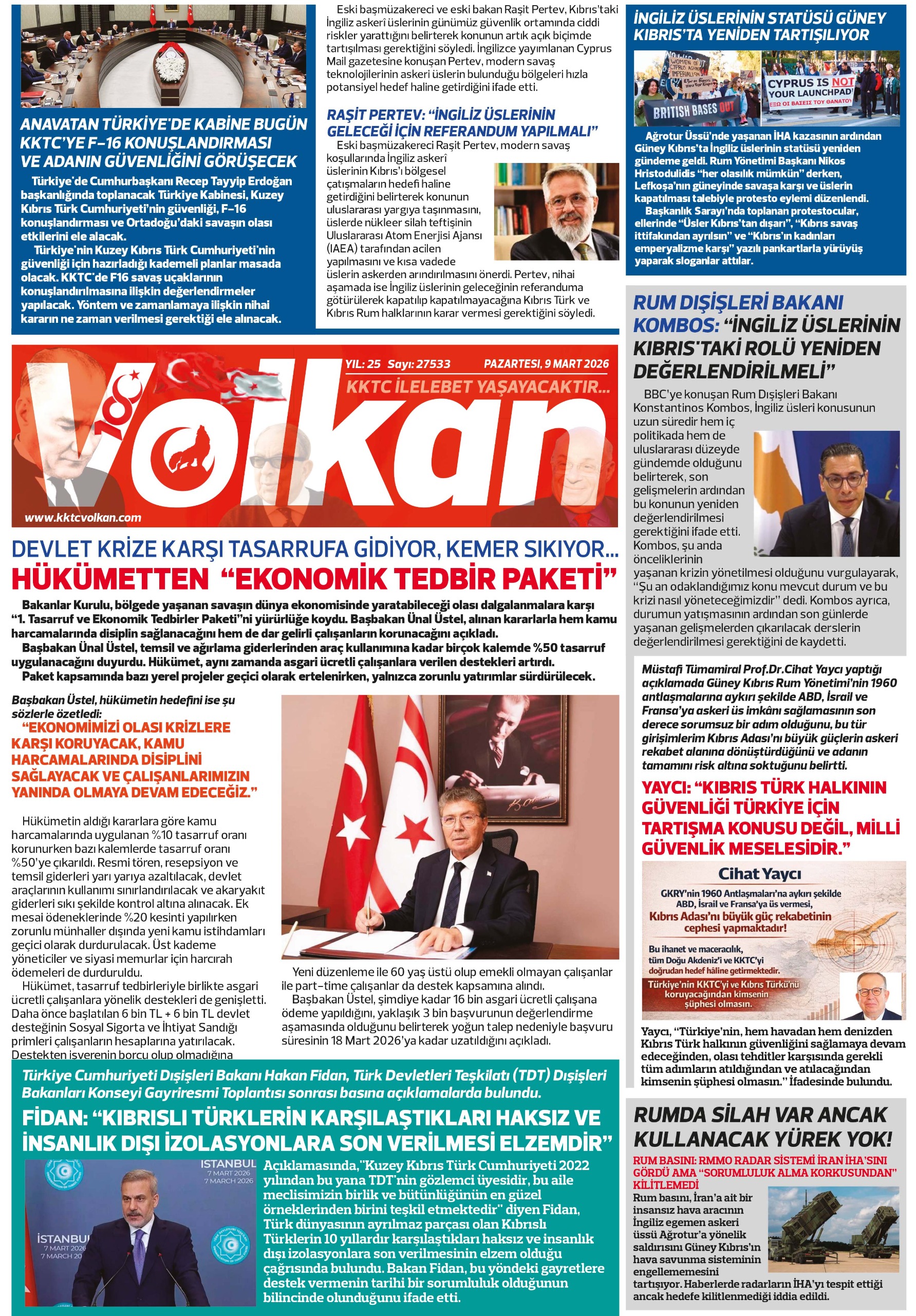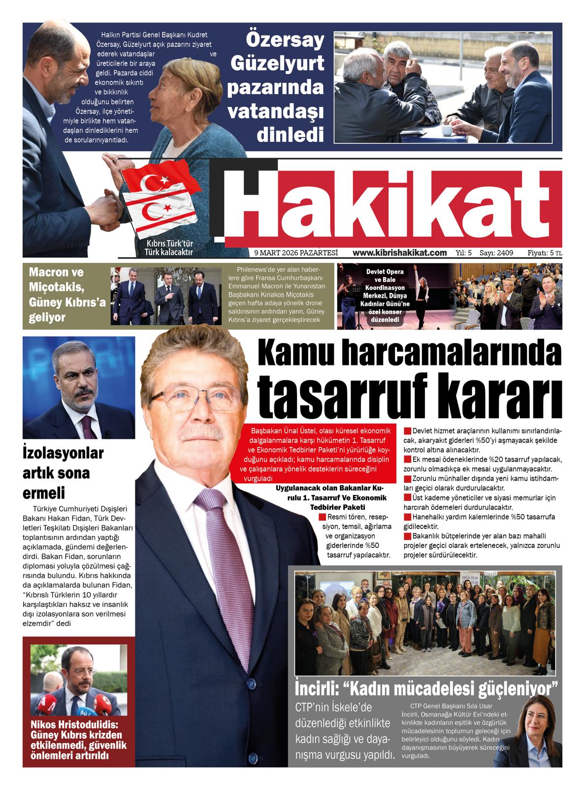 KıbrısSporTürkiyeGAZETE MANŞETLERİ (9 MART 2026)Mart 9, 2026 8:50 am Paylaş İlgili haberler TACİZ İDDİASI İLE TUTUKLANAN B.M. ALEYHİNDEKİ TUTUKLULUK UZATILDI Mart 9, 2026 BAHİS ŞEBEKESİNE POLİS DARBESİ Mart 9, 2026 MECLİS’TE TASARRUF TEDBİRLERİ TARTIŞMASI… Mart 9, 2026 Cevap bırakın Yanıtı iptal etE-posta adresiniz yayınlanmayacak. Gerekli alanlar * ile işaretlenmişlerdirYorumAd * E-posta * İnternet sitesi Daha sonraki yorumlarımda kullanılması için adım, e-posta adresim ve site adresim bu tarayıcıya kaydedilsin.