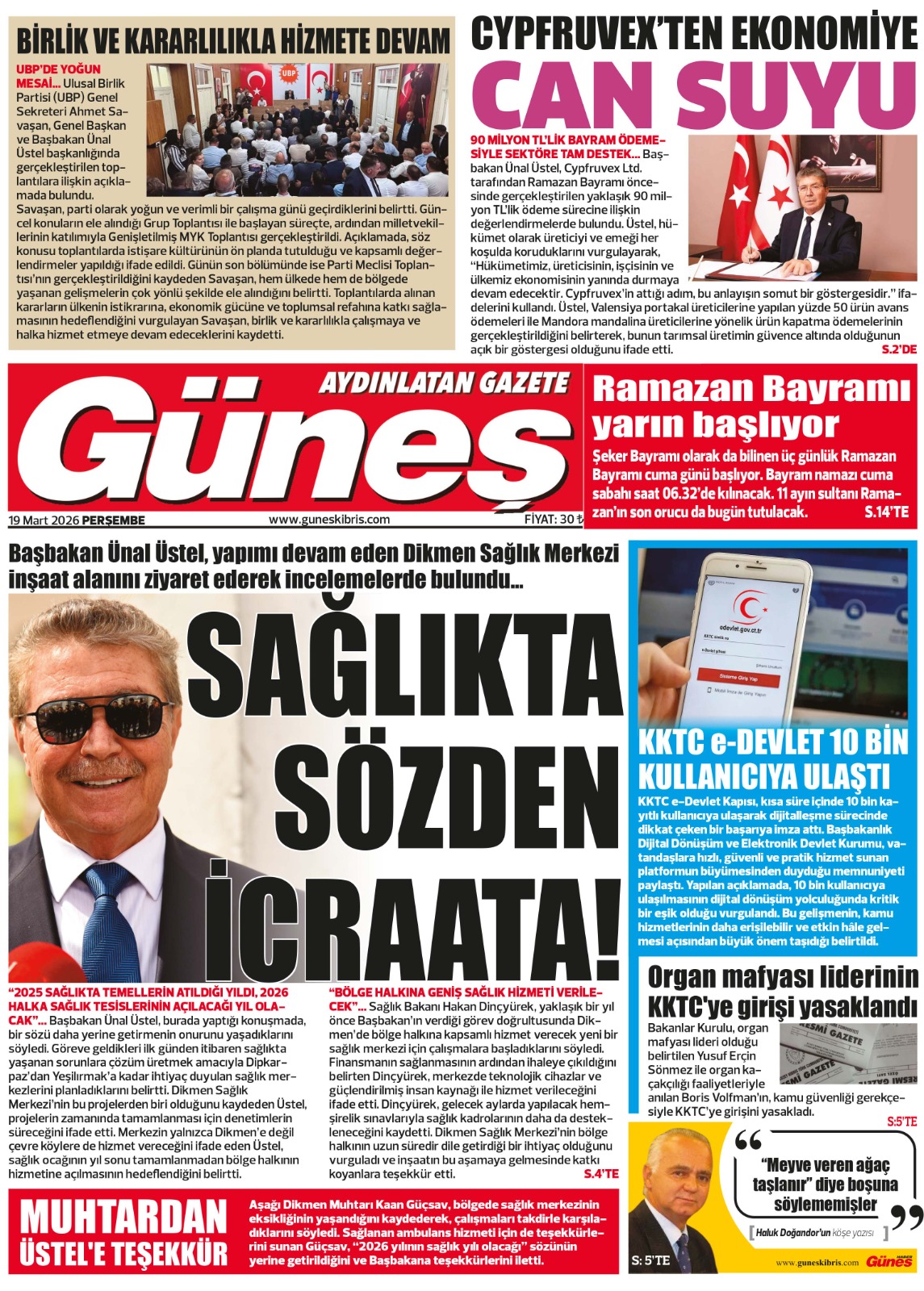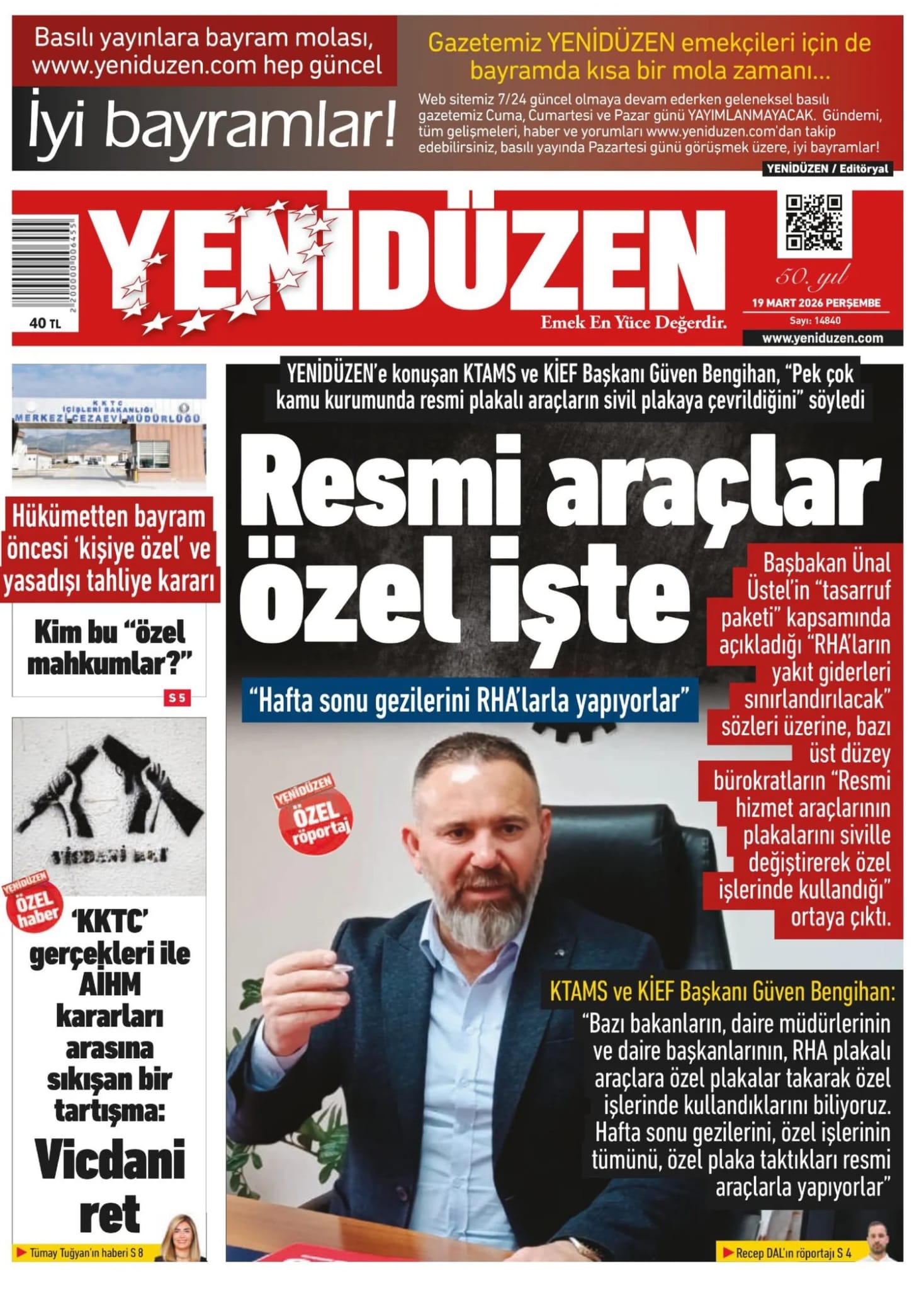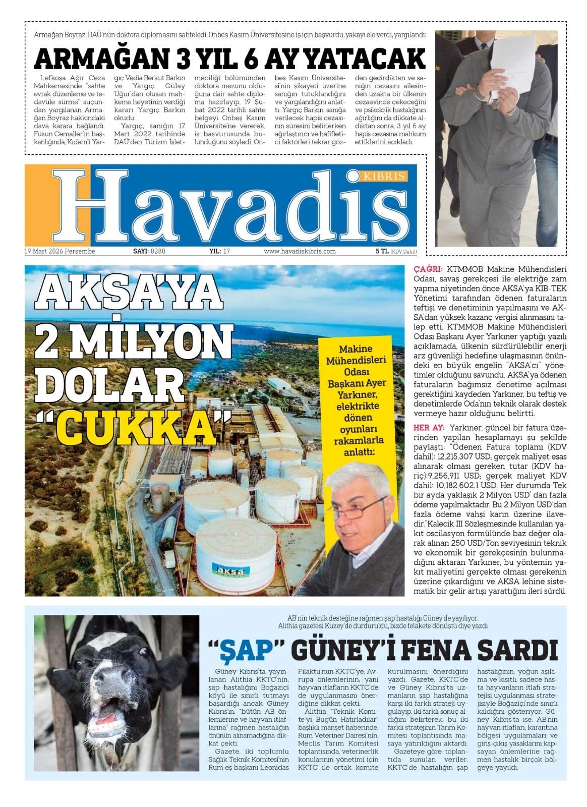 KıbrısManşetTürkiye19 MART GAZETE MANŞETLERİMart 19, 2026 9:05 am PaylaşEtiketlendi:19 MART GAZETE MANŞETLERİ İlgili haberler İŞLETME SAHİBİ TRAJE ULUEL KONCAOĞLU’NDAN AÇIKLAMA Mart 23, 2026 KAZADA YARALANMIŞTI 13 GÜN DİRENDİ, YAŞAM SAVAŞINI KAYBETTİ Mart 23, 2026 ATAHAN AKÇAM'DAN GURULANDIRAN BAŞARI Mart 23, 2026 Cevap bırakın Yanıtı iptal etE-posta adresiniz yayınlanmayacak. Gerekli alanlar * ile işaretlenmişlerdirYorumAd * E-posta * İnternet sitesi Daha sonraki yorumlarımda kullanılması için adım, e-posta adresim ve site adresim bu tarayıcıya kaydedilsin.