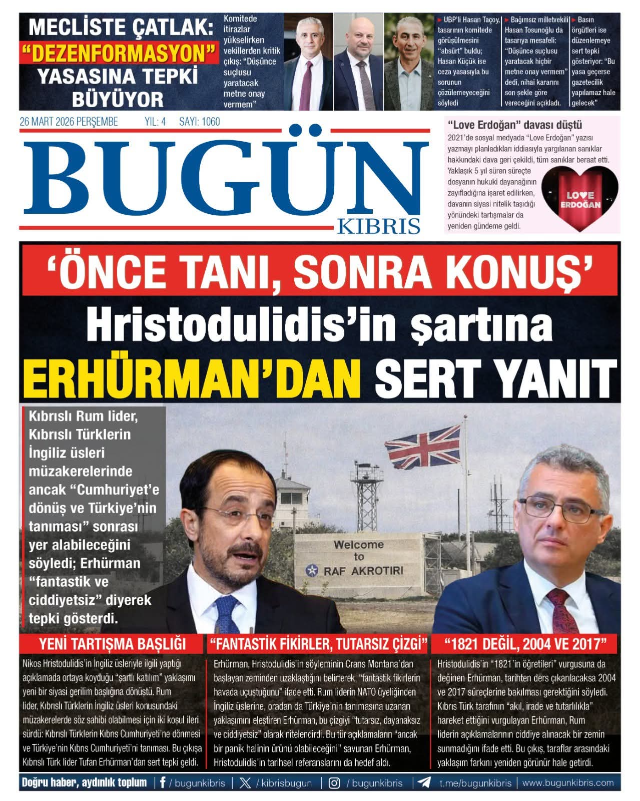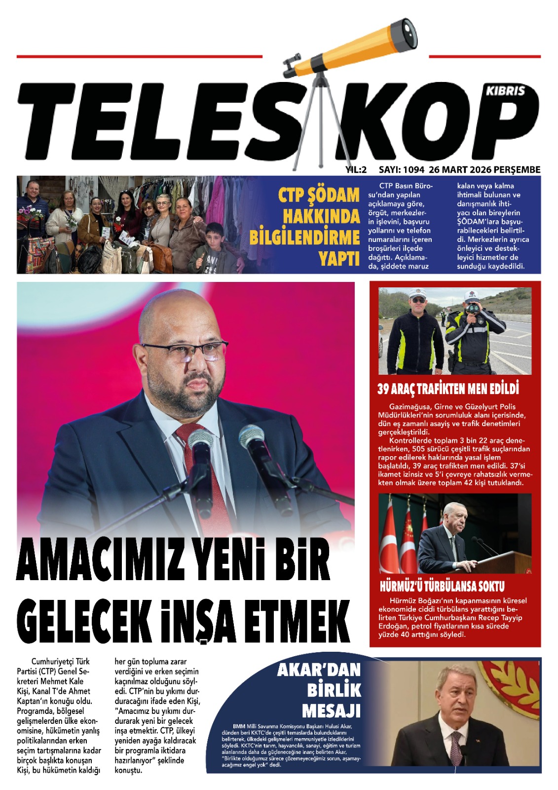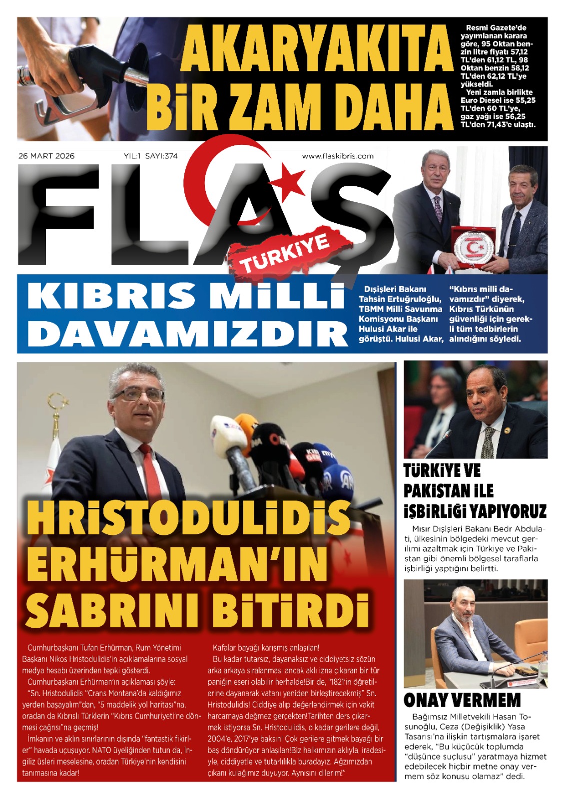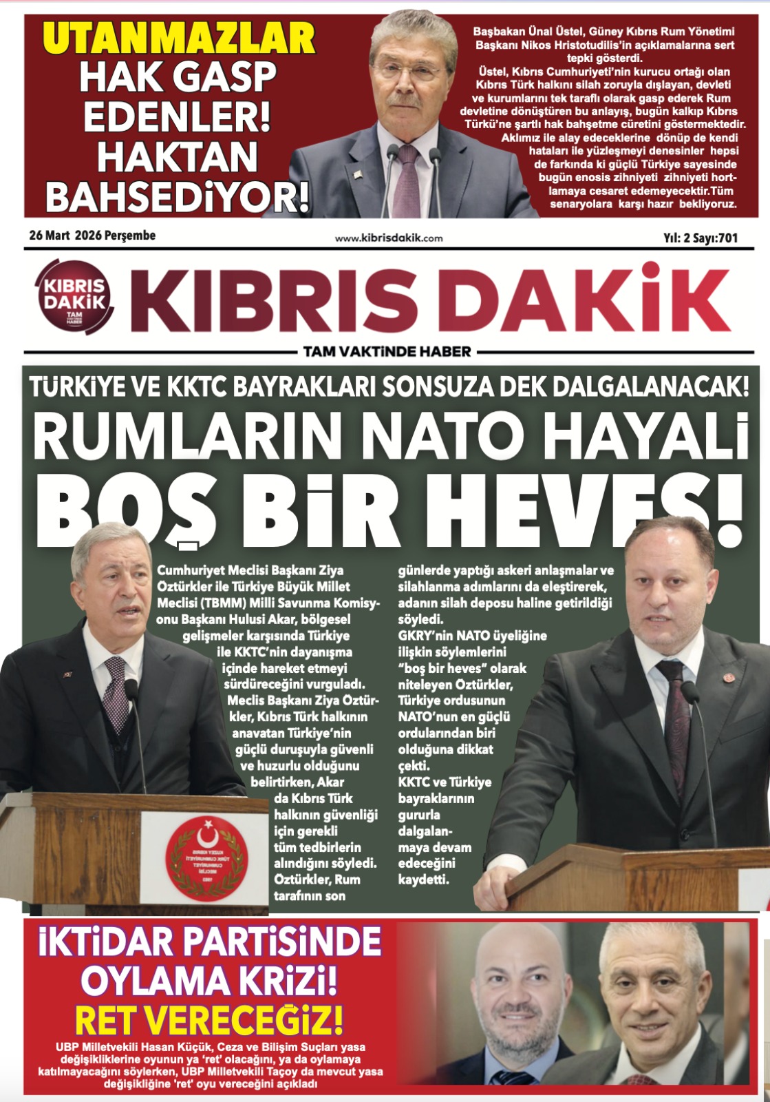 KıbrısTürkiyeGAZETE MANŞETLERİ (26 MART 2026)Mart 26, 2026 7:54 am PaylaşEtiketlendi:Kibrisdakik.com KKTC Gazete Manşetleri 5 Kasım 2025 İlgili haberler KAYIP DEDİĞİ ÇEK İÇİN HIRSIZLIK İDDİASINDA BULUNDU: MAHKEMELİK OL ... Mart 26, 2026 ÖZERDAĞ: GÜRLER’İN HİZMETLERİ TAKDİRLE ANILACAK Mart 26, 2026 CUMHURBAŞKANI ERHÜRMAN, KTFF BAŞKANI VE YÖNETİM KURULU ÜYELERİNİ ... Mart 26, 2026 Cevap bırakın Yanıtı iptal etE-posta adresiniz yayınlanmayacak. Gerekli alanlar * ile işaretlenmişlerdirYorumAd * E-posta * İnternet sitesi Daha sonraki yorumlarımda kullanılması için adım, e-posta adresim ve site adresim bu tarayıcıya kaydedilsin.