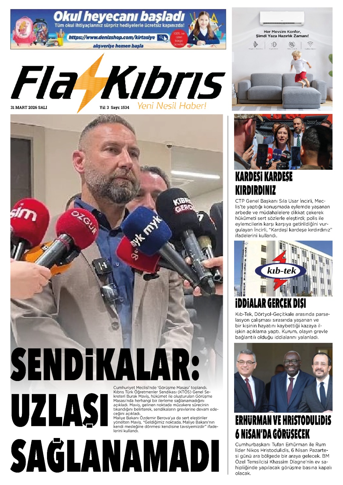 KKTC GazeteleriManşetGAZETE MANŞETLERİ (31 MART 2026)Mart 31, 2026 8:21 am PaylaşEtiketlendi:Kibris dakik KKTC gazeteleri manşetleri Cevap bırakın Yanıtı iptal etE-posta adresiniz yayınlanmayacak. Gerekli alanlar * ile işaretlenmişlerdirYorumAd * E-posta * İnternet sitesi Daha sonraki yorumlarımda kullanılması için adım, e-posta adresim ve site adresim bu tarayıcıya kaydedilsin.