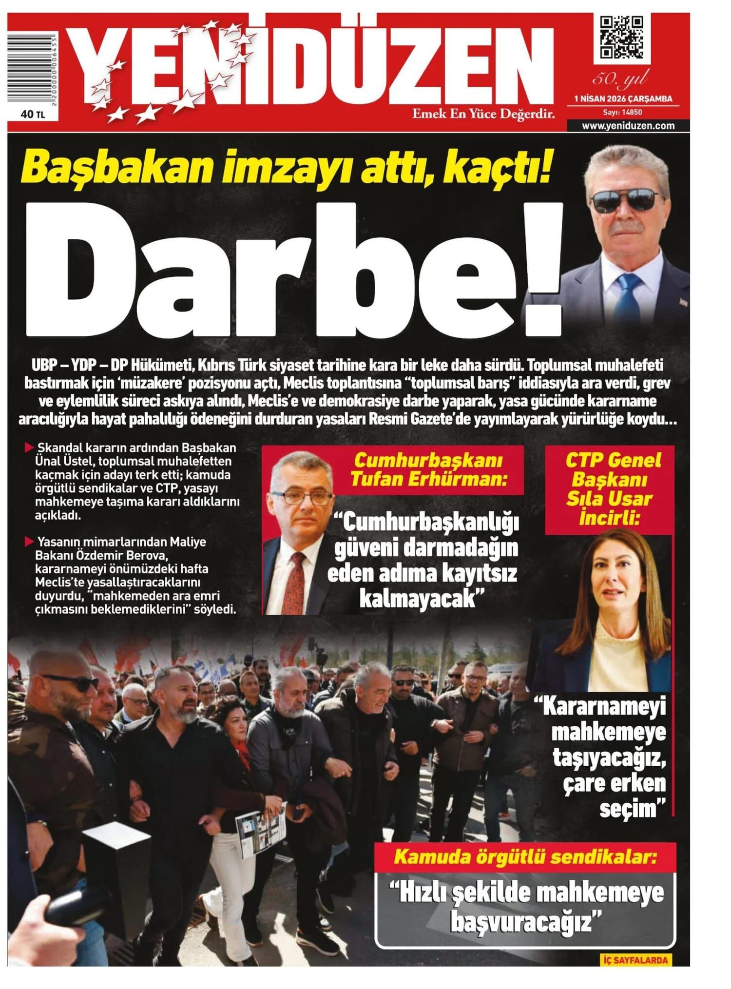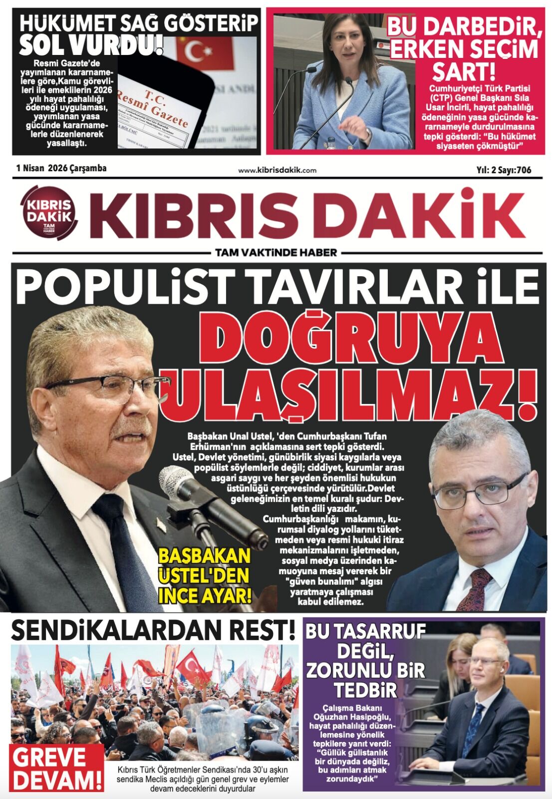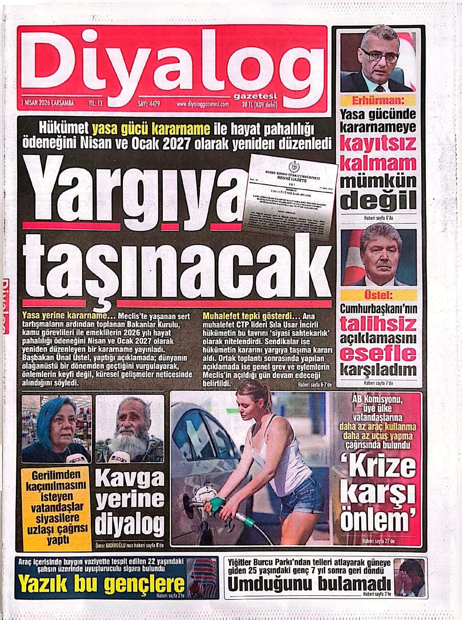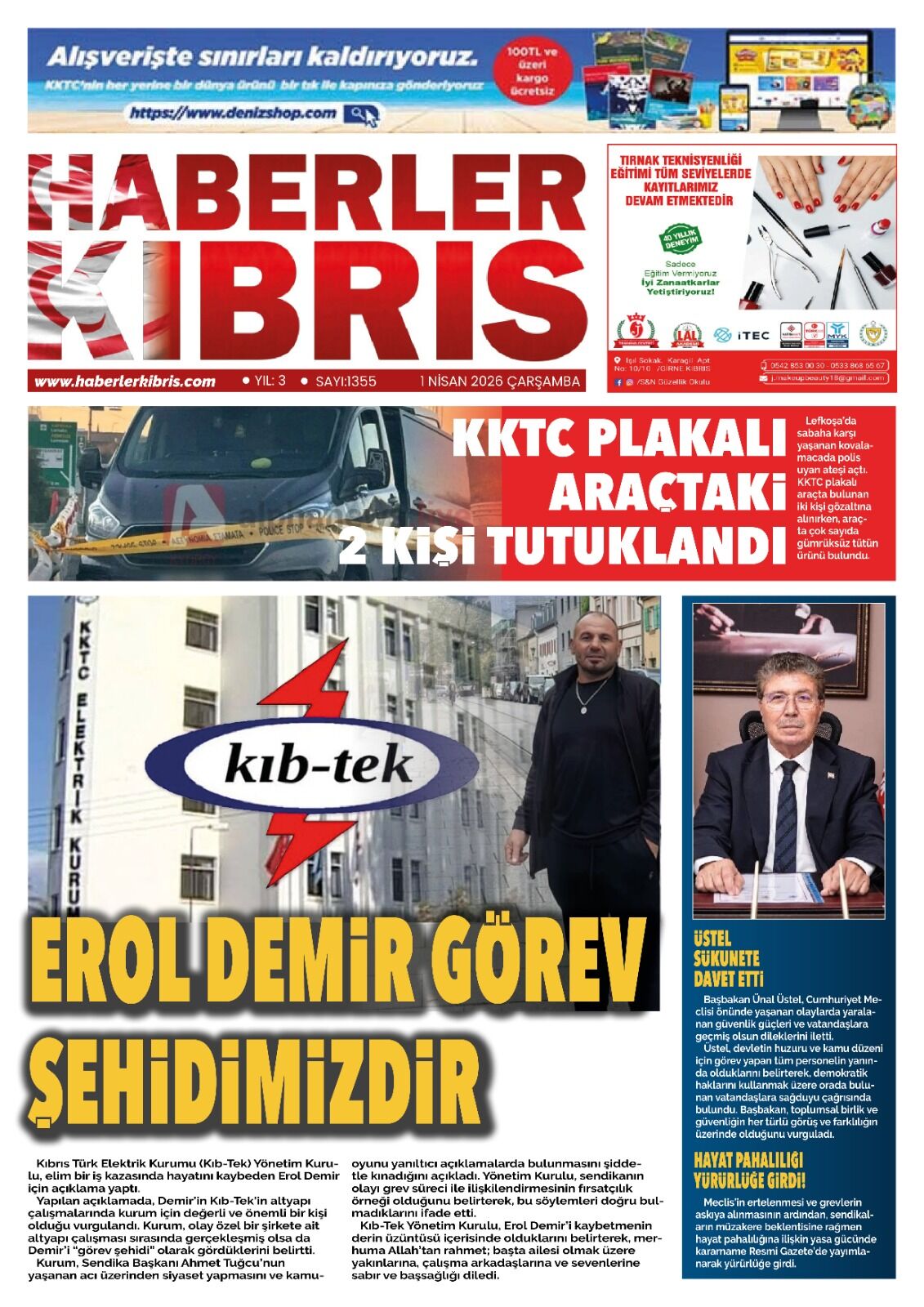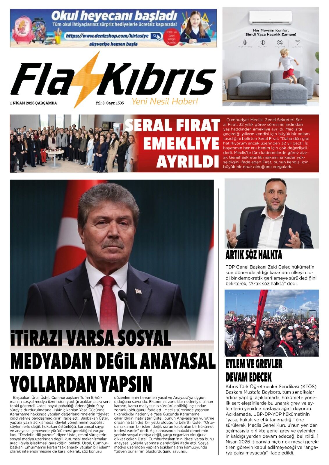 KıbrısKKTC GazeteleriGAZETE MANŞETLERİ (1 NİSAN 2026)Nisan 1, 2026 8:18 am PaylaşEtiketlendi:Kibris dakik KKTC gazeteleri manşetleri İlgili haberler BUGÜN HAVA NASIL OLACAK? (1 NİSAN 2026) Nisan 1, 2026 DÖVİZ KURLARI (01 NİSAN 2026) Nisan 1, 2026 SAVAŞAN: “SORUMLULUKTAN KAÇAN YÖNETEMEZ” Nisan 1, 2026 Cevap bırakın Yanıtı iptal etE-posta adresiniz yayınlanmayacak. Gerekli alanlar * ile işaretlenmişlerdirYorumAd * E-posta * İnternet sitesi Daha sonraki yorumlarımda kullanılması için adım, e-posta adresim ve site adresim bu tarayıcıya kaydedilsin.