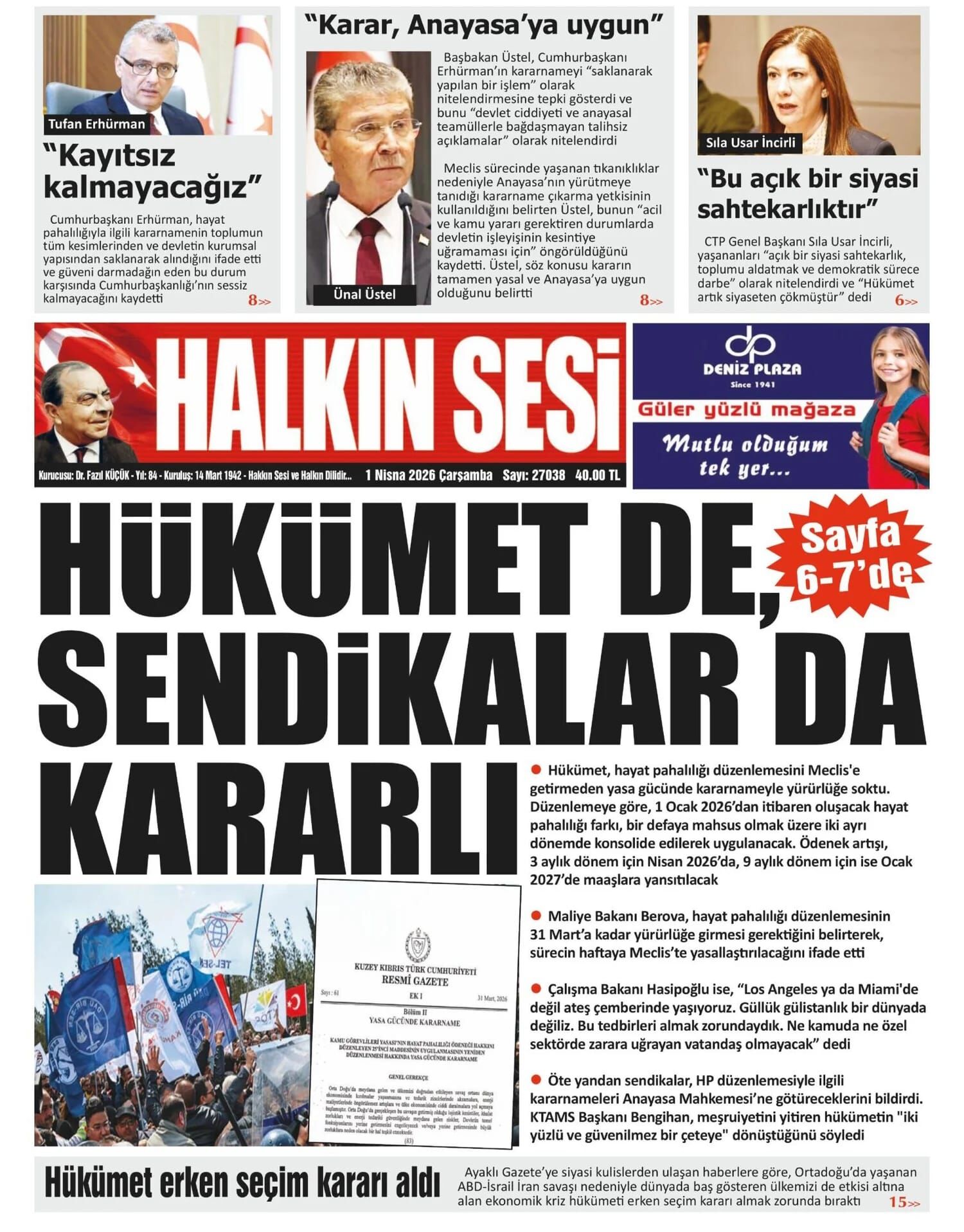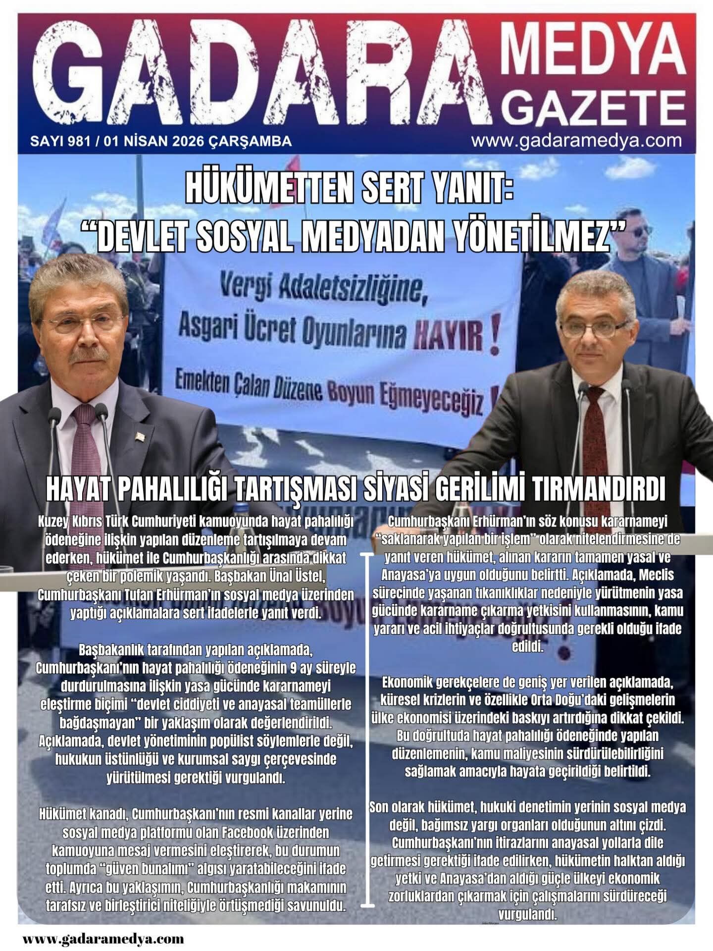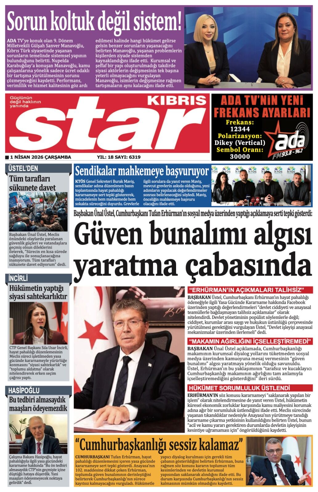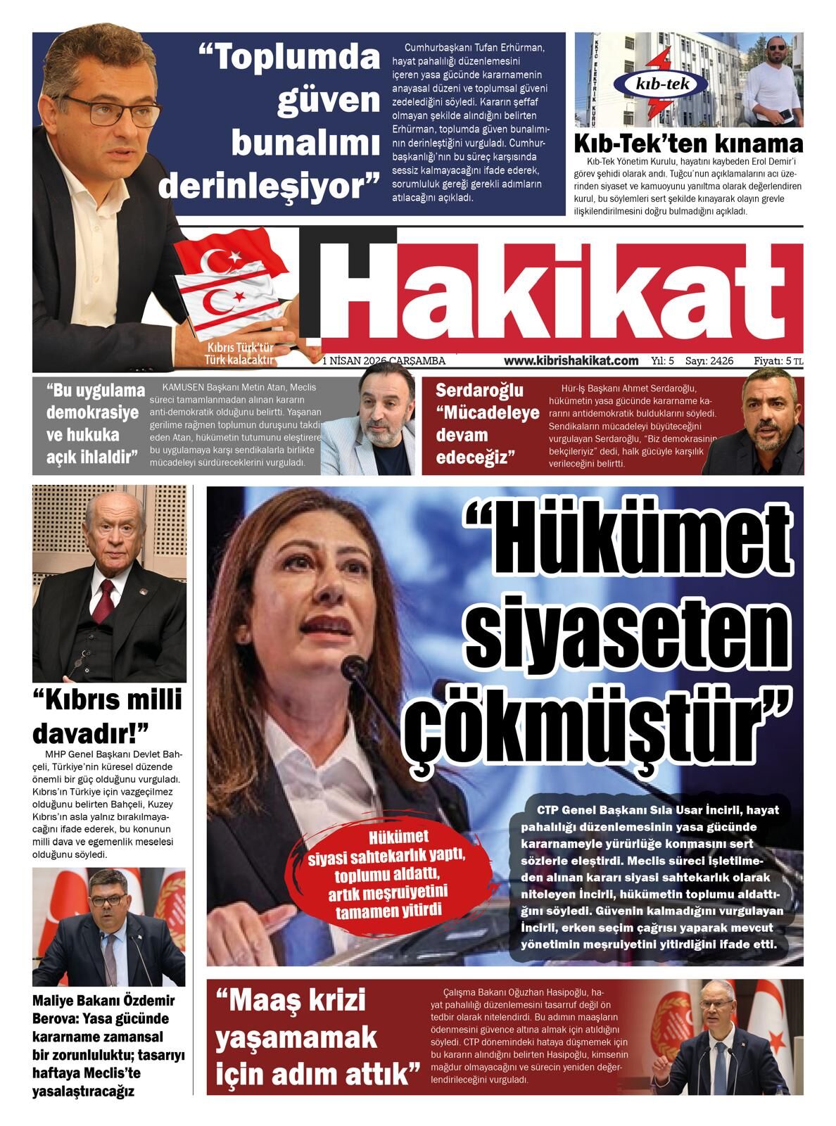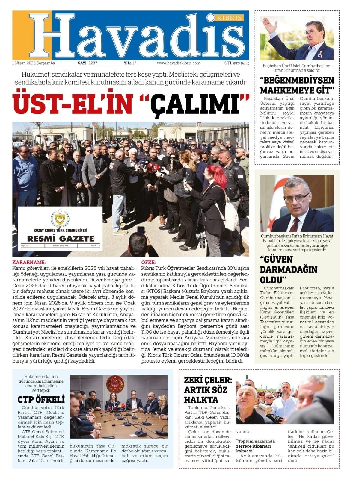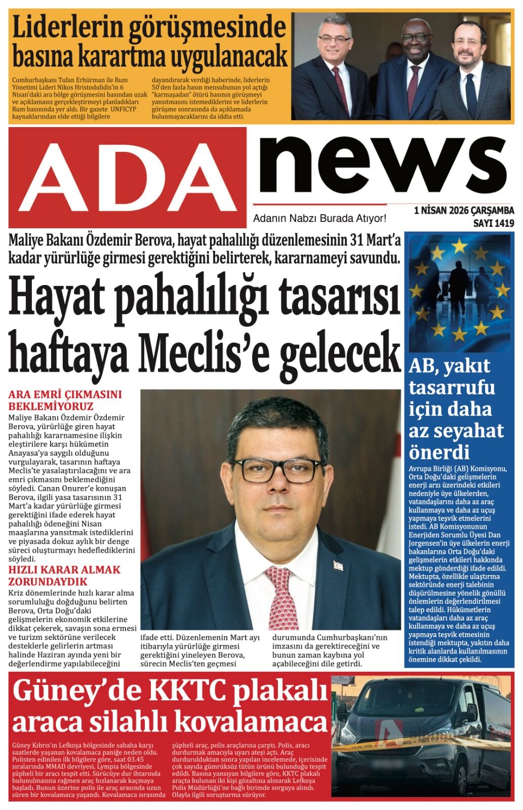 KıbrısKKTC GazeteleriGAZETE MANŞETLERİ (1 NİSAN 2026)Nisan 1, 2026 8:18 am PaylaşEtiketlendi:Kibris dakik KKTC gazeteleri manşetleri İlgili haberler BUGÜN HAVA NASIL OLACAK? (1 NİSAN 2026) Nisan 1, 2026 DÖVİZ KURLARI (01 NİSAN 2026) Nisan 1, 2026 SAVAŞAN: “SORUMLULUKTAN KAÇAN YÖNETEMEZ” Nisan 1, 2026 Cevap bırakın Yanıtı iptal etE-posta adresiniz yayınlanmayacak. Gerekli alanlar * ile işaretlenmişlerdirYorumAd * E-posta * İnternet sitesi Daha sonraki yorumlarımda kullanılması için adım, e-posta adresim ve site adresim bu tarayıcıya kaydedilsin.