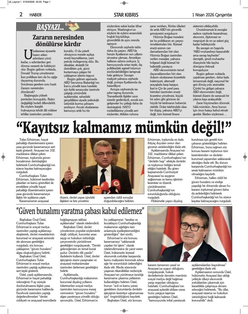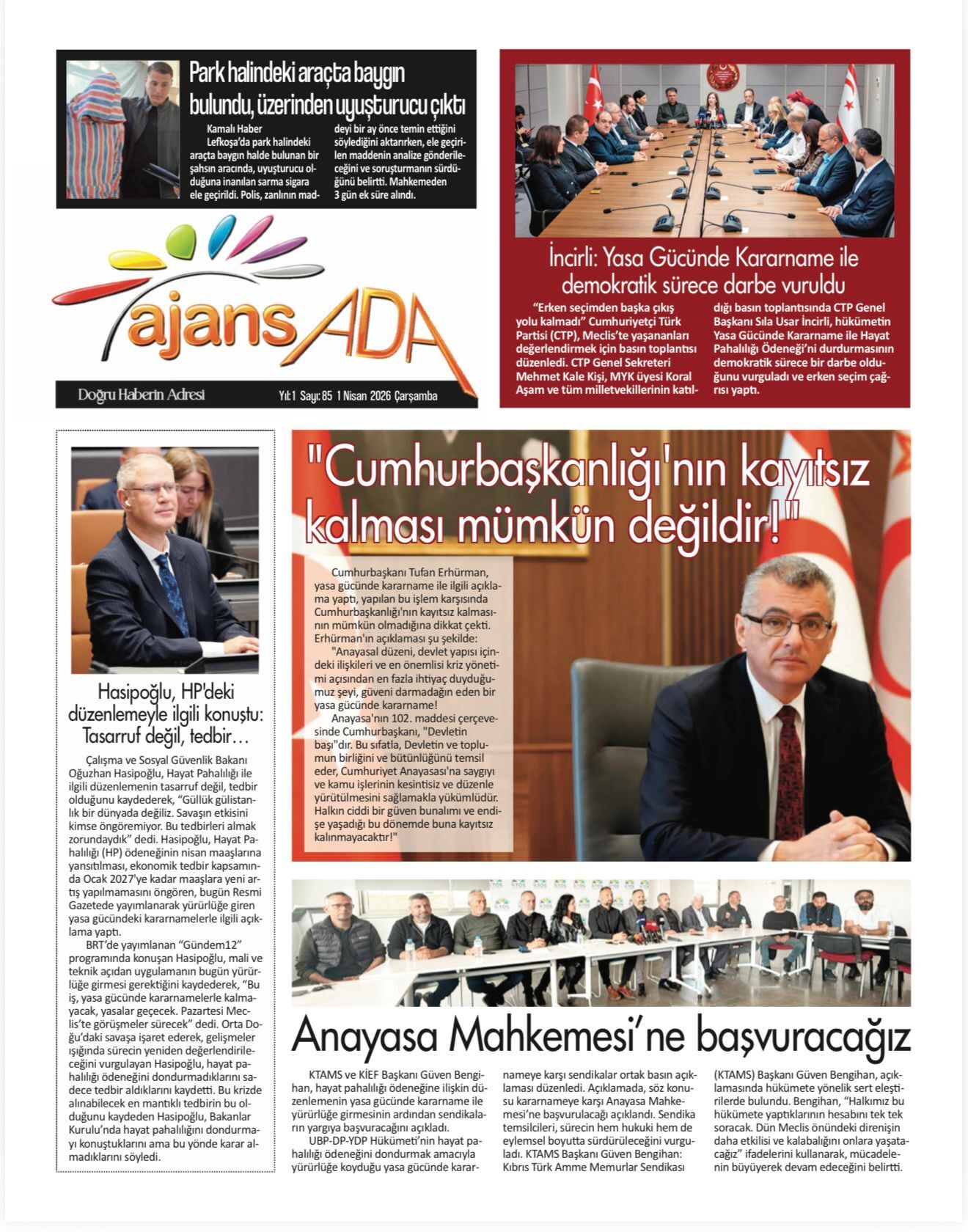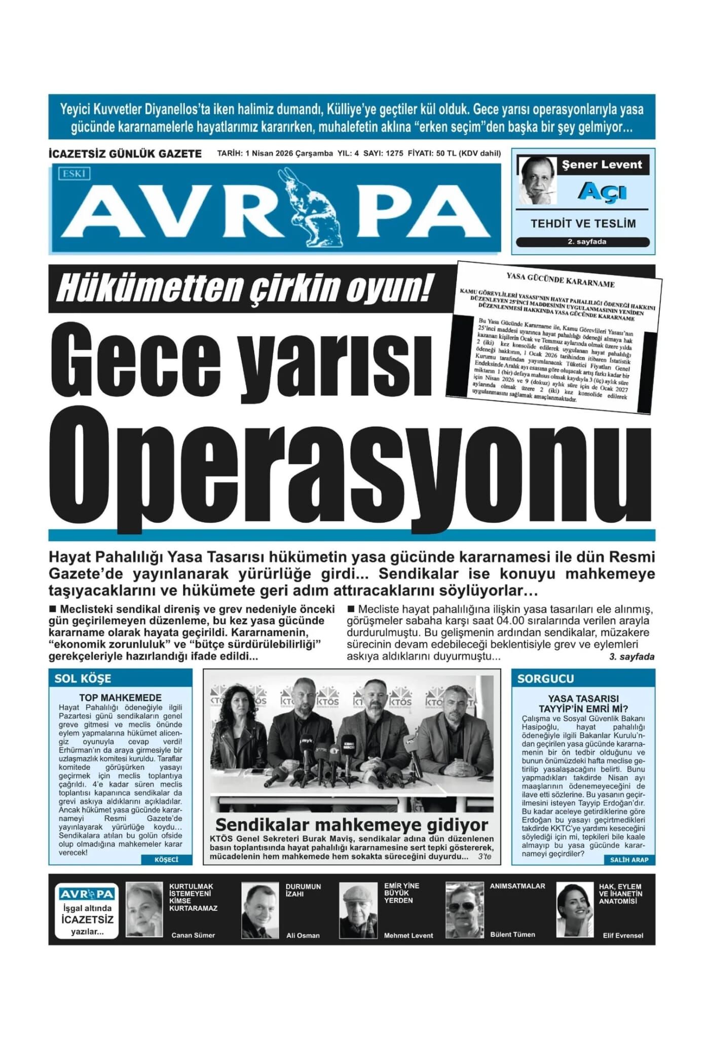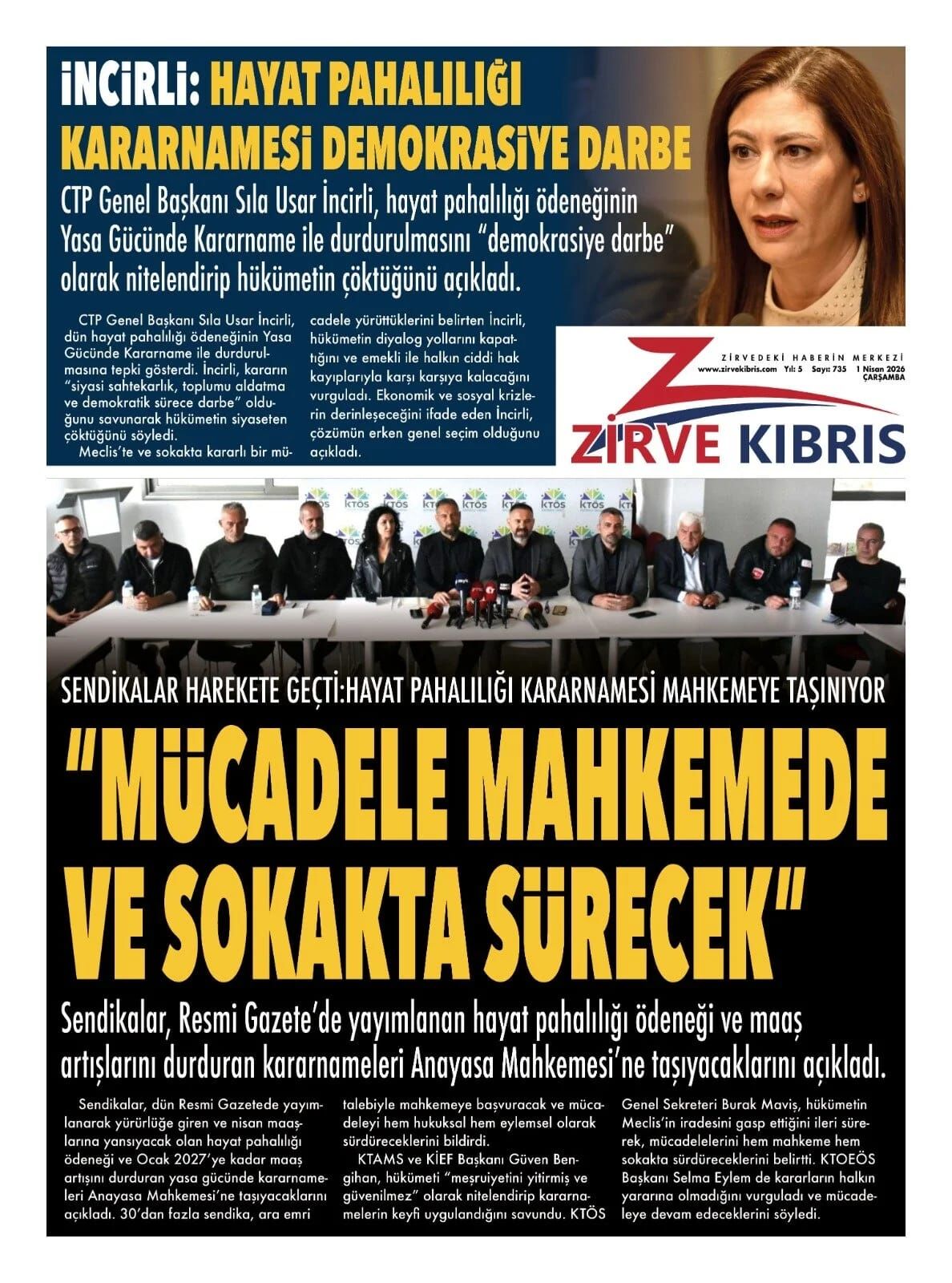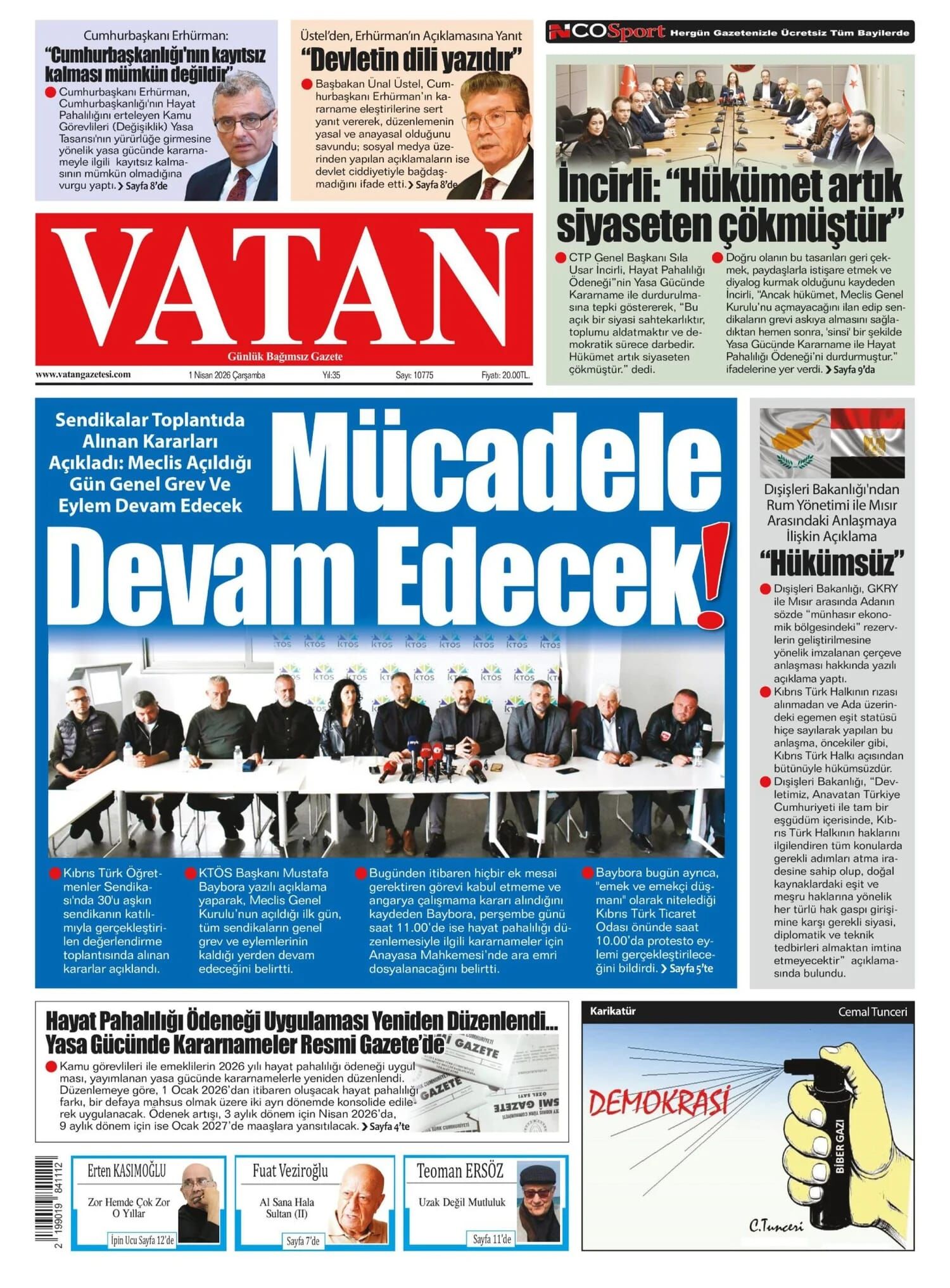 KıbrısKKTC GazeteleriGAZETE MANŞETLERİ (1 NİSAN 2026)Nisan 1, 2026 8:18 am PaylaşEtiketlendi:Kibris dakik KKTC gazeteleri manşetleri İlgili haberler BUGÜN HAVA NASIL OLACAK? (1 NİSAN 2026) Nisan 1, 2026 DÖVİZ KURLARI (01 NİSAN 2026) Nisan 1, 2026 SAVAŞAN: “SORUMLULUKTAN KAÇAN YÖNETEMEZ” Nisan 1, 2026 Cevap bırakın Yanıtı iptal etE-posta adresiniz yayınlanmayacak. Gerekli alanlar * ile işaretlenmişlerdirYorumAd * E-posta * İnternet sitesi Daha sonraki yorumlarımda kullanılması için adım, e-posta adresim ve site adresim bu tarayıcıya kaydedilsin.