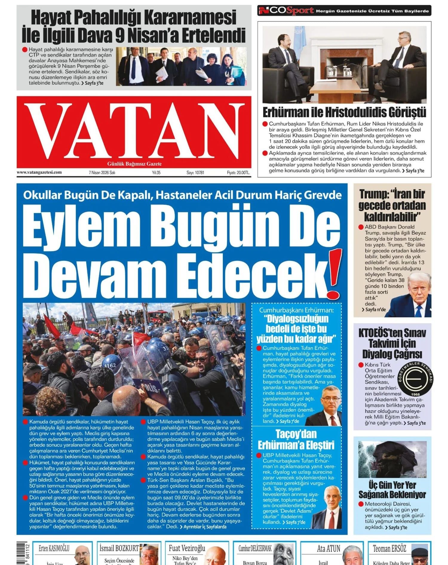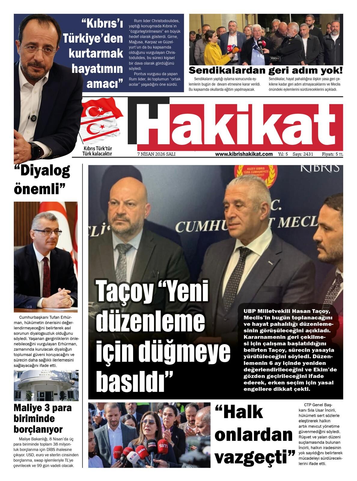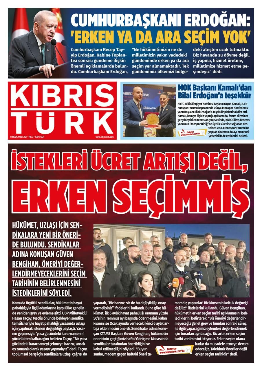 KıbrısKKTC GazeteleriTürkiyeGAZETE MANŞETLERİ (7 NİSAN 2026)Nisan 7, 2026 8:22 am PaylaşEtiketlendi:Kibrisdakik.com KKTC Gazete Manşetleri 5 Kasım 2025 İlgili haberler PETROL FİYATLARI İRAN GERİLİMİYLE YÜKSELİŞTE Nisan 7, 2026 DÖVİZ KURLARI (07 NİSAN 2026) Nisan 7, 2026 CUMHURBAŞKANI TUFAN ERHÜRMAN İLE RUM LİDER NİKOS HRİSTODULİDİS GÖ ... Nisan 6, 2026 Cevap bırakın Yanıtı iptal etE-posta adresiniz yayınlanmayacak. Gerekli alanlar * ile işaretlenmişlerdirYorumAd * E-posta * İnternet sitesi Daha sonraki yorumlarımda kullanılması için adım, e-posta adresim ve site adresim bu tarayıcıya kaydedilsin.