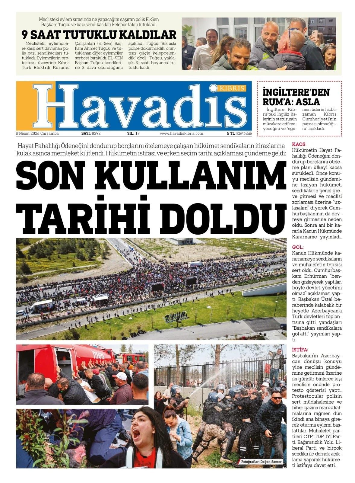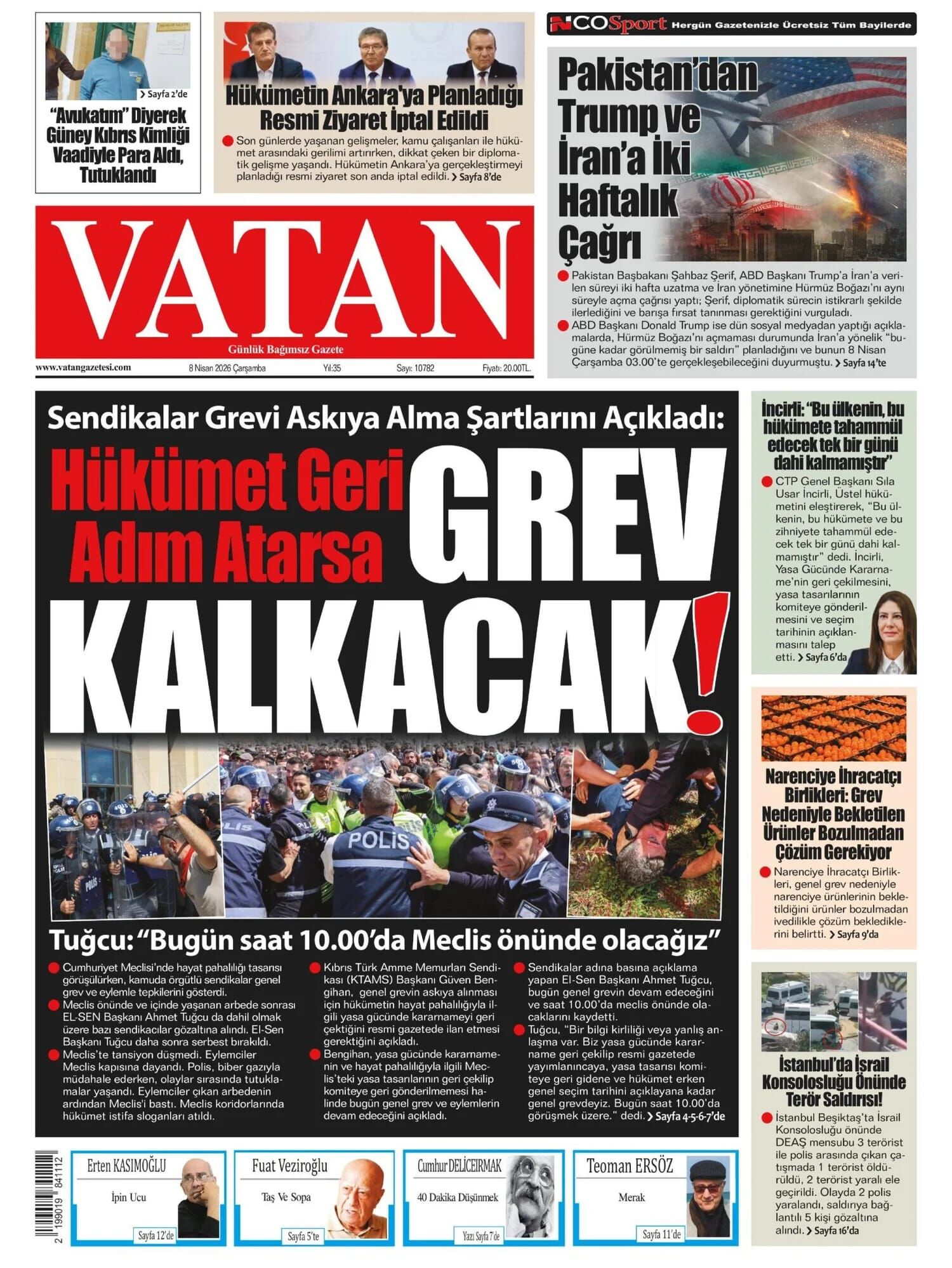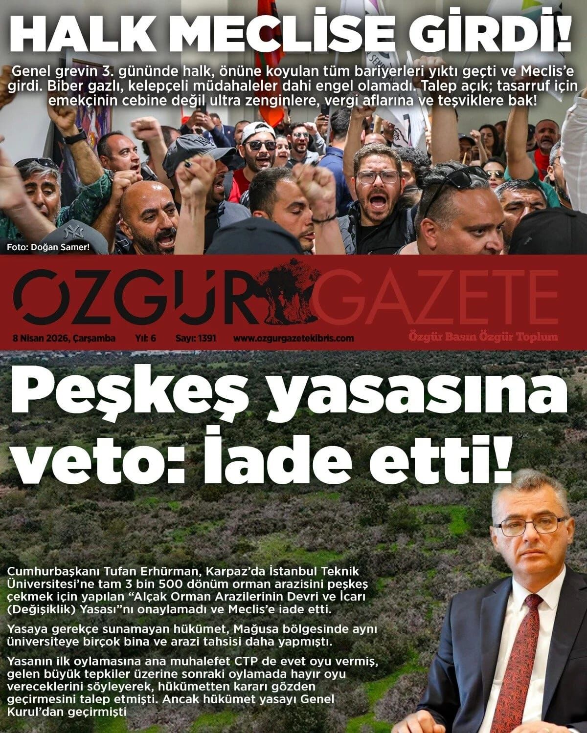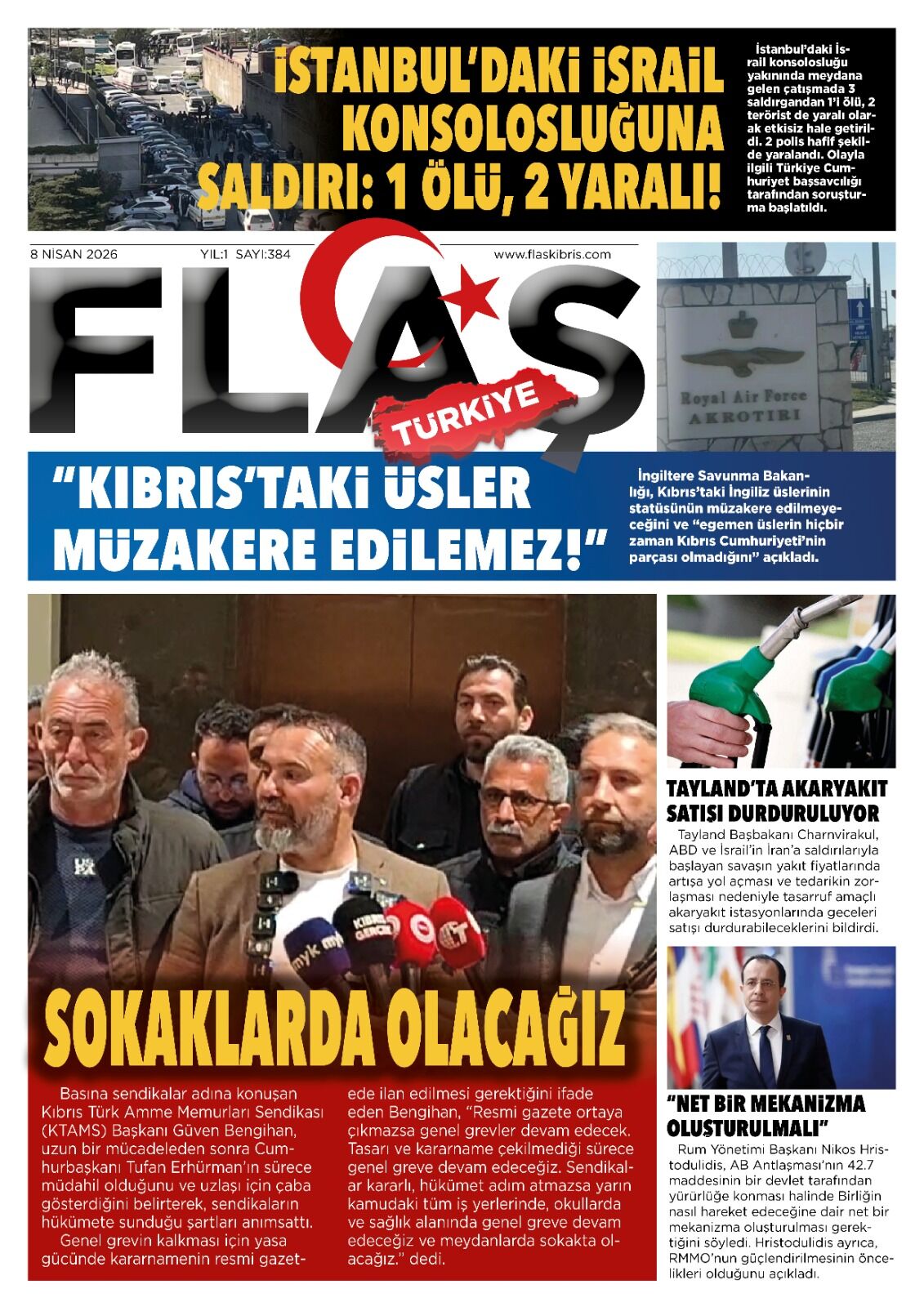 KıbrısGAZETE MANŞETLERİ (8 NİSAN 2026)Nisan 8, 2026 8:13 am PaylaşEtiketlendi:Kibris dakik KKTC gazeteleri manşetleri İlgili haberler ST. BARNABAS’TA SU YALITIMI VE ONARIM ÇALIŞMASI YAPILACAK Nisan 8, 2026 KIBRIS GAZİSİ HASAN DEMİR SON YOLCULUĞUNA UĞURLANDI Nisan 8, 2026 MECLİS’TE KRİTİK GÜN: GENEL KURUL YENİDEN TOPLANIYOR Nisan 8, 2026 Cevap bırakın Yanıtı iptal etE-posta adresiniz yayınlanmayacak. Gerekli alanlar * ile işaretlenmişlerdirYorumAd * E-posta * İnternet sitesi Daha sonraki yorumlarımda kullanılması için adım, e-posta adresim ve site adresim bu tarayıcıya kaydedilsin.