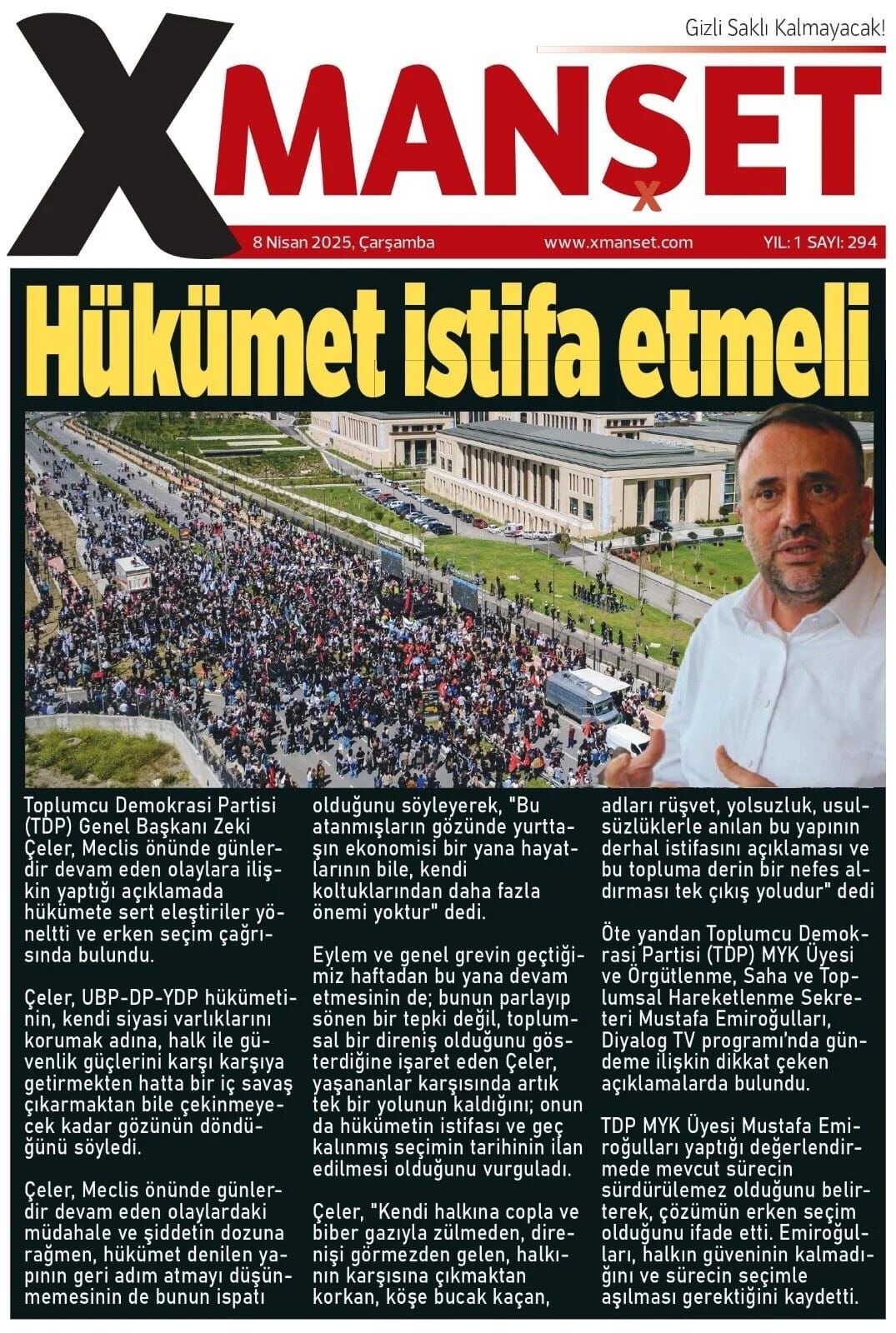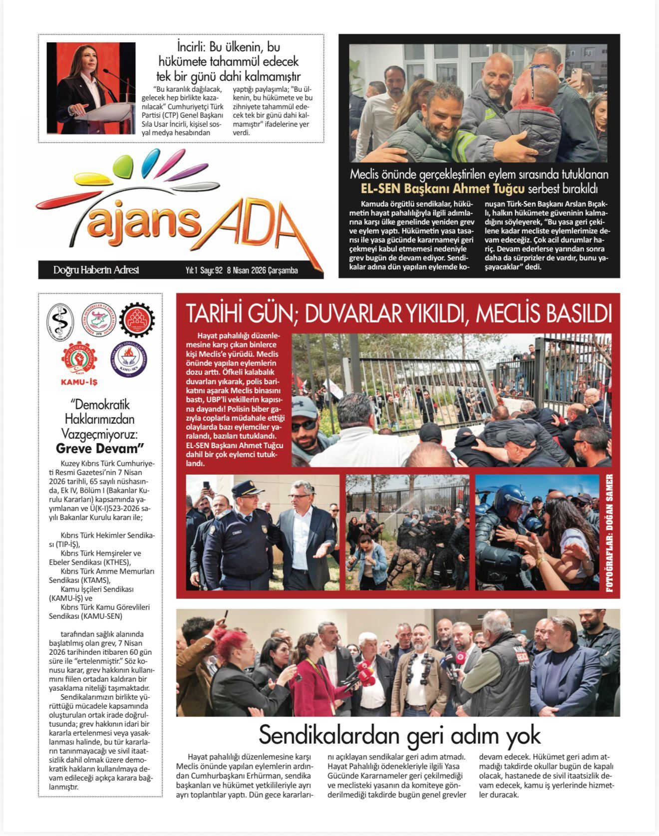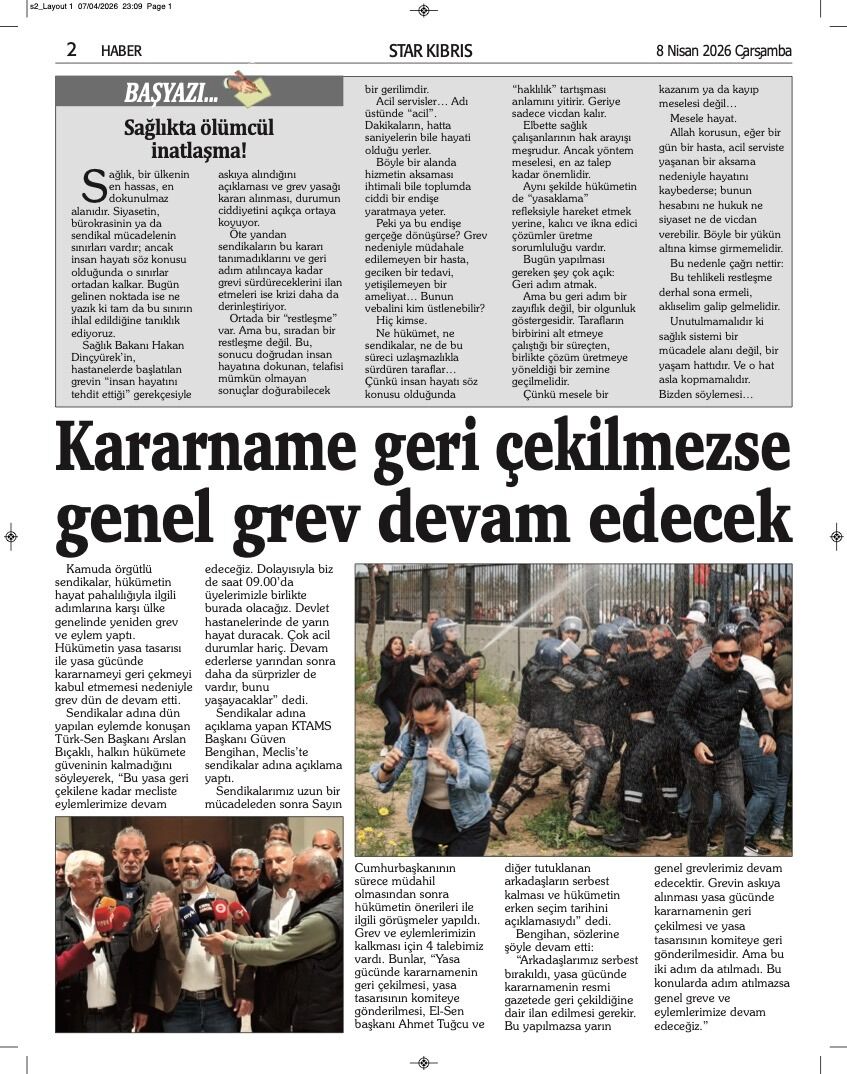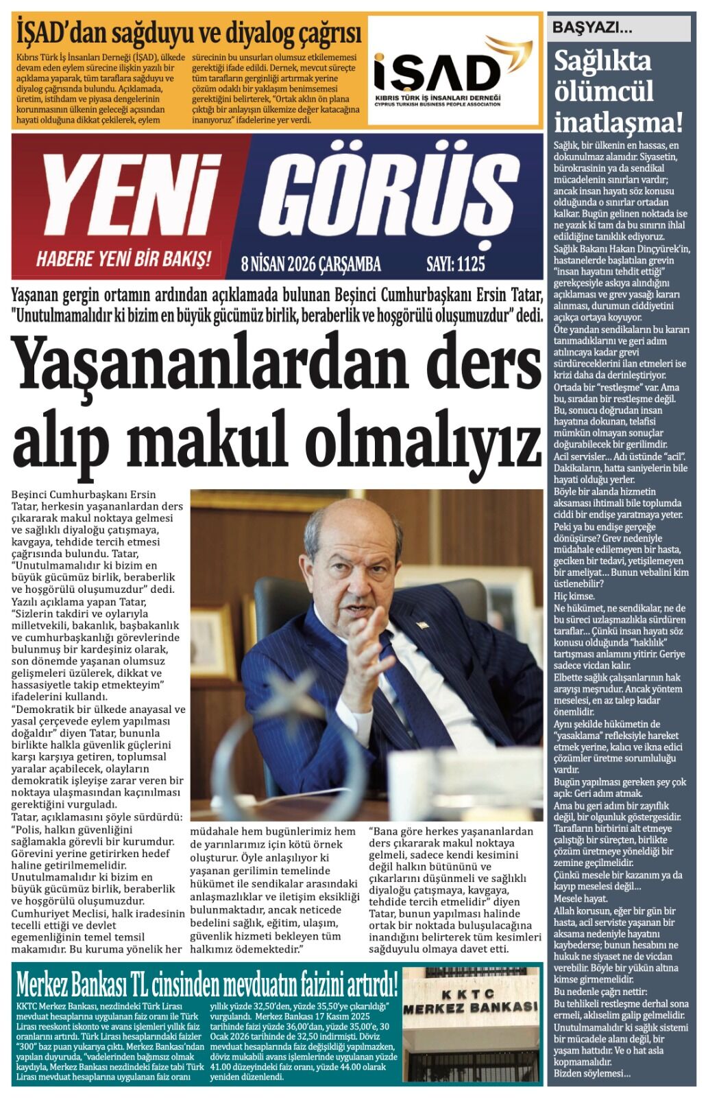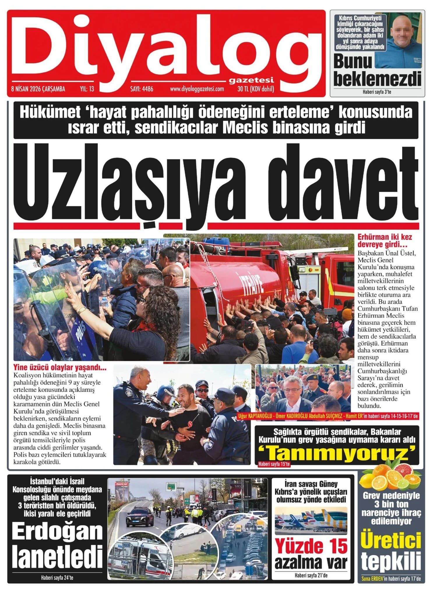 KıbrısGAZETE MANŞETLERİ (8 NİSAN 2026)Nisan 8, 2026 8:13 am PaylaşEtiketlendi:Kibris dakik KKTC gazeteleri manşetleri İlgili haberler ST. BARNABAS’TA SU YALITIMI VE ONARIM ÇALIŞMASI YAPILACAK Nisan 8, 2026 KIBRIS GAZİSİ HASAN DEMİR SON YOLCULUĞUNA UĞURLANDI Nisan 8, 2026 MECLİS’TE KRİTİK GÜN: GENEL KURUL YENİDEN TOPLANIYOR Nisan 8, 2026 Cevap bırakın Yanıtı iptal etE-posta adresiniz yayınlanmayacak. Gerekli alanlar * ile işaretlenmişlerdirYorumAd * E-posta * İnternet sitesi Daha sonraki yorumlarımda kullanılması için adım, e-posta adresim ve site adresim bu tarayıcıya kaydedilsin.