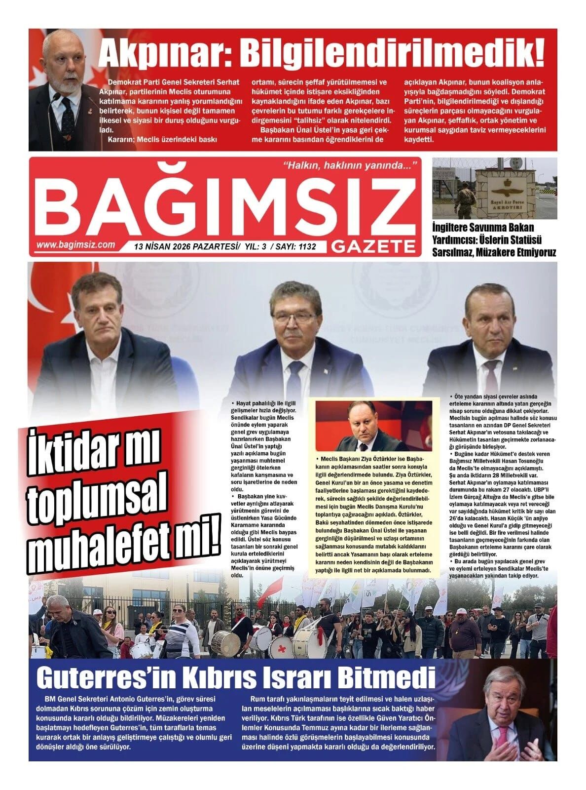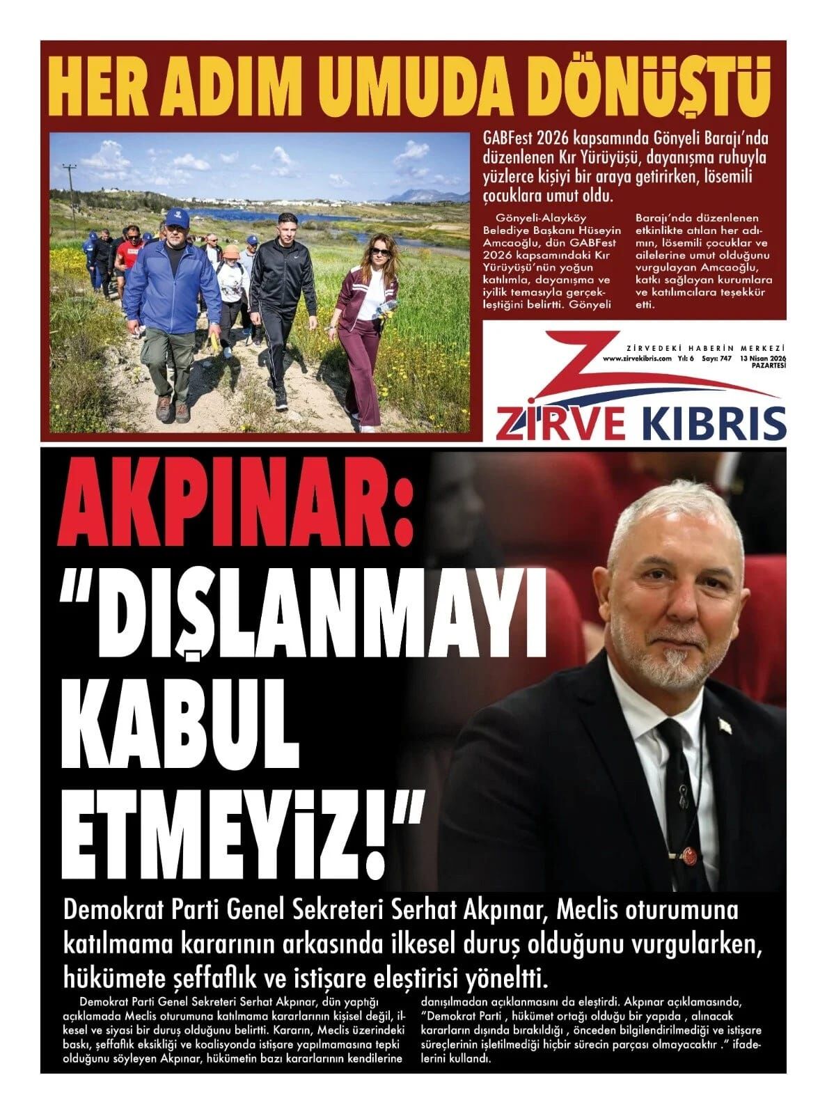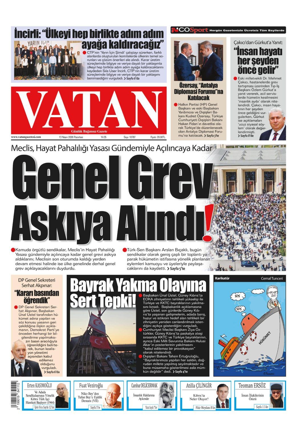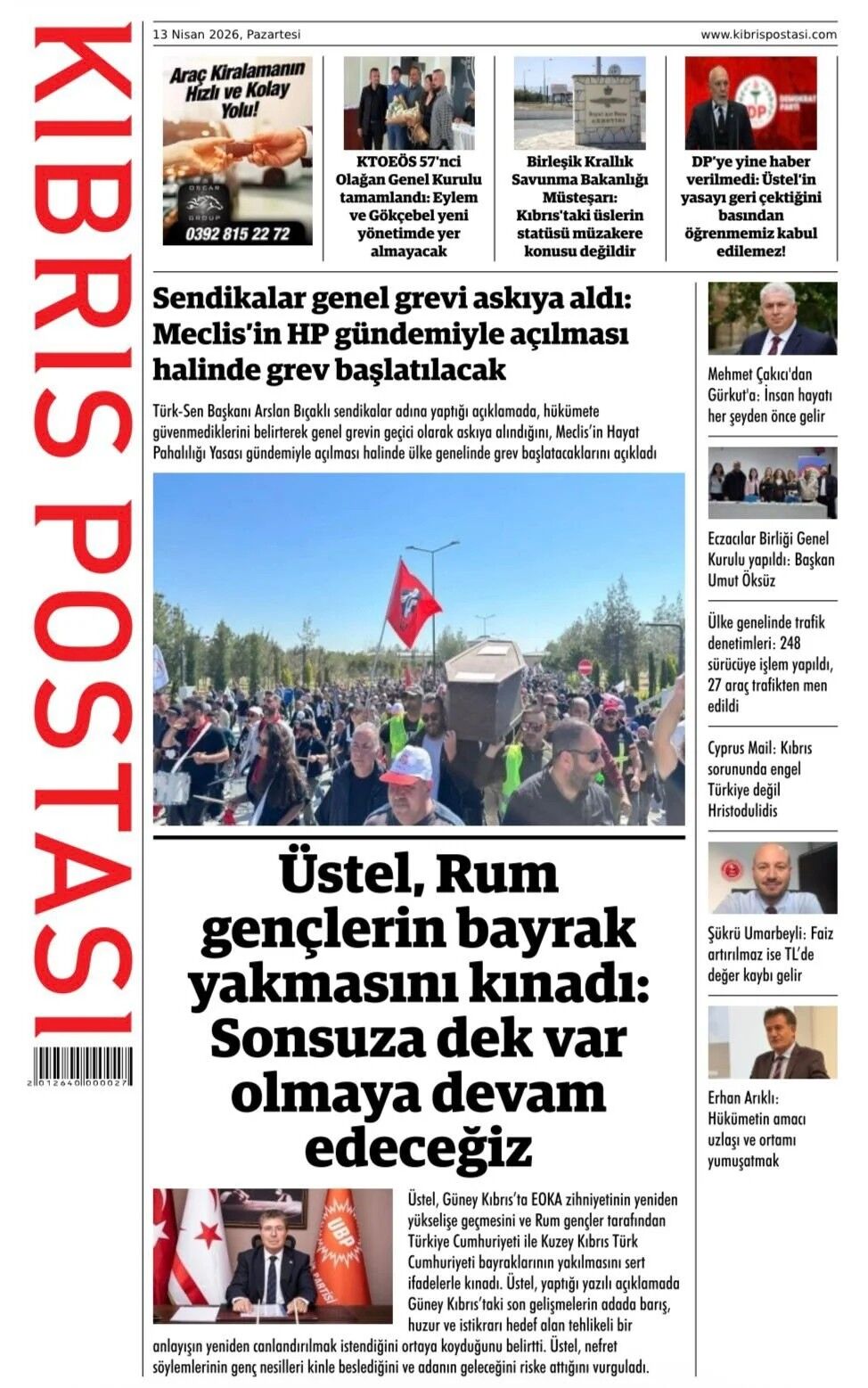 KıbrısKKTC GazeteleriTürkiyeGAZETE MANŞETLERİ (13 NİSAN 2026)Nisan 13, 2026 8:05 am PaylaşEtiketlendi:Kibris dakik KKTC gazeteleri manşetleri İlgili haberler IRAK MECLİSİ’NDE CUMHURBAŞKANI SEÇİMİ İKİNCİ TURA KALDI Nisan 11, 2026 MEDYA ETİK KURULU’NDAN YAYINLARA KINAMA Nisan 11, 2026 DAÜ GİRİŞ VE BURS SINAVI TARİHLERİ AÇIKLANDI Nisan 11, 2026 Cevap bırakın Yanıtı iptal etE-posta adresiniz yayınlanmayacak. Gerekli alanlar * ile işaretlenmişlerdirYorumAd * E-posta * İnternet sitesi Daha sonraki yorumlarımda kullanılması için adım, e-posta adresim ve site adresim bu tarayıcıya kaydedilsin.