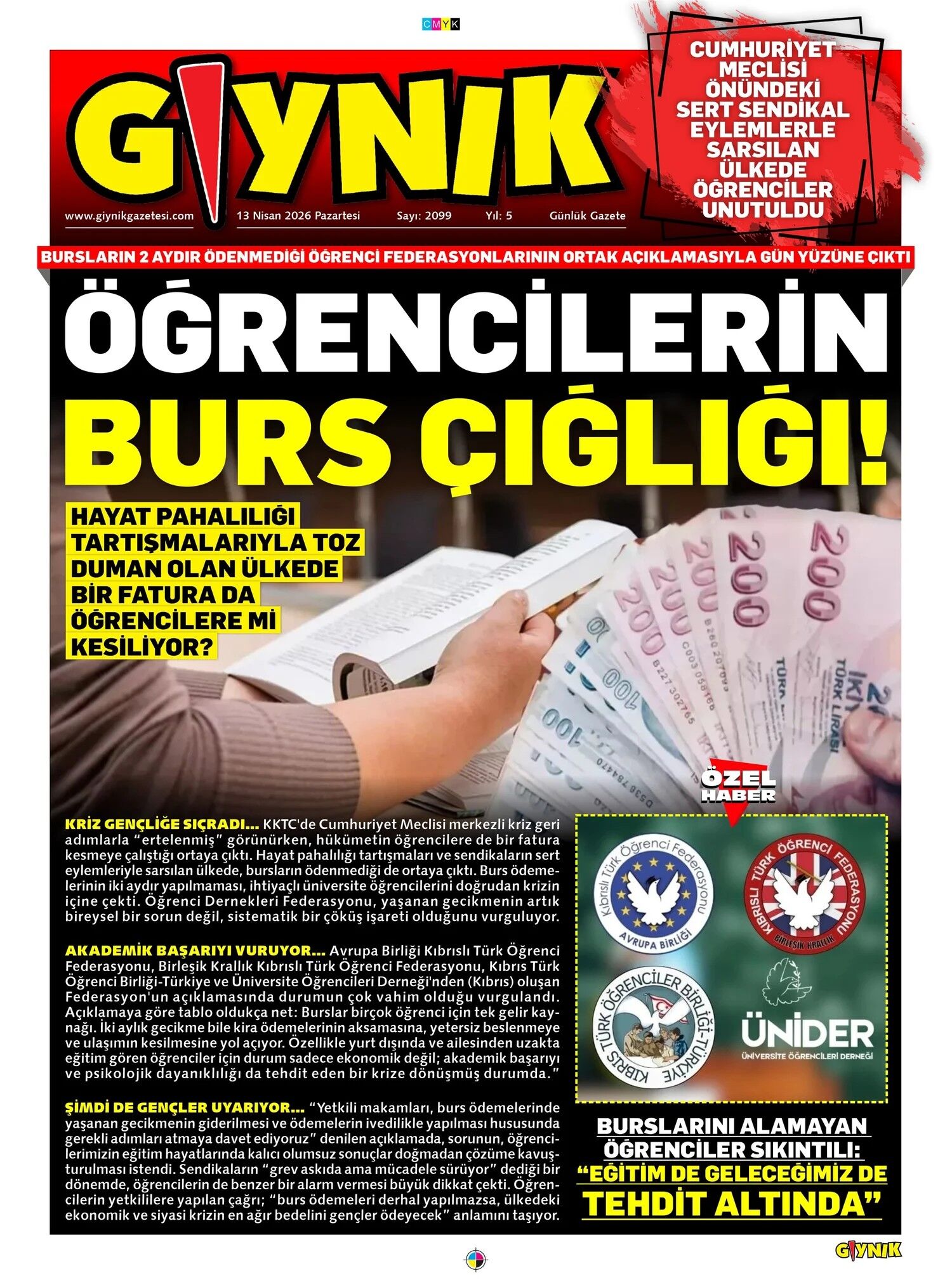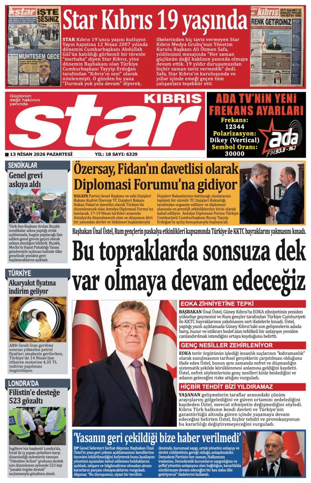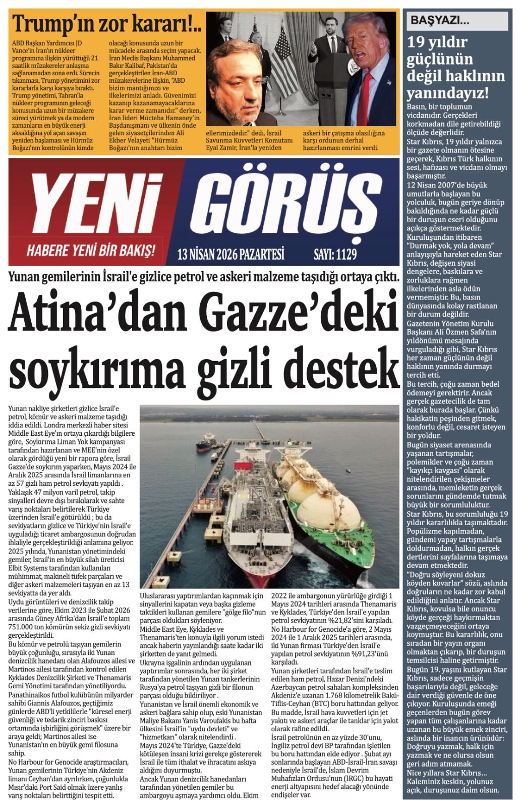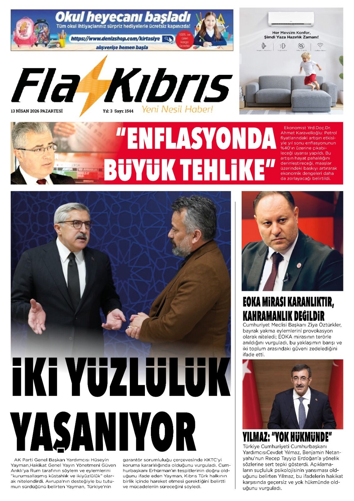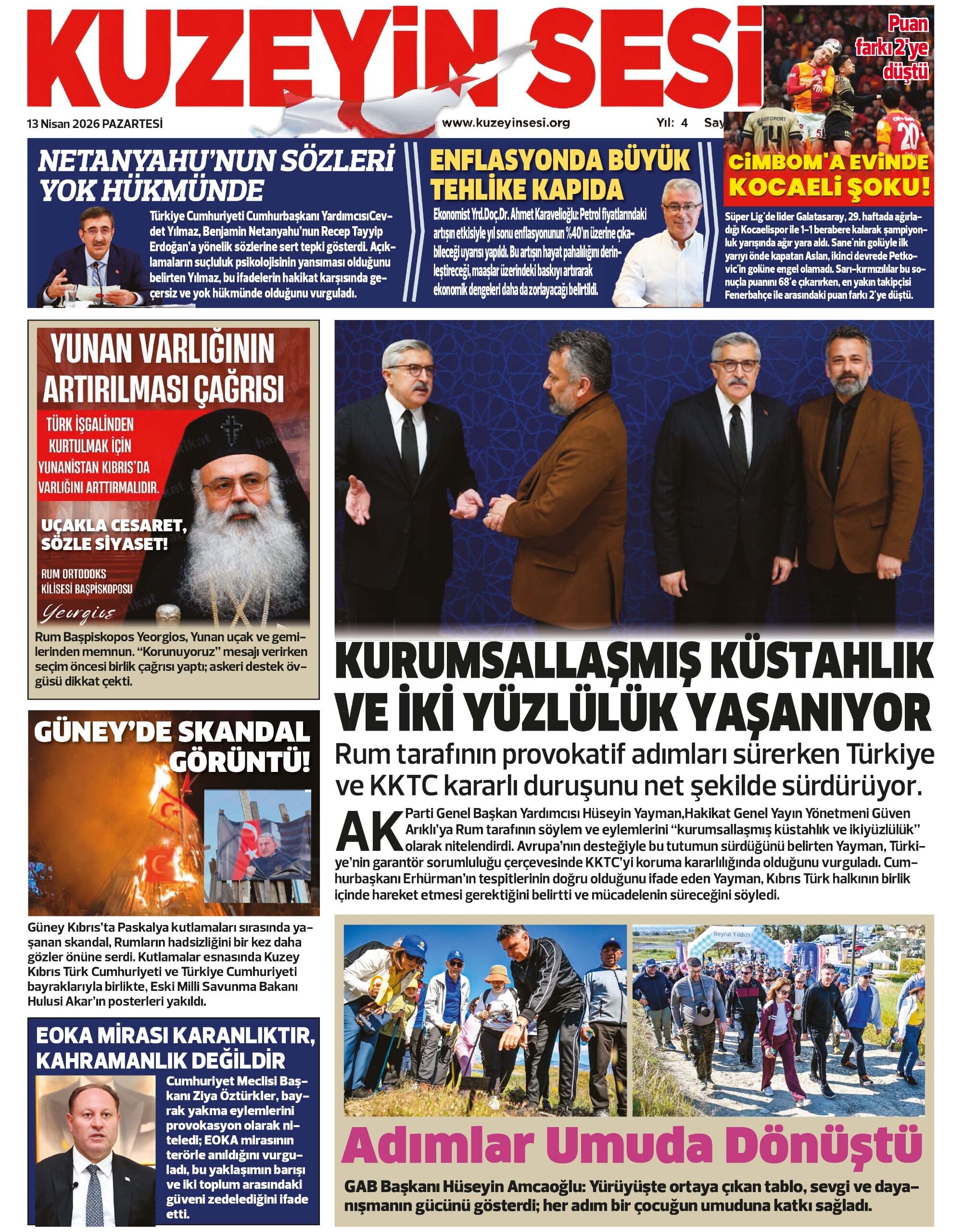 KıbrısKKTC GazeteleriTürkiyeGAZETE MANŞETLERİ (13 NİSAN 2026)Nisan 13, 2026 8:05 am PaylaşEtiketlendi:Kibris dakik KKTC gazeteleri manşetleri İlgili haberler IRAK MECLİSİ’NDE CUMHURBAŞKANI SEÇİMİ İKİNCİ TURA KALDI Nisan 11, 2026 MEDYA ETİK KURULU’NDAN YAYINLARA KINAMA Nisan 11, 2026 DAÜ GİRİŞ VE BURS SINAVI TARİHLERİ AÇIKLANDI Nisan 11, 2026 Cevap bırakın Yanıtı iptal etE-posta adresiniz yayınlanmayacak. Gerekli alanlar * ile işaretlenmişlerdirYorumAd * E-posta * İnternet sitesi Daha sonraki yorumlarımda kullanılması için adım, e-posta adresim ve site adresim bu tarayıcıya kaydedilsin.